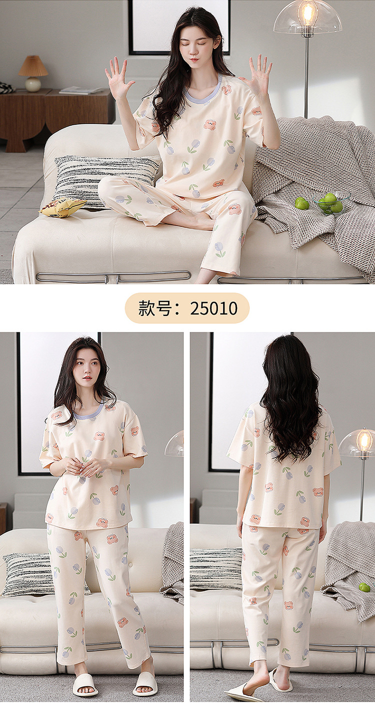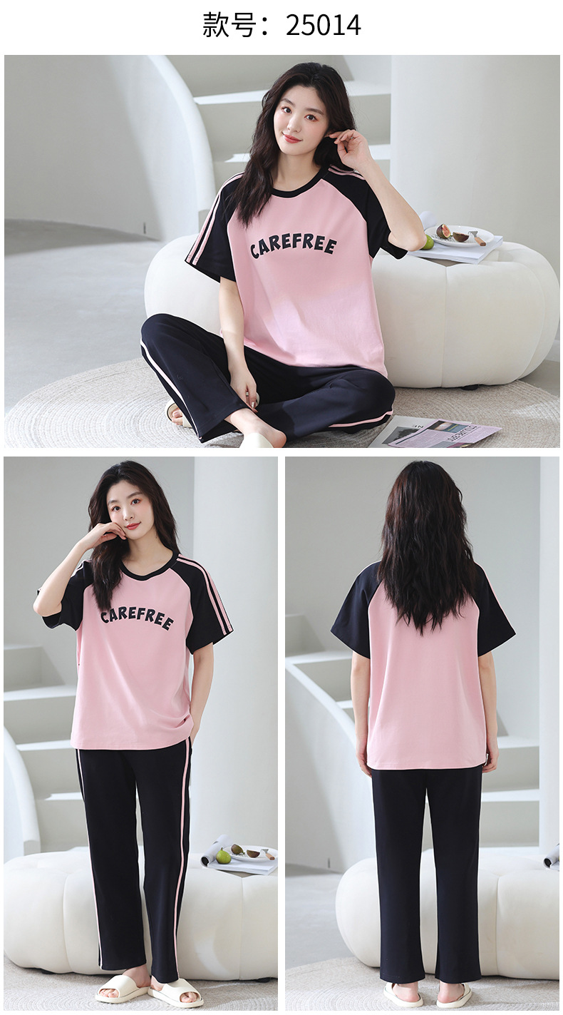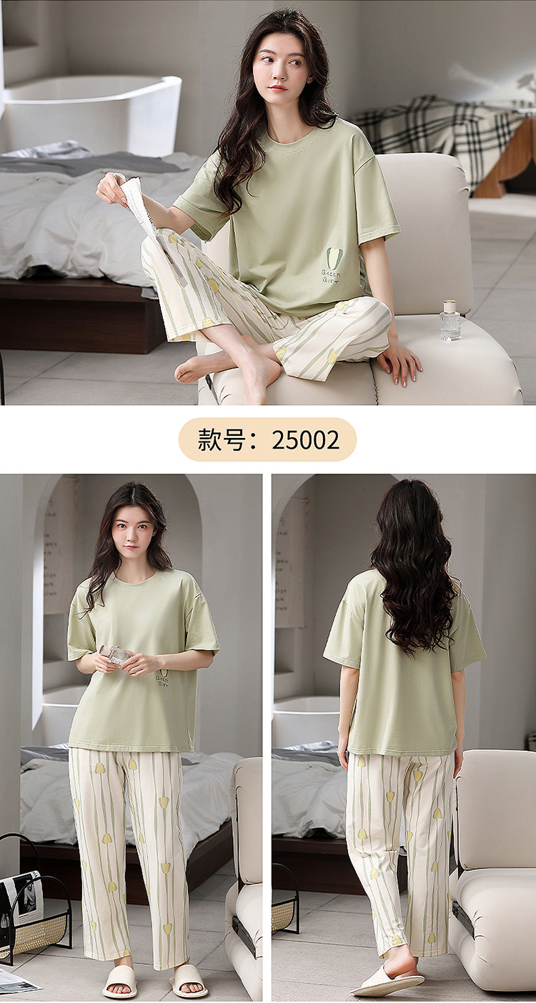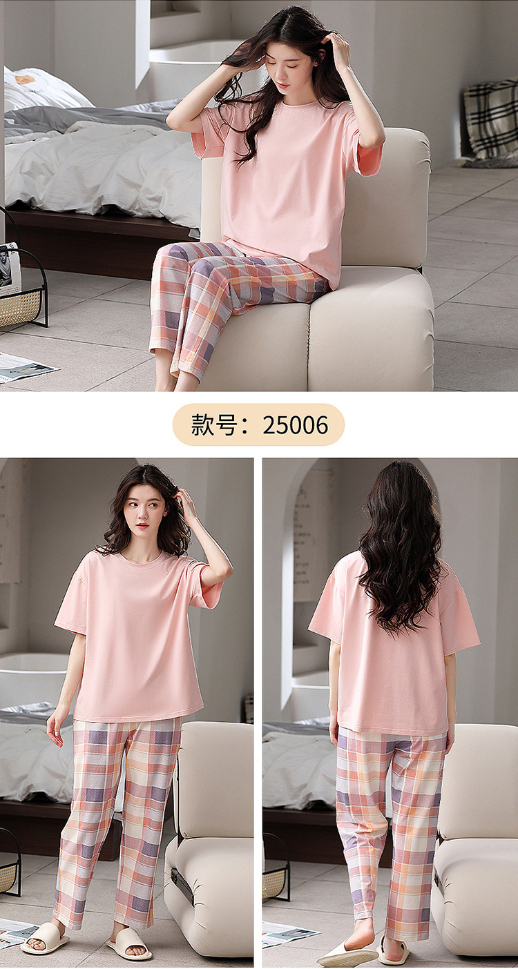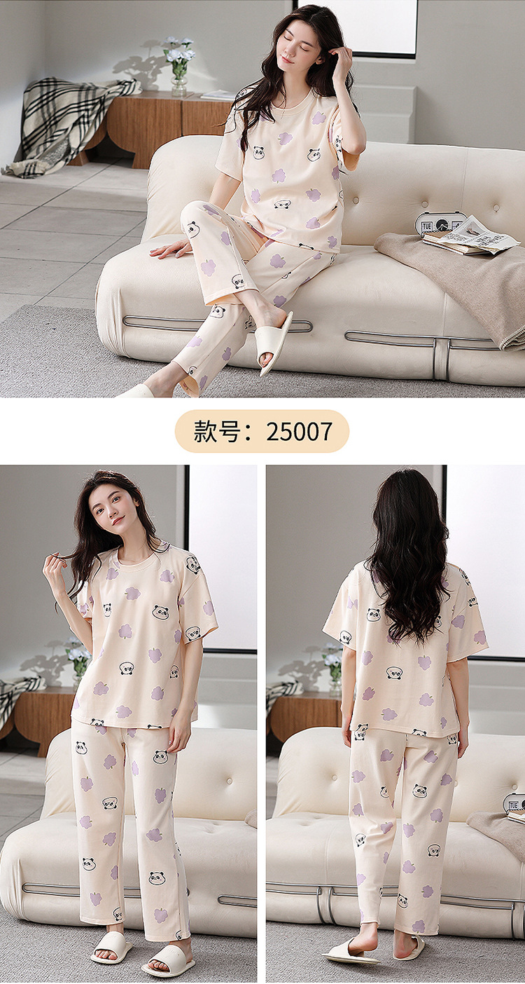 【带胸垫】全棉短袖长裤睡衣 夏季可外穿休闲女士家居服套装