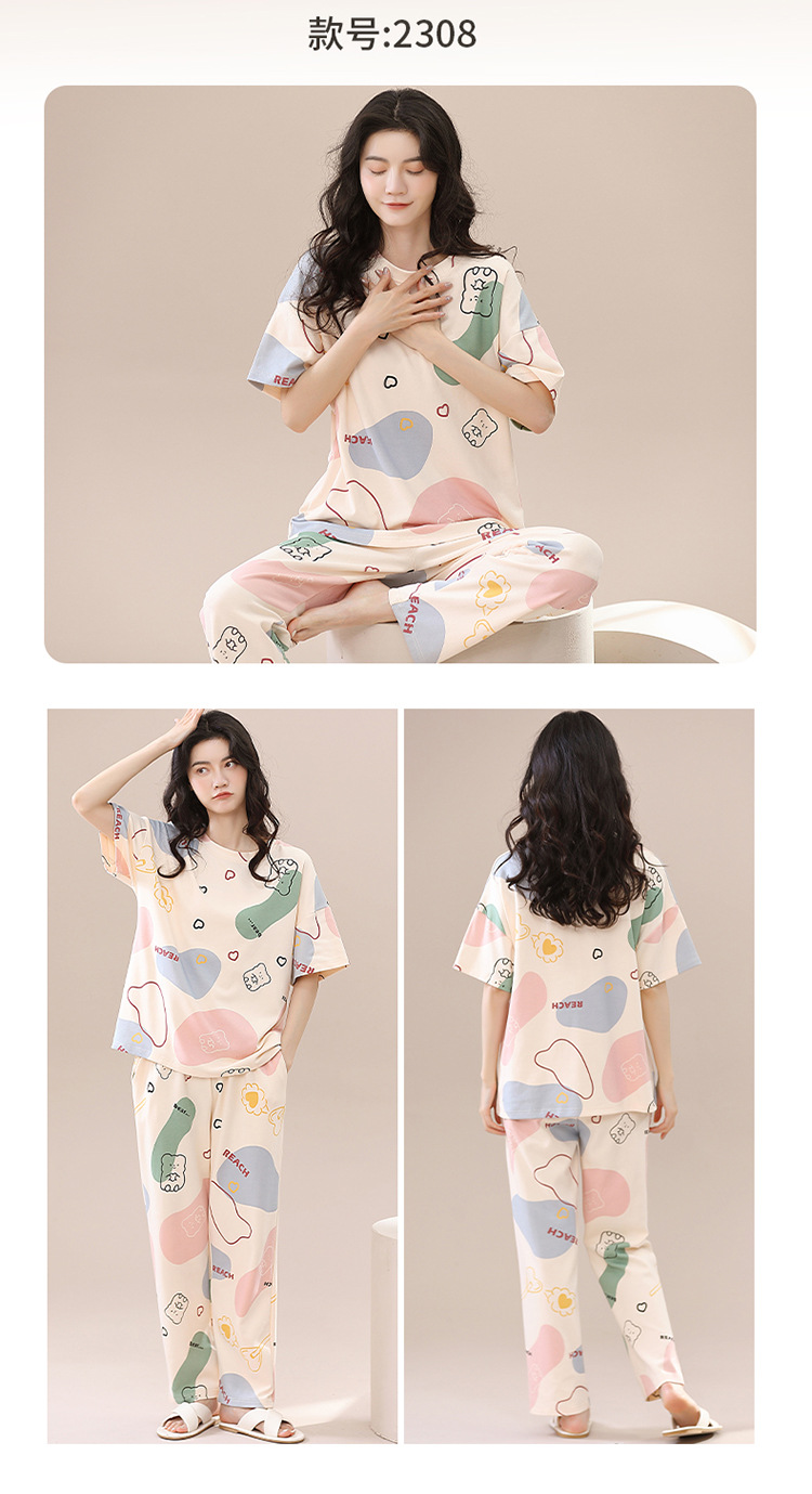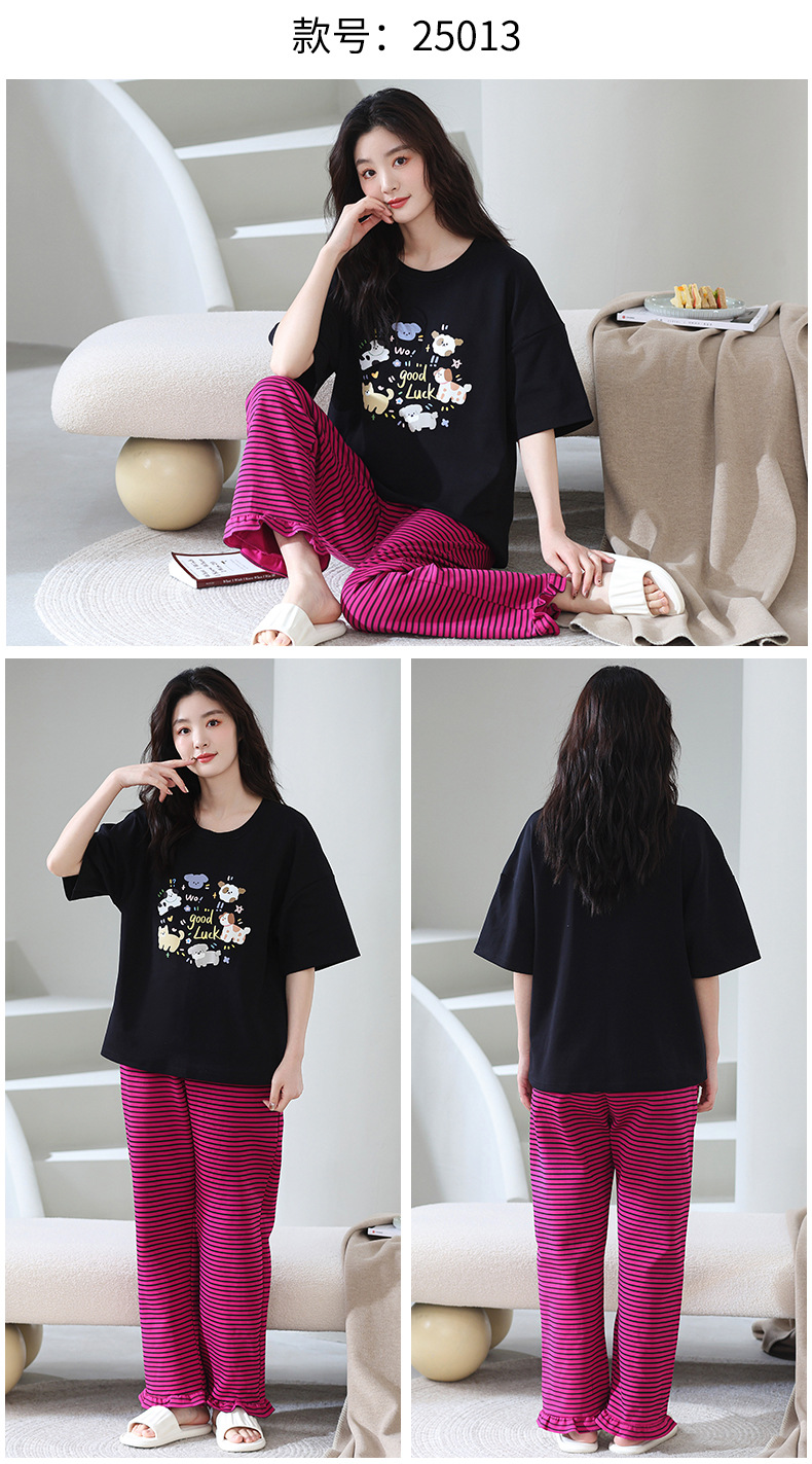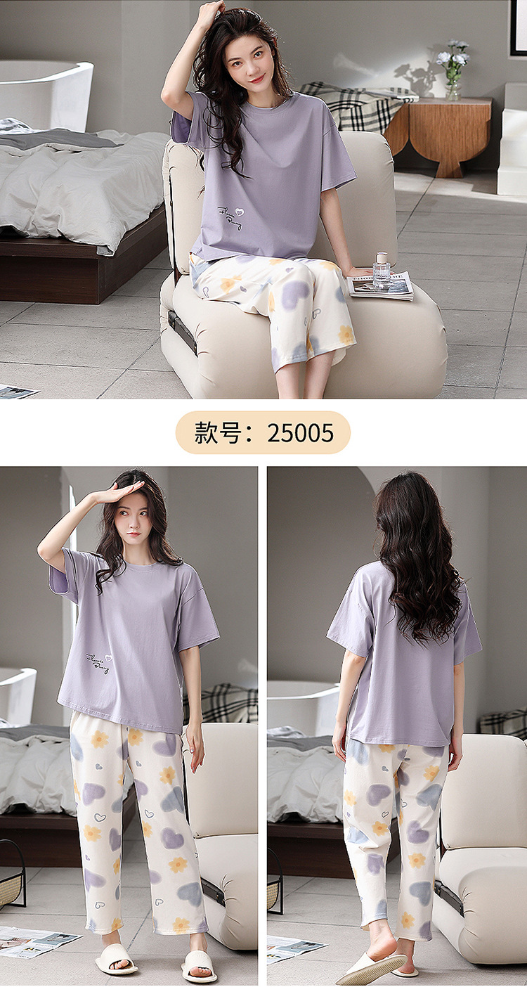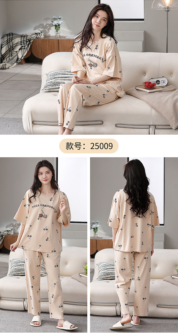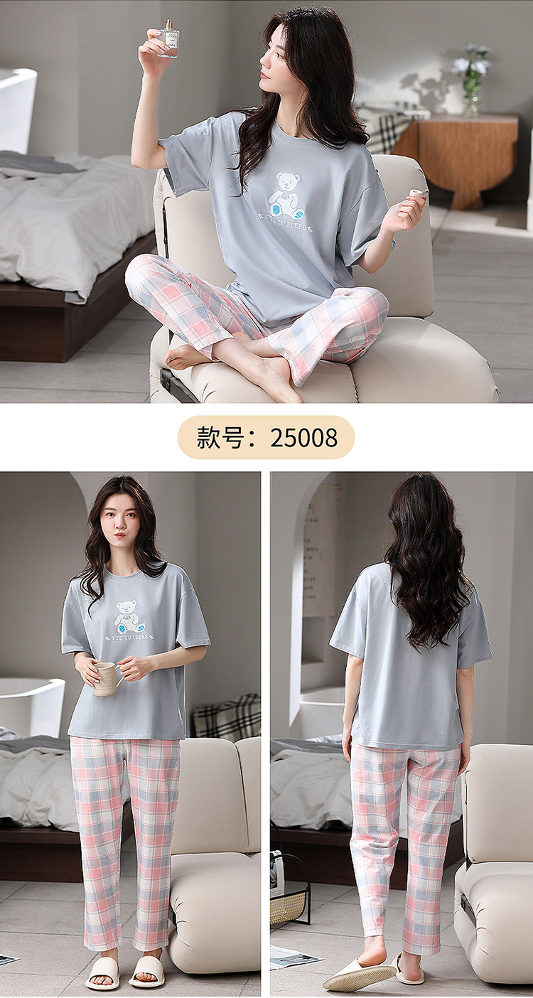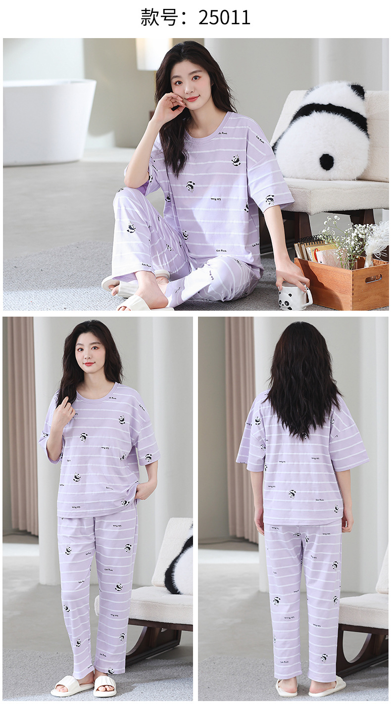 【带胸垫】全棉短袖长裤睡衣 夏季可外穿休闲女士家居服套装