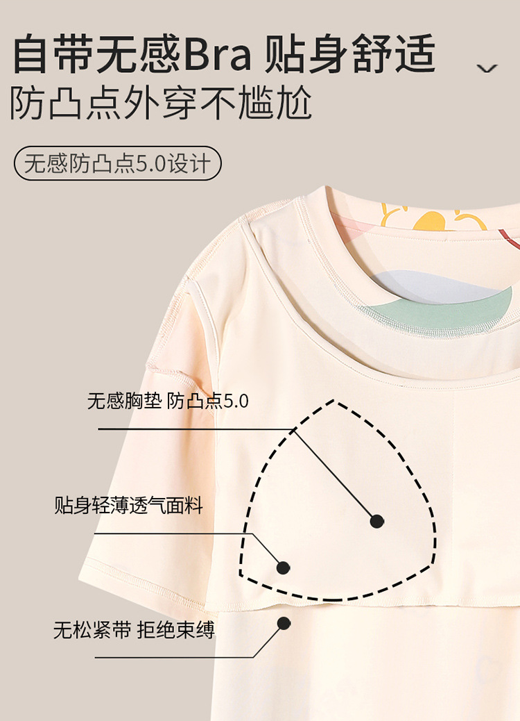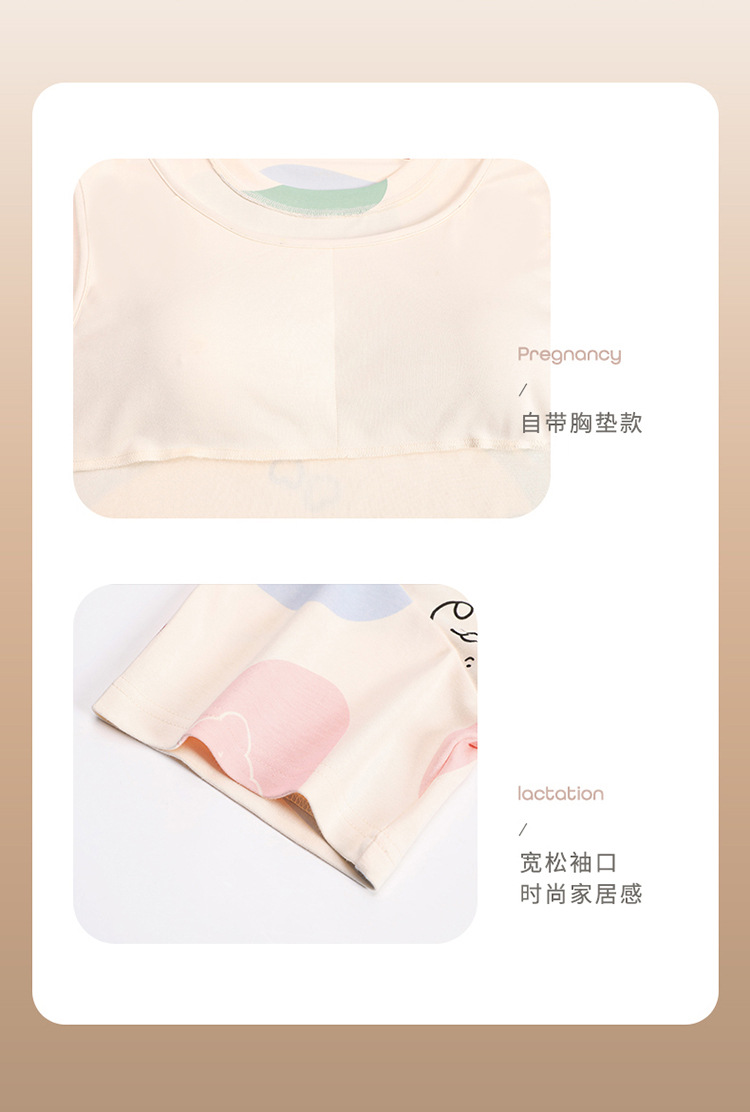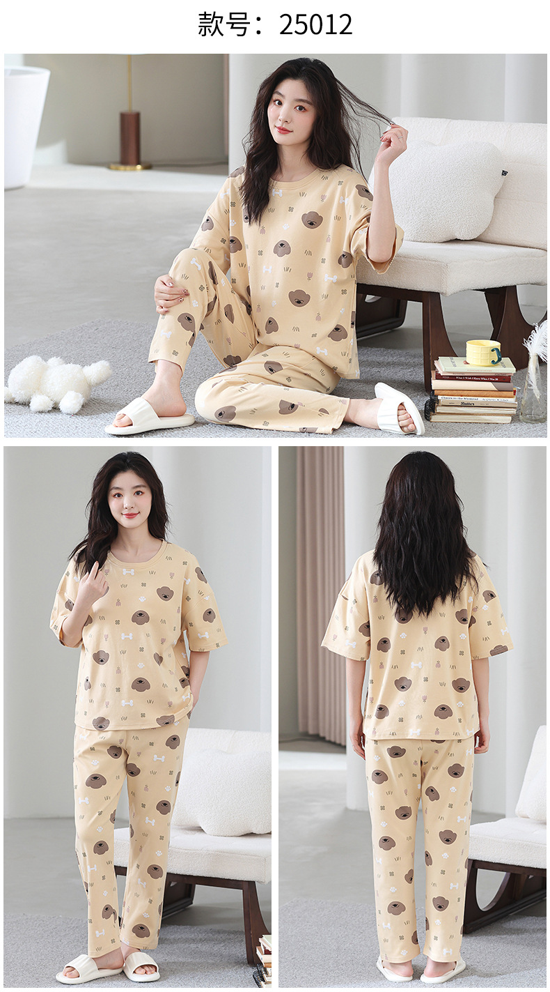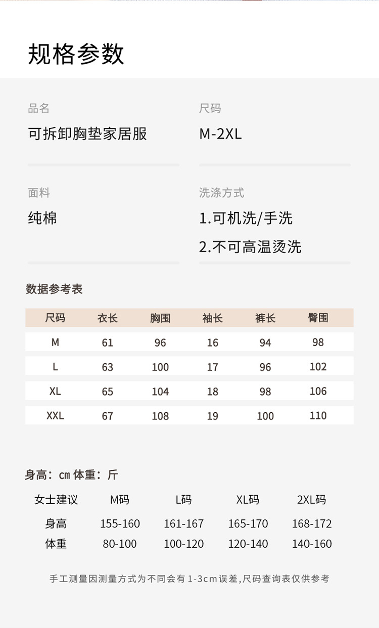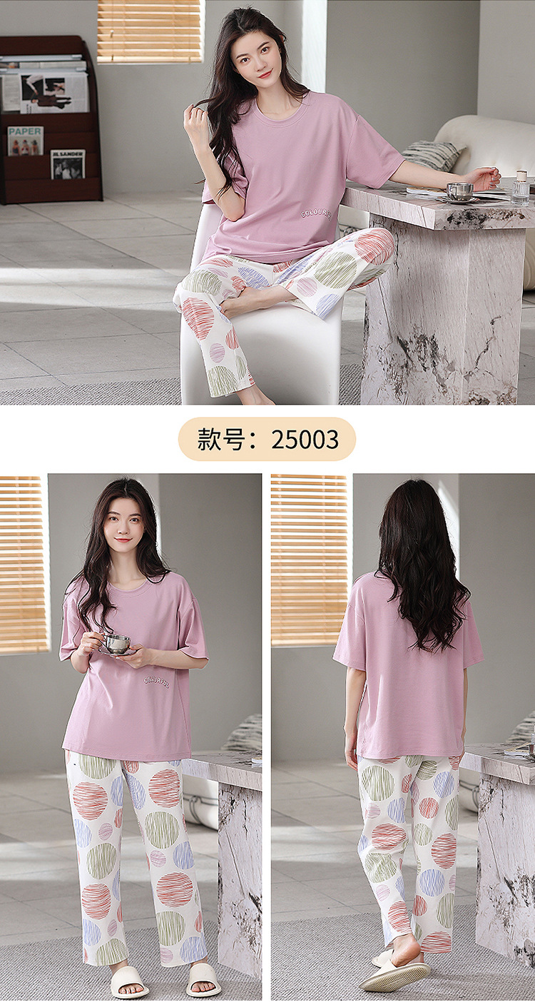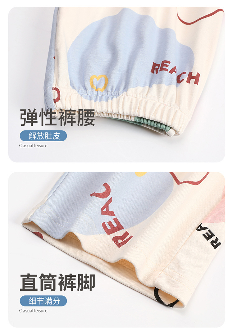 【带胸垫】全棉短袖长裤睡衣 夏季可外穿休闲女士家居服套装