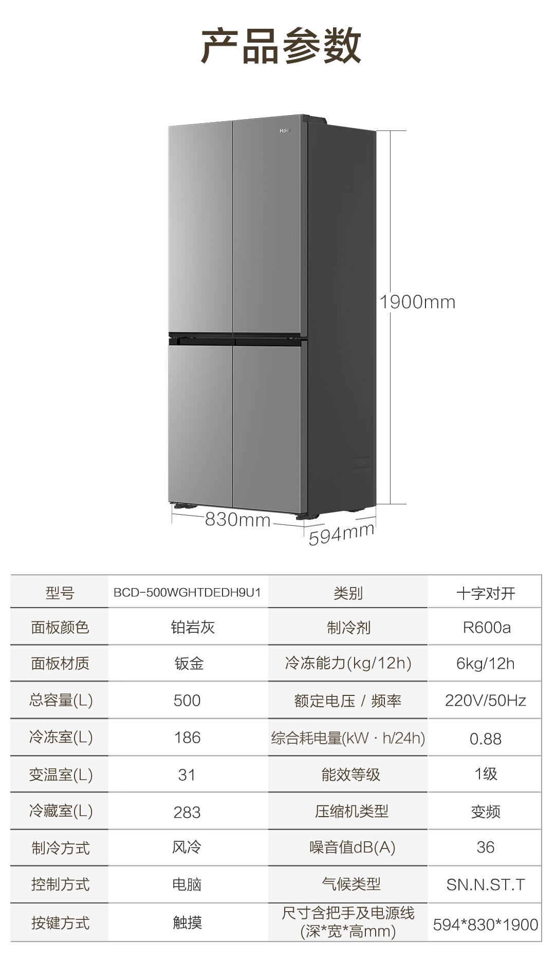 海尔(Haier)冰箱 BCD-500WGHTDEDH9U1