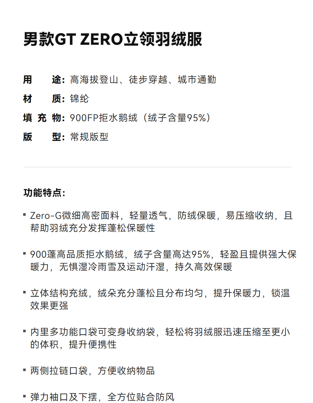 KAILAS凯乐石 户外运动 男款GT ZERO立领羽绒服 KG2443145