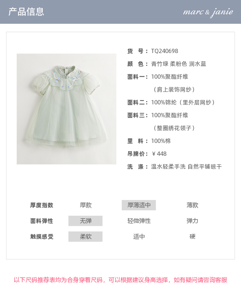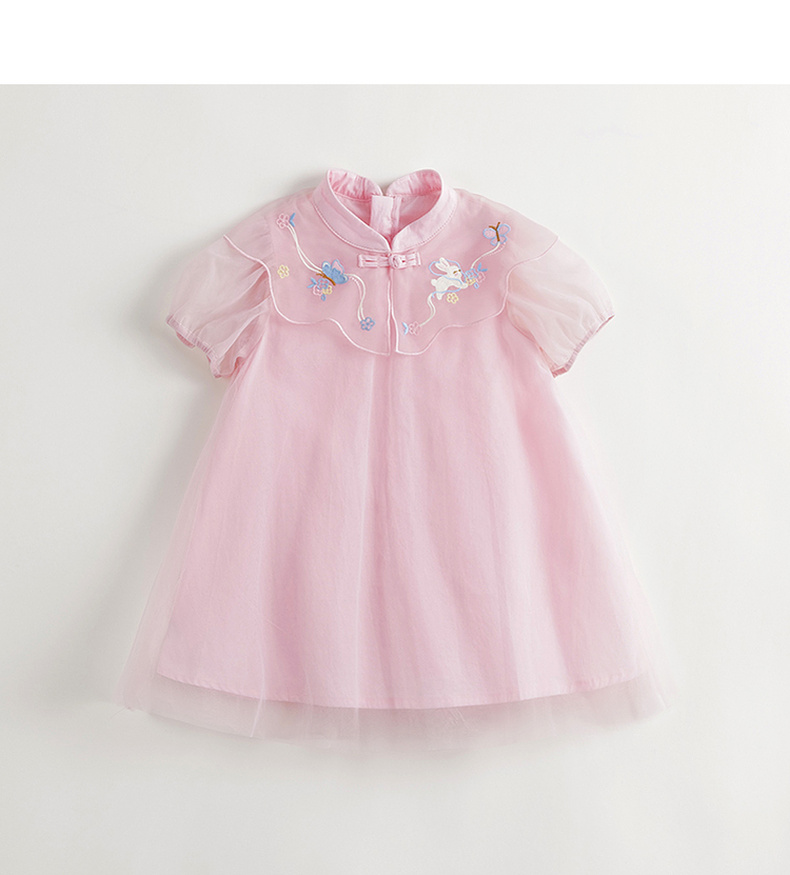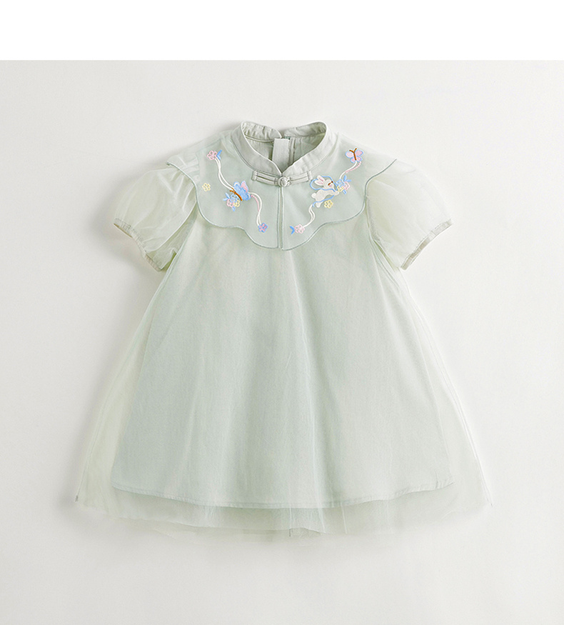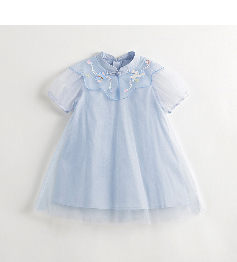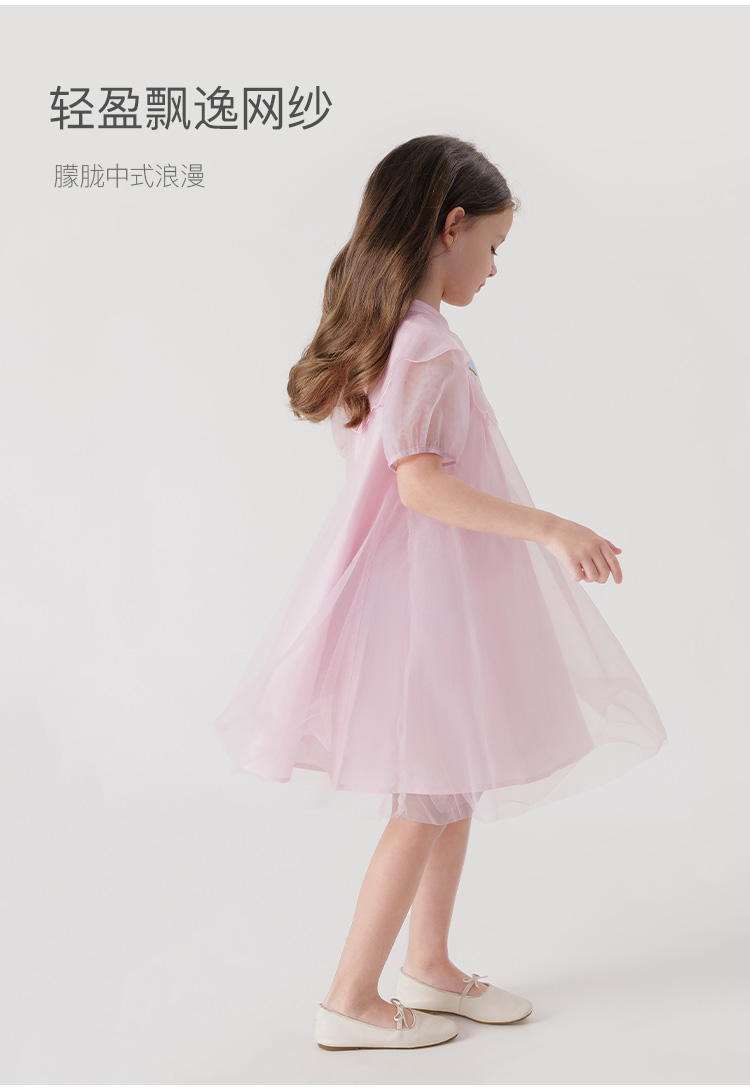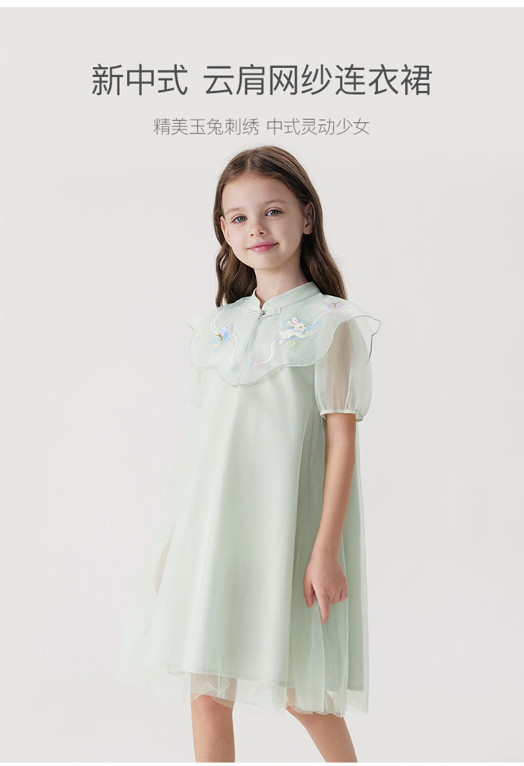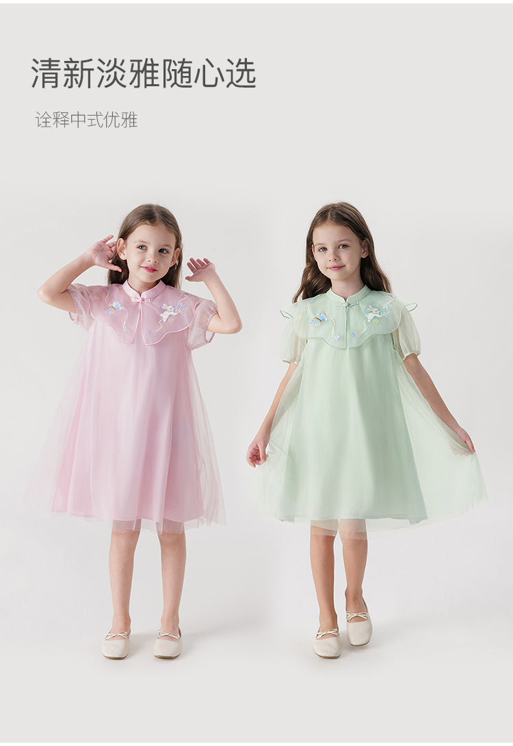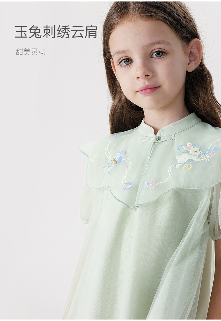 马克珍妮女童新中式刺绣云肩网纱连衣裙儿童裙子夏装新款240698