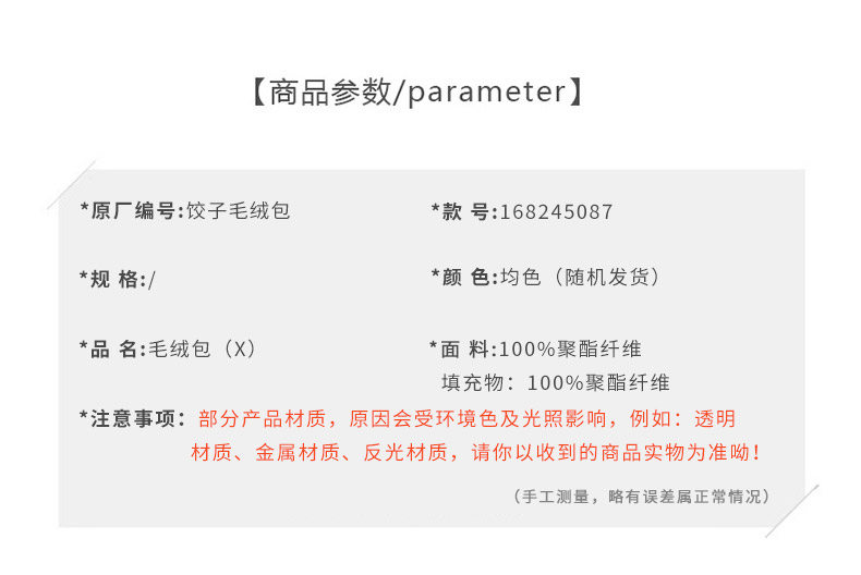 可爱毛绒大容量斜跨包饺子毛绒包-纪念日百货门店同款168245087