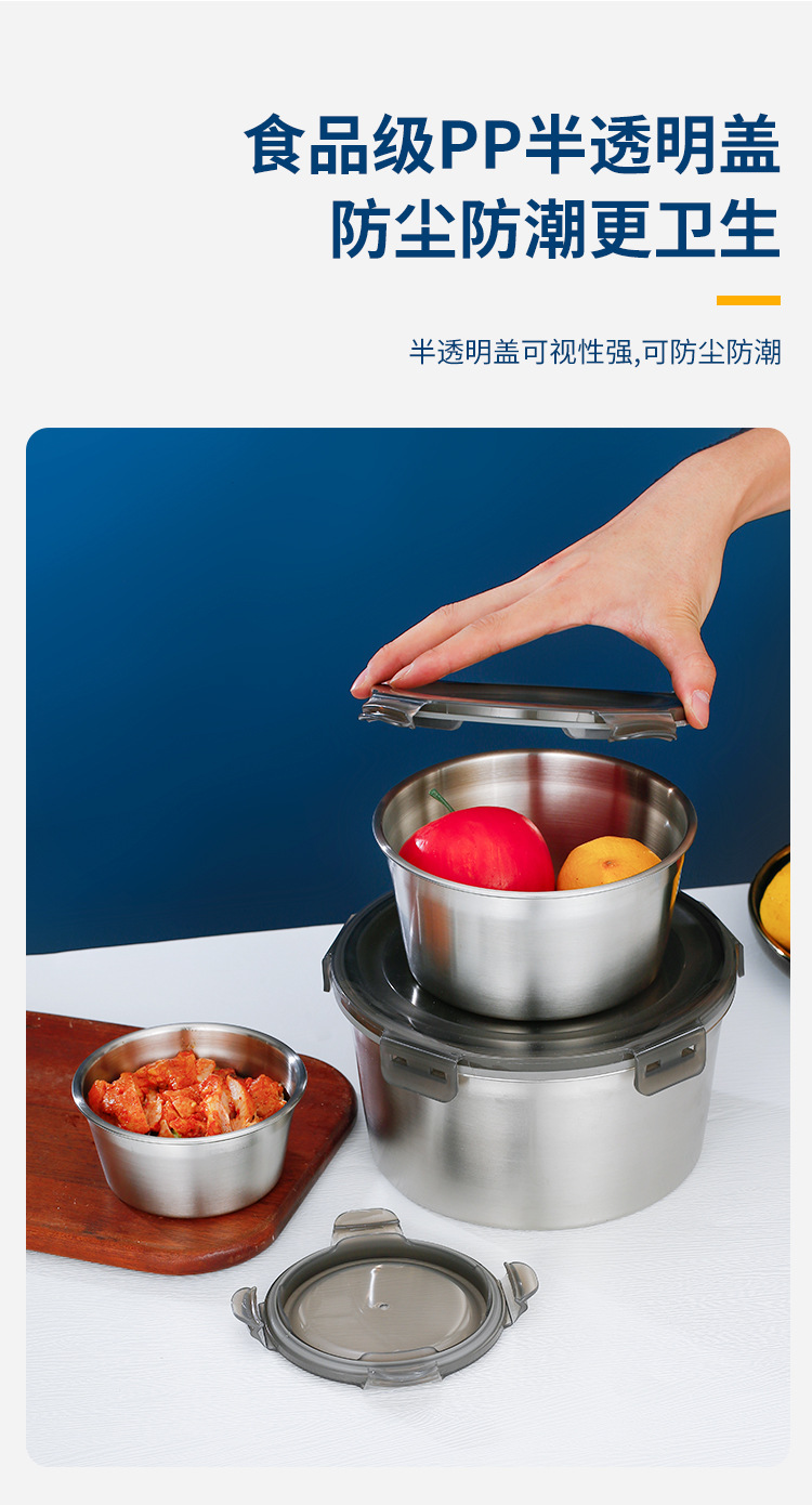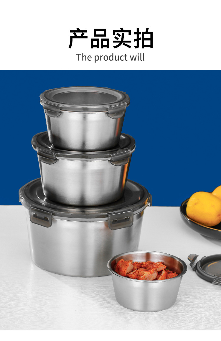 密封盒食品级不锈钢保鲜盒密封圆形保鲜碗带盖大容量316纳便当