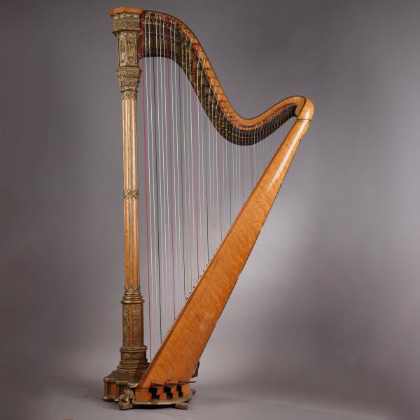 独角鹿西洋古董1889年法国Erard工坊签名出品枫木竖琴