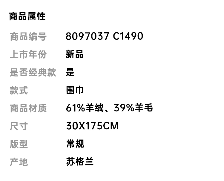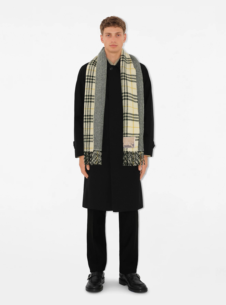 BURBERRY 巴宝莉 男女通用马术骑士设计标签双面格纹羊绒羊毛围巾 格子色 8097037 C1490
