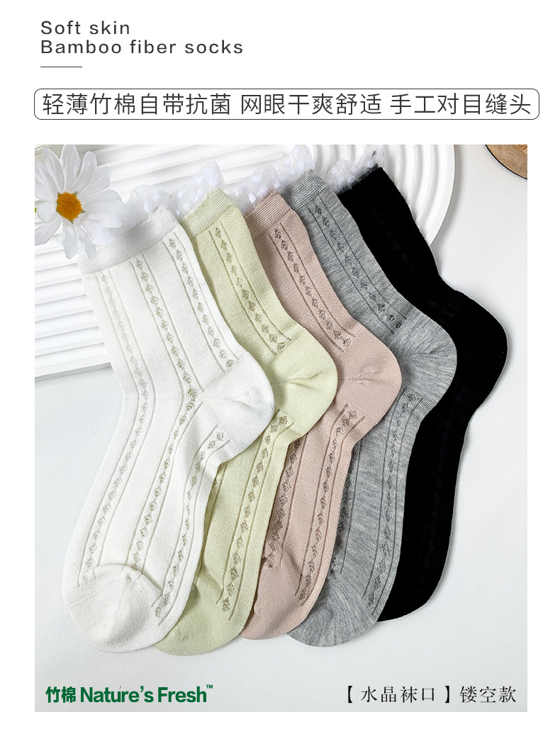 足装秀24新品春夏女士中筒竹棉抗菌轻薄糖果色公主袜中邦女袜子