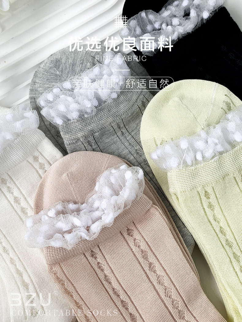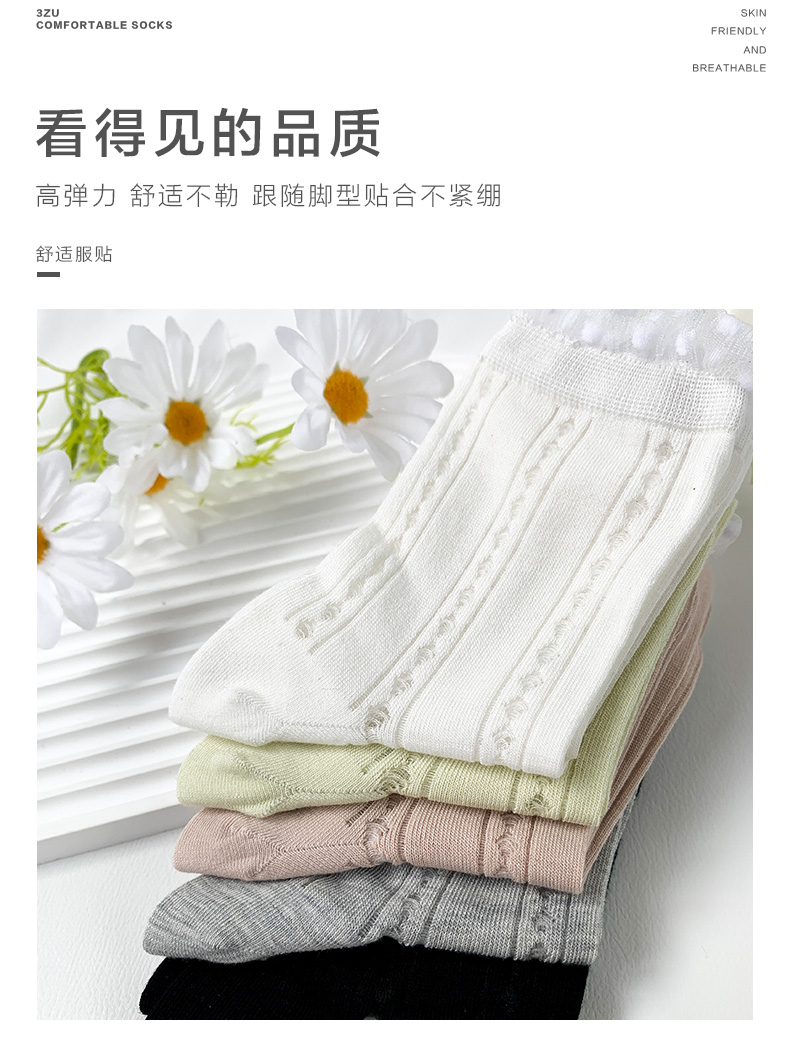 足装秀24夏季新女士短款超薄棉轻薄透气凉感网眼镂空纯色中邦女袜