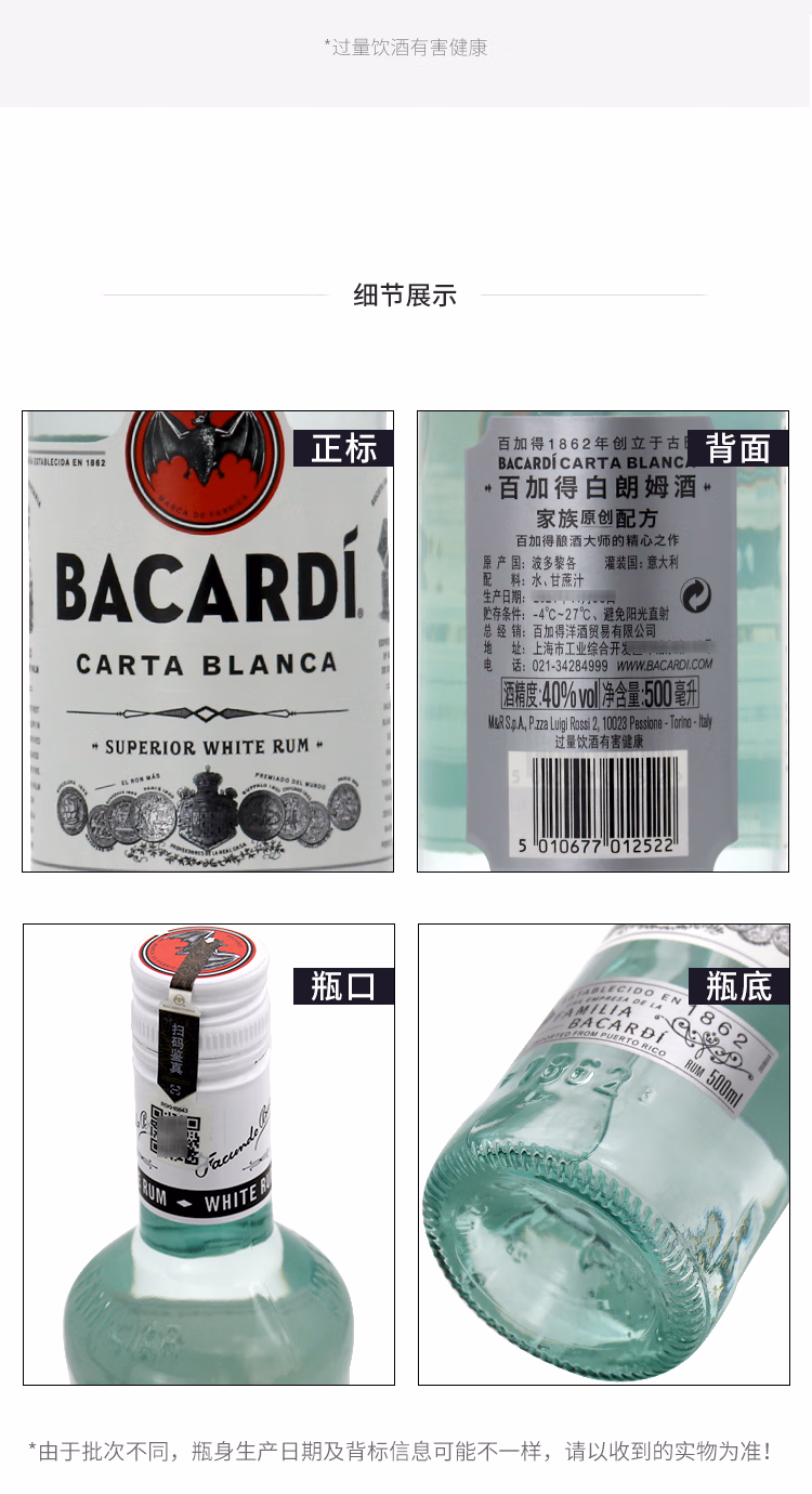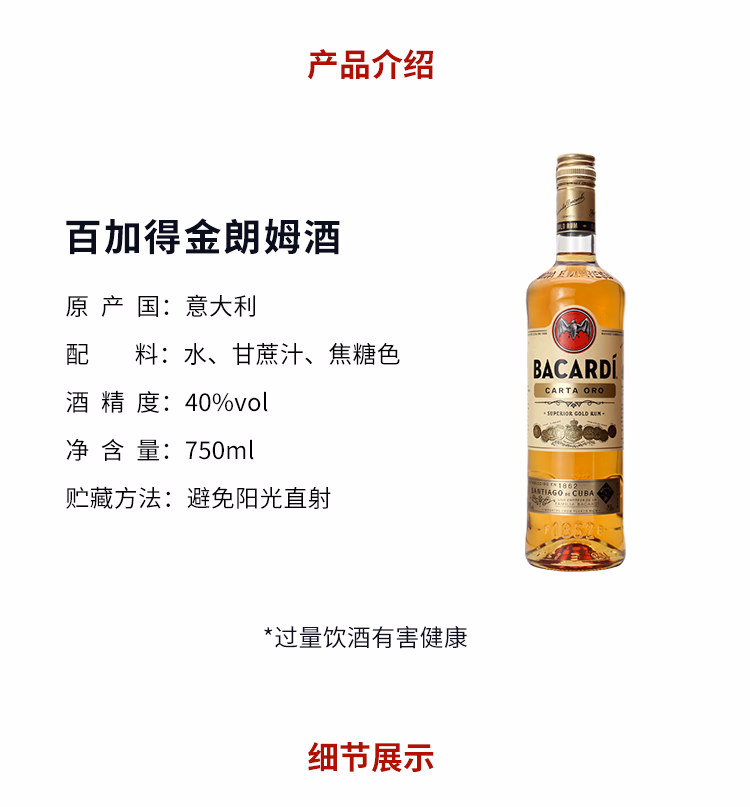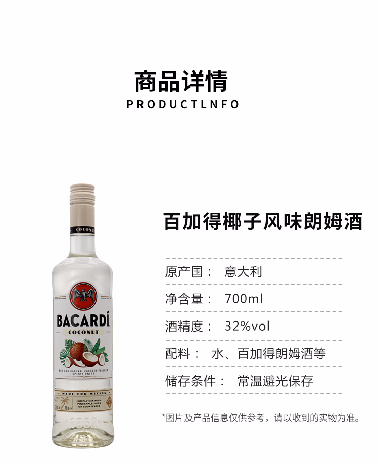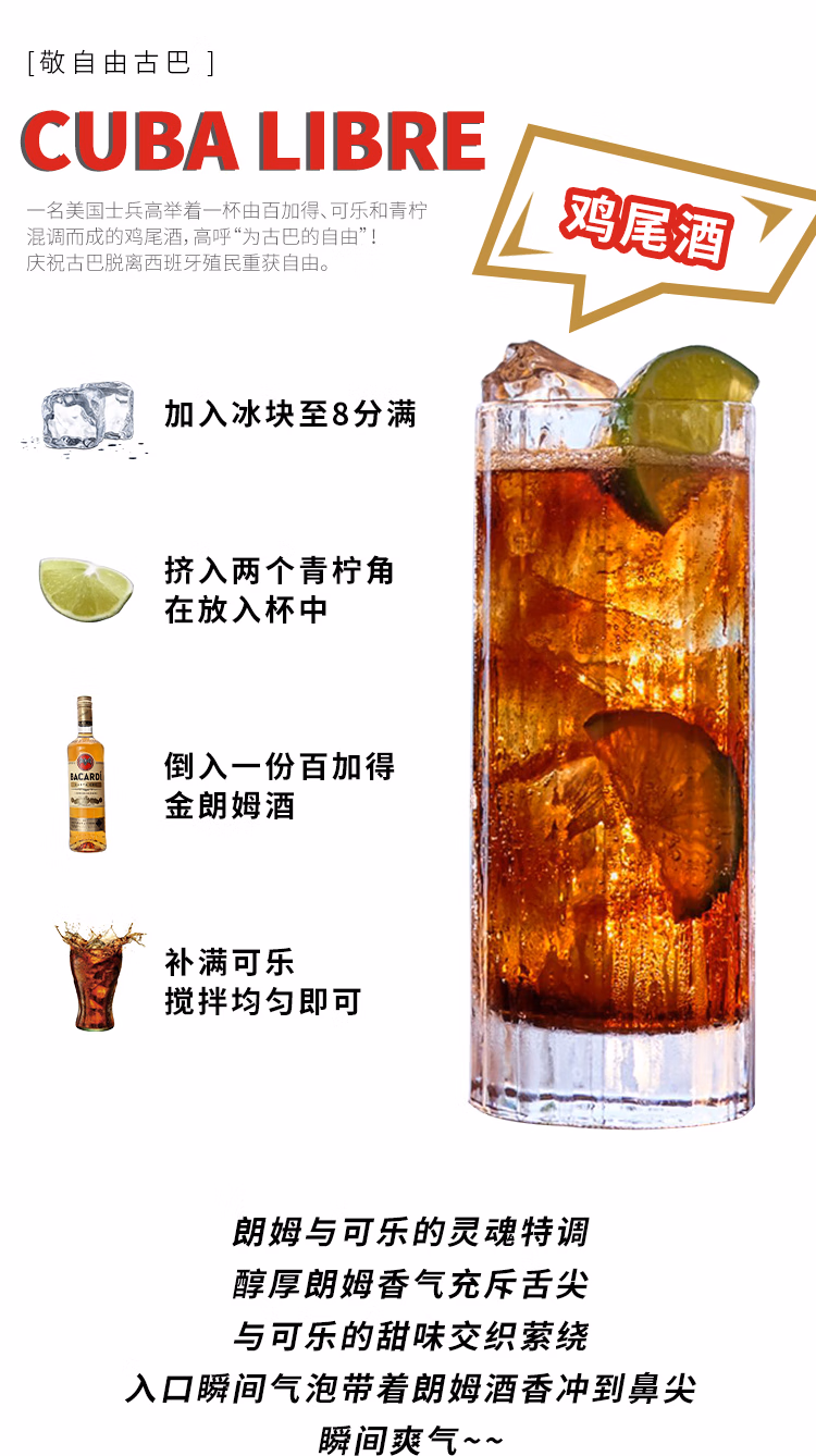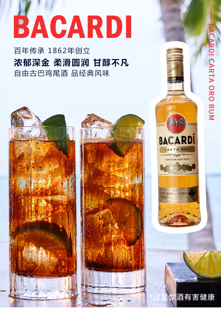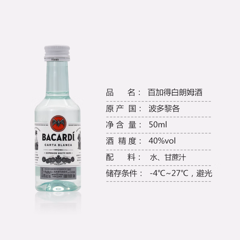 百加得白朗姆酒 基酒调酒750ml*1瓶