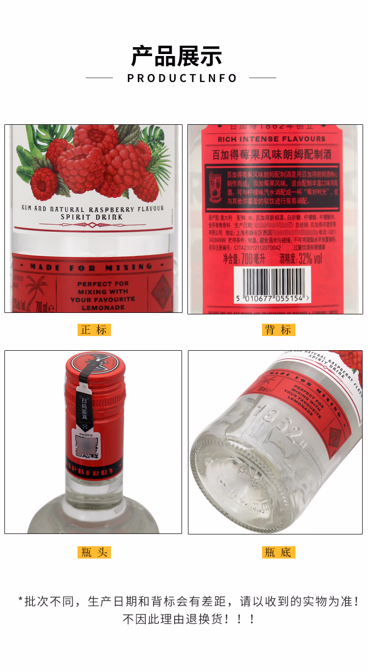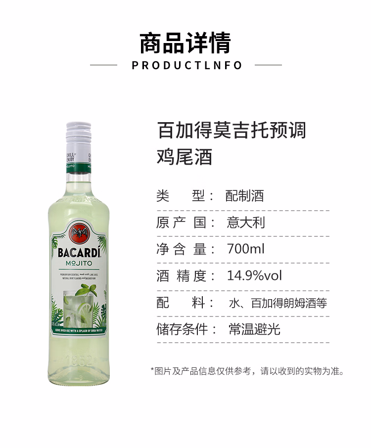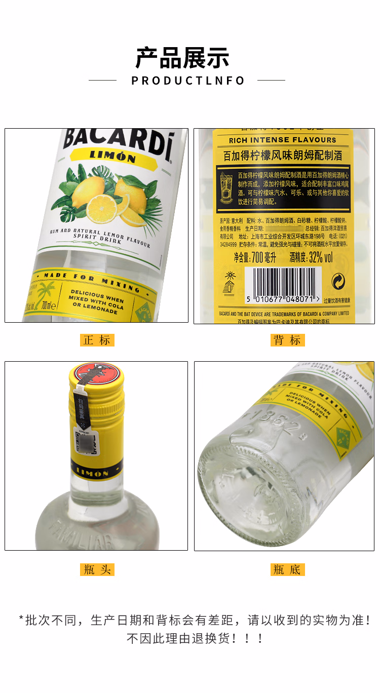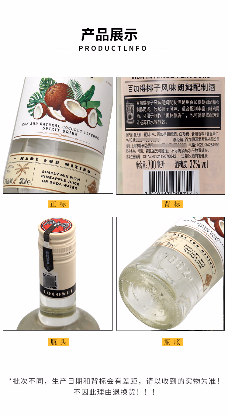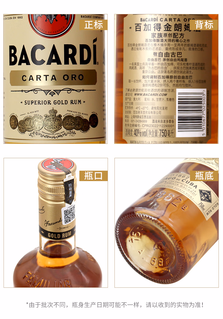 百加得白朗姆酒 基酒调酒750ml*1瓶