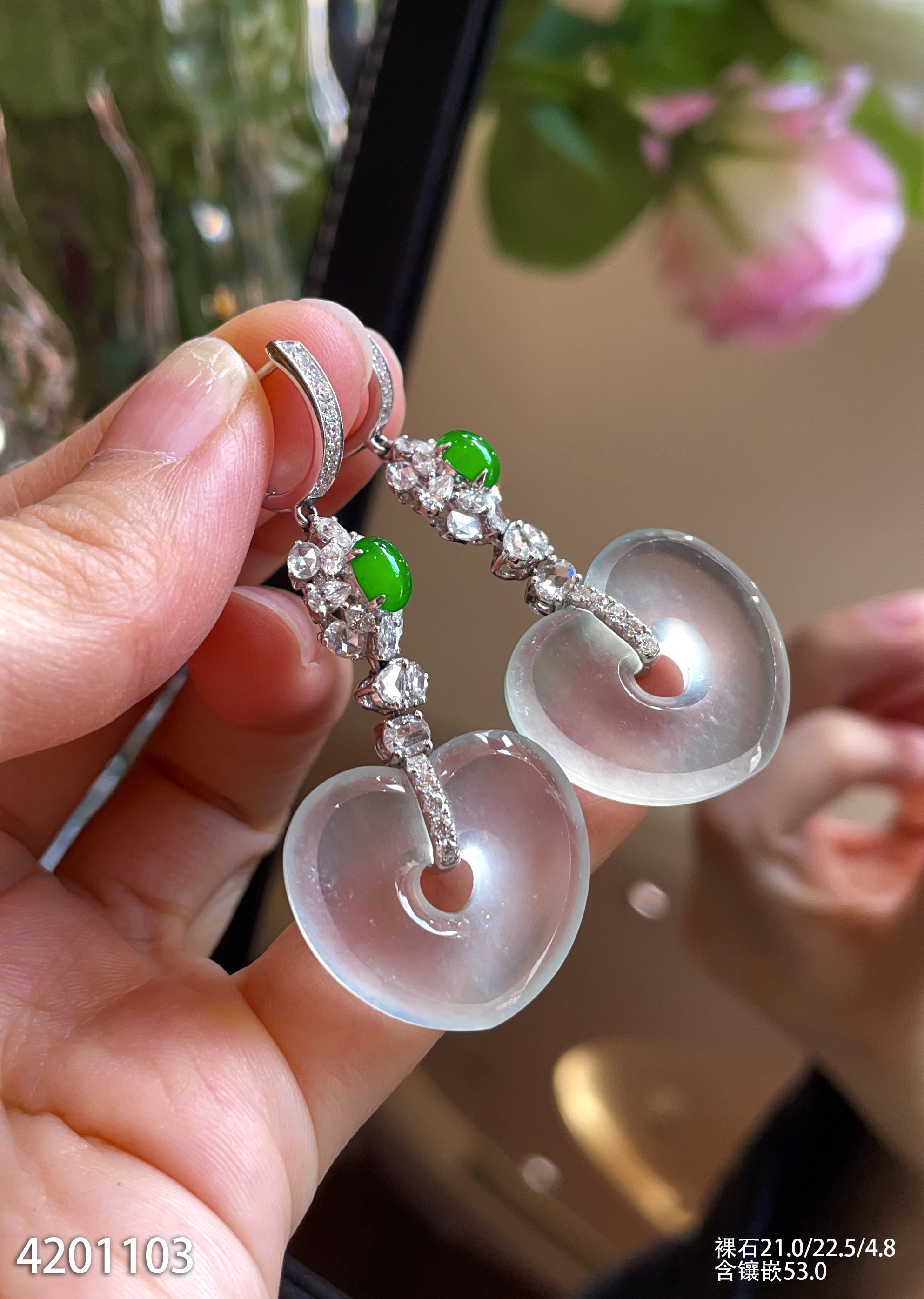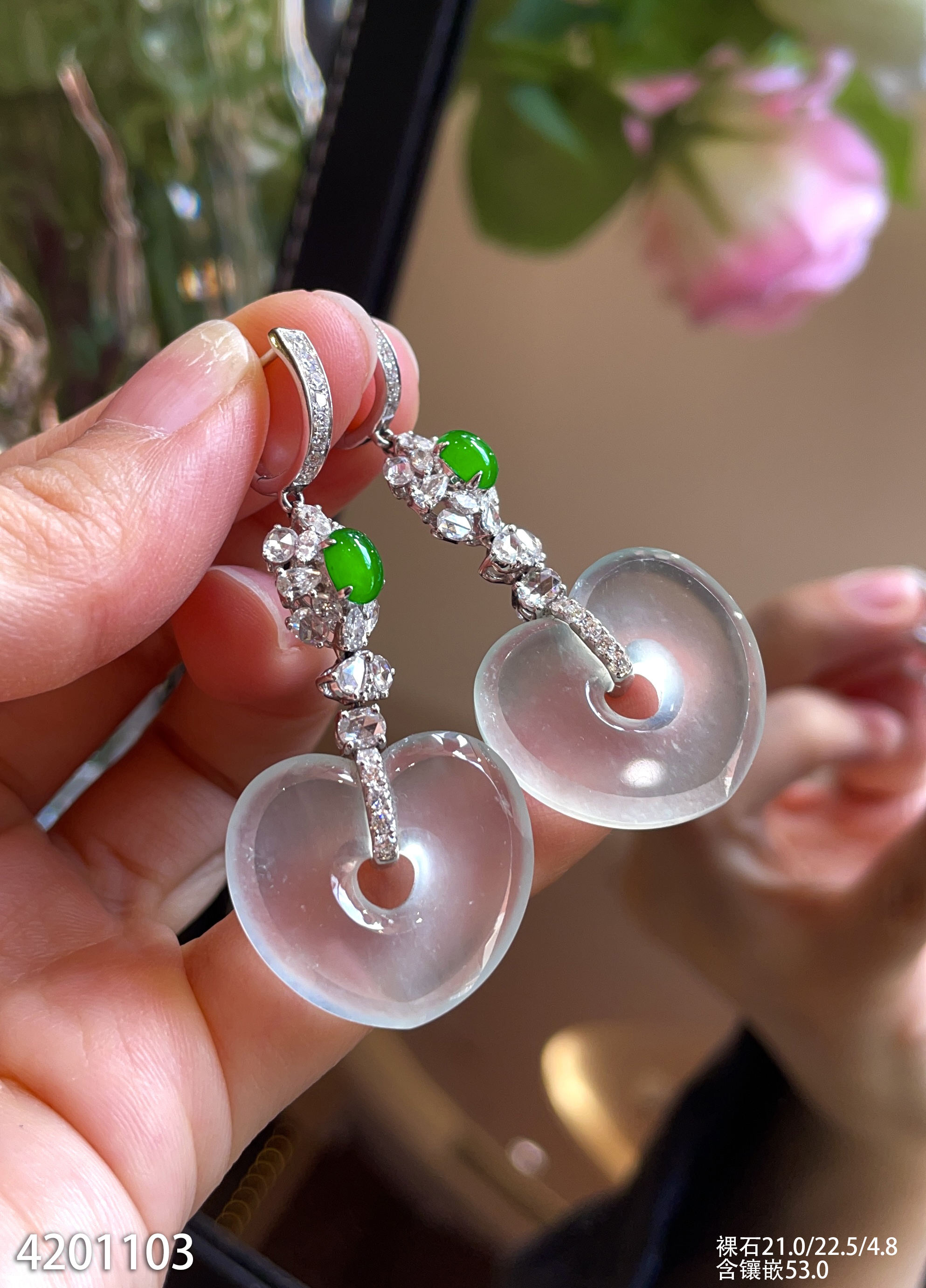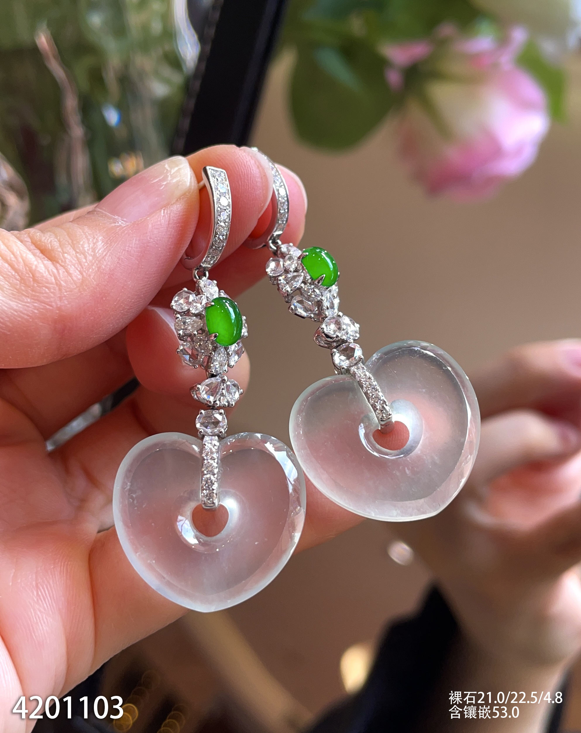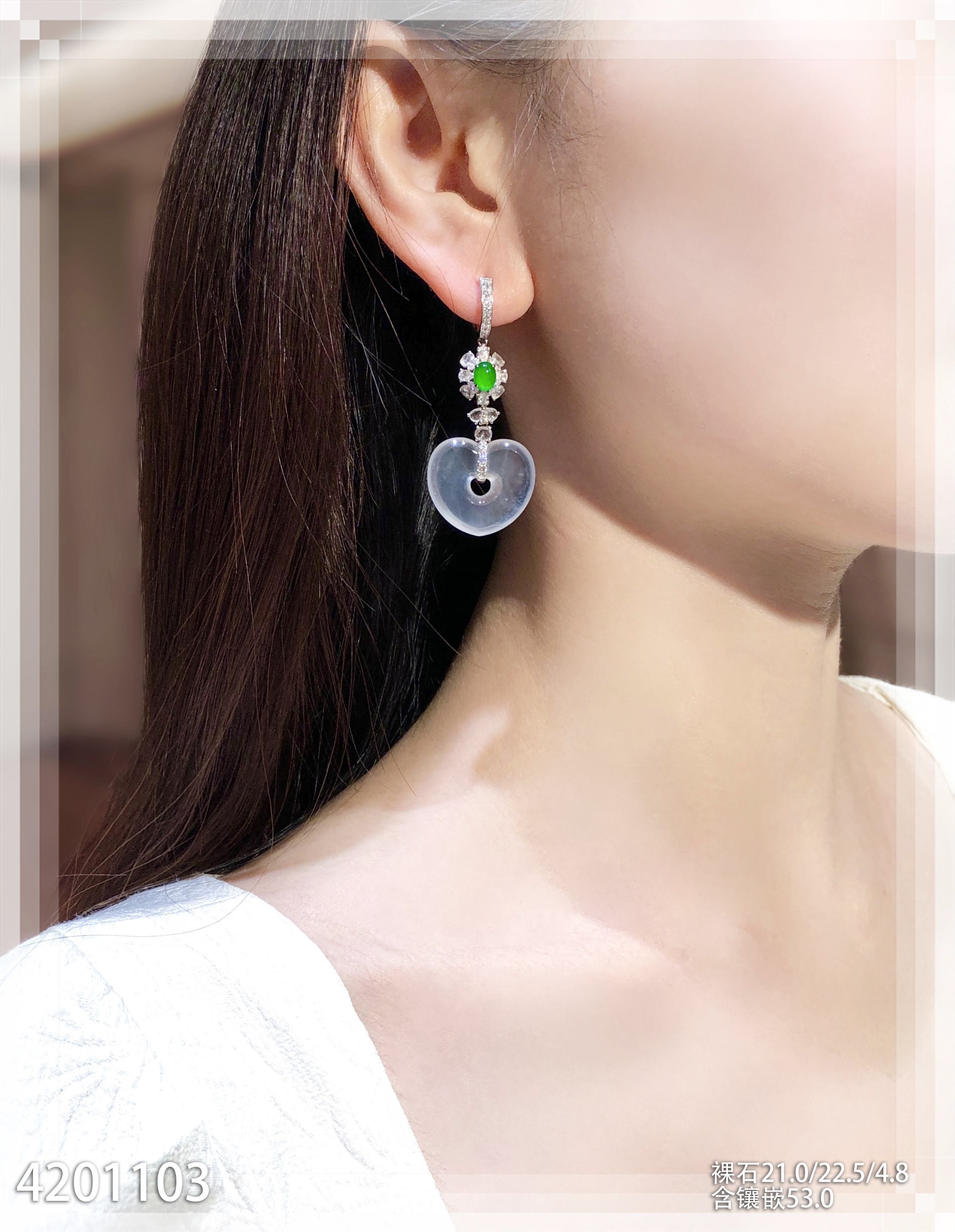 玻璃种爱心耳坠【4201103】具体价格微信咨询