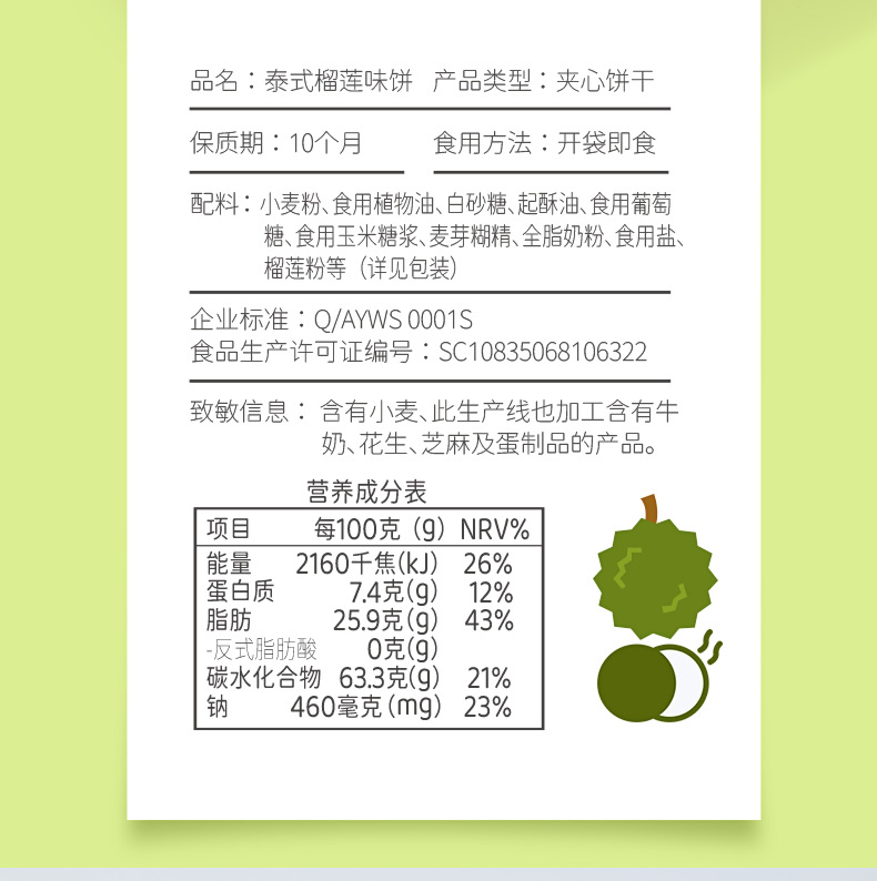 「9.9元包邮!独立包装」星喏梦泰式榴莲味脆饼250g 休闲零食礼盒装