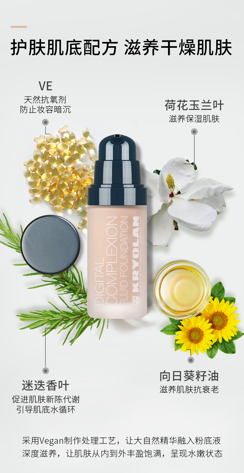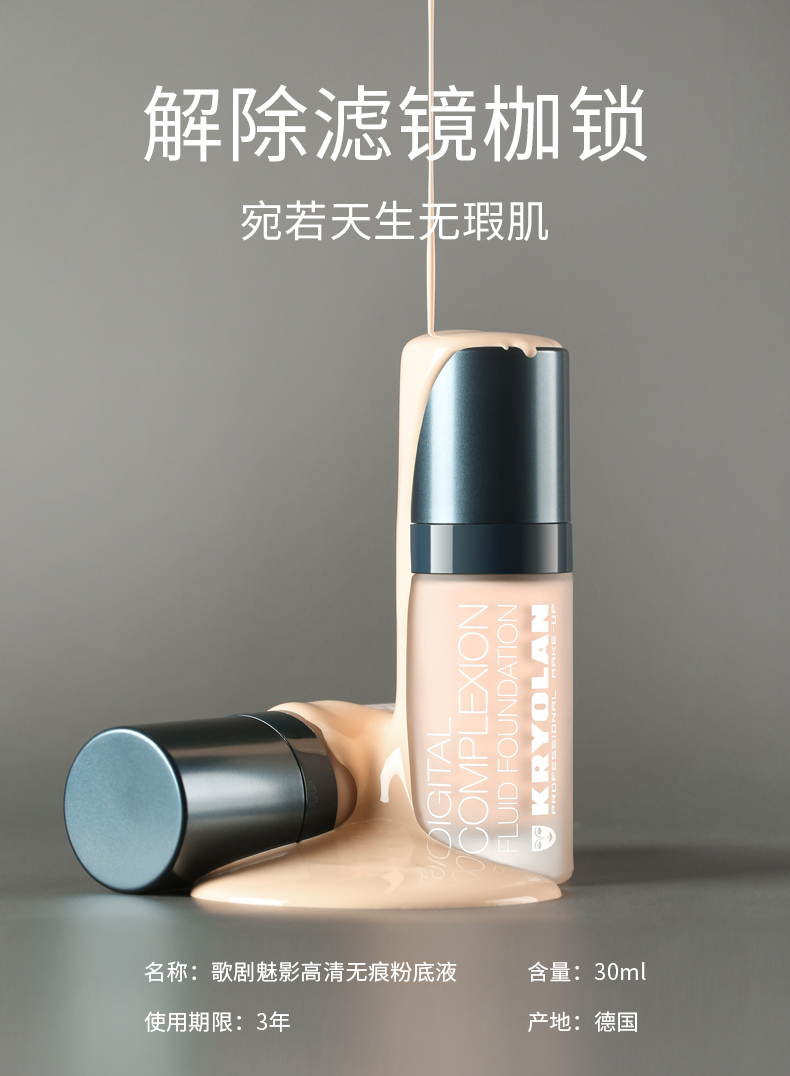 KRYOLAN德国面具魅影高清粉底液 歌剧魅影控油持久遮瑕不脱妆