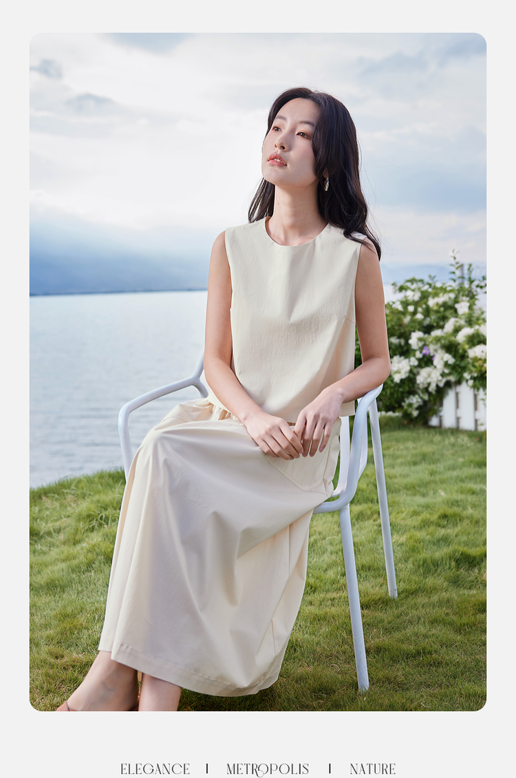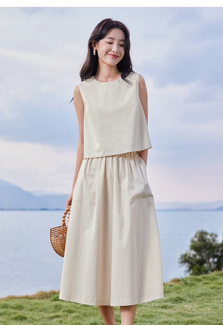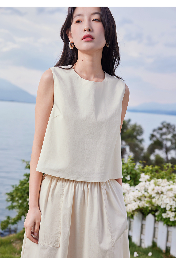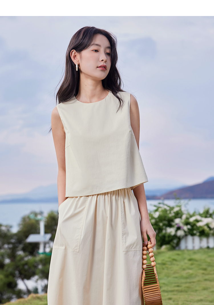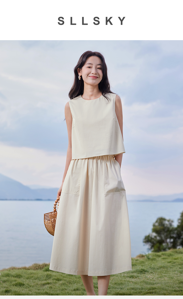 【专属特价】熙世界2025夏新款女装盐系穿搭无袖圆领背心上衣半身裙两件套装