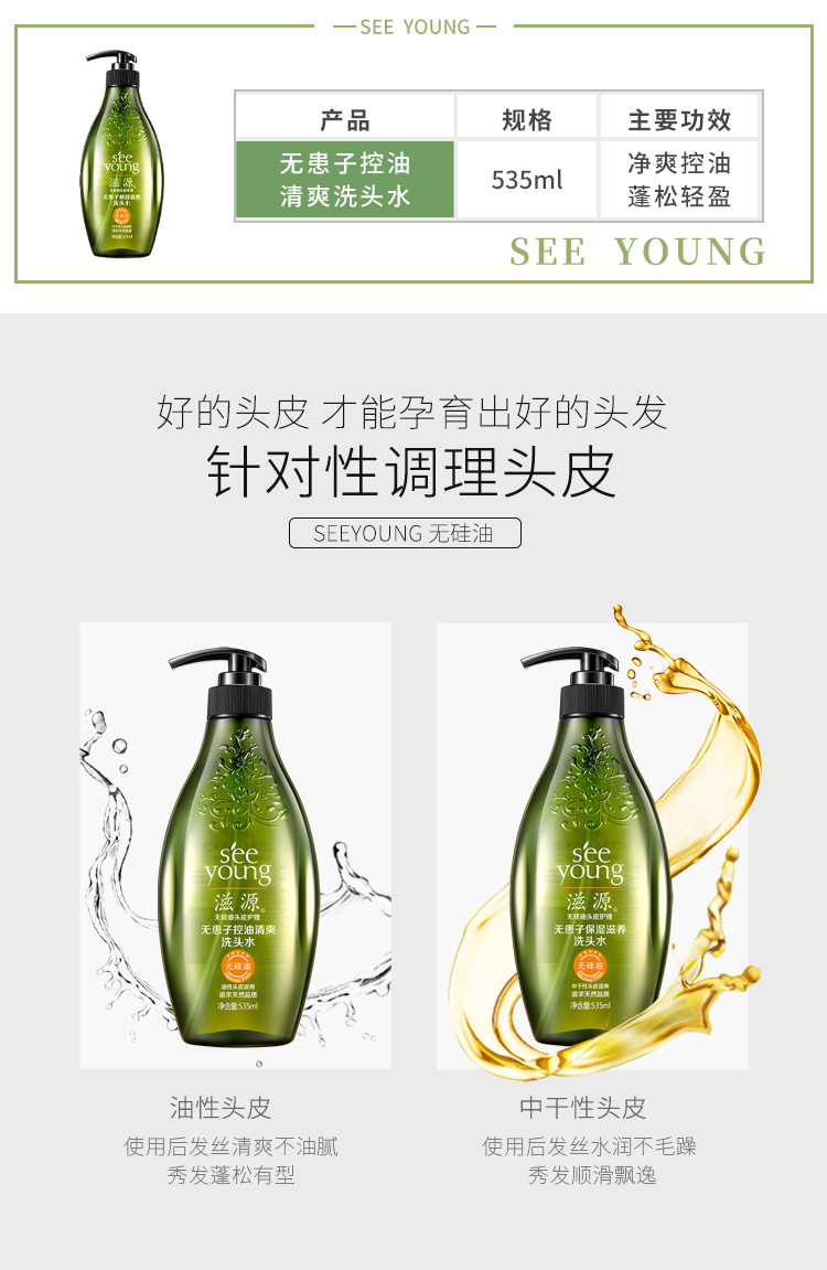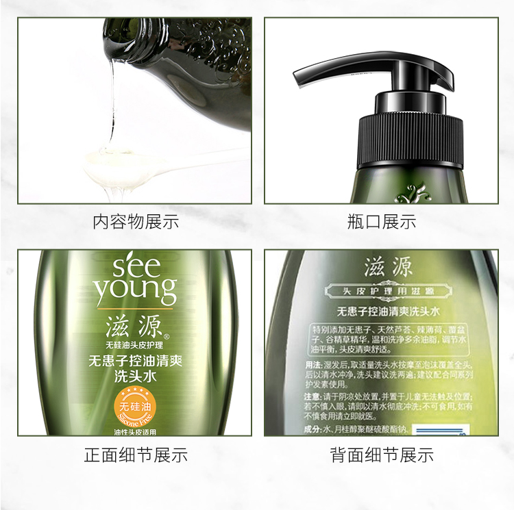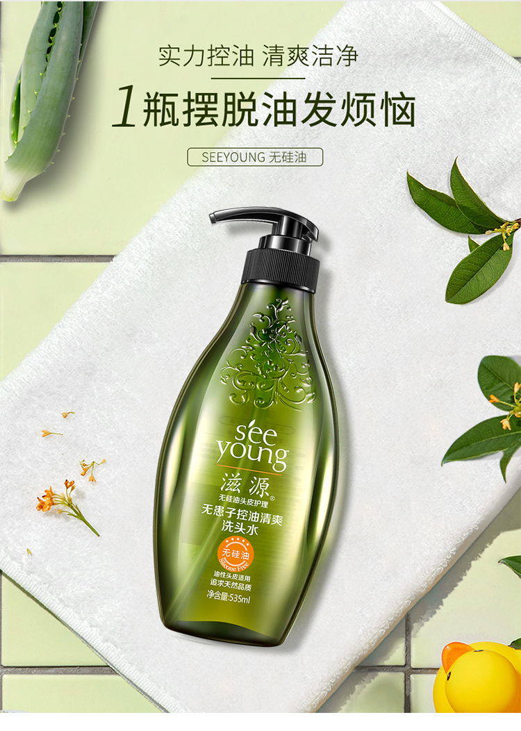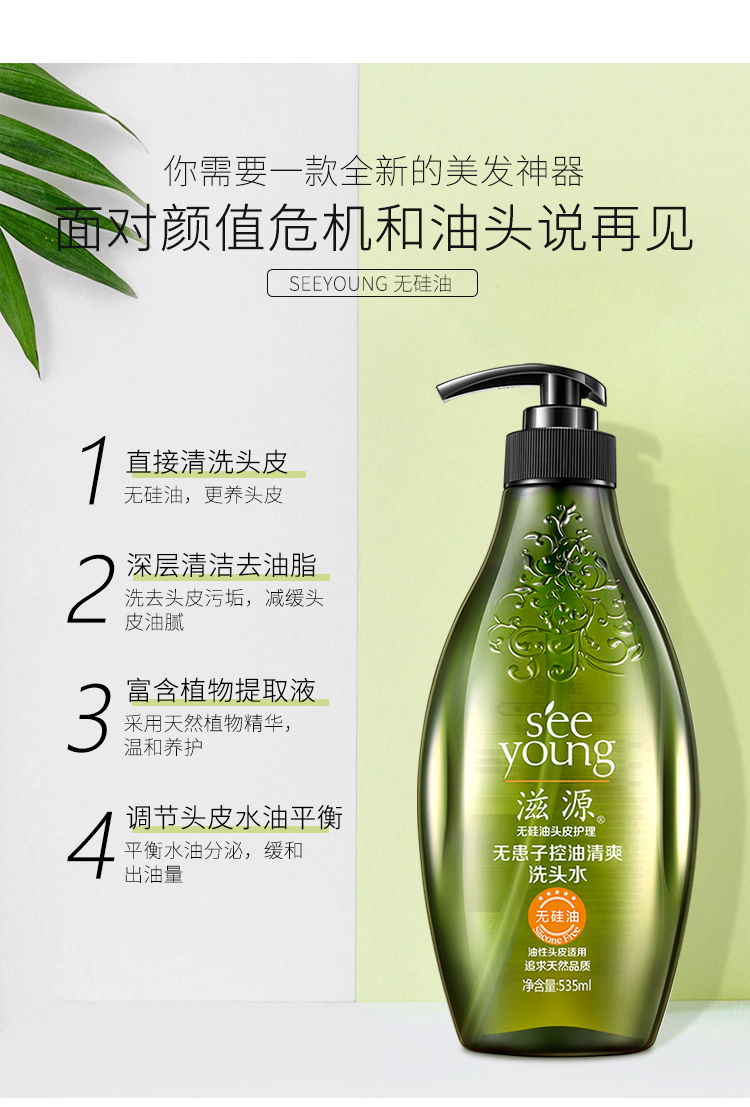 滋源无患子洗发水 无硅油控油清爽洗发露洗头膏535ml(补水控油 清爽蓬松 男女士 油性)