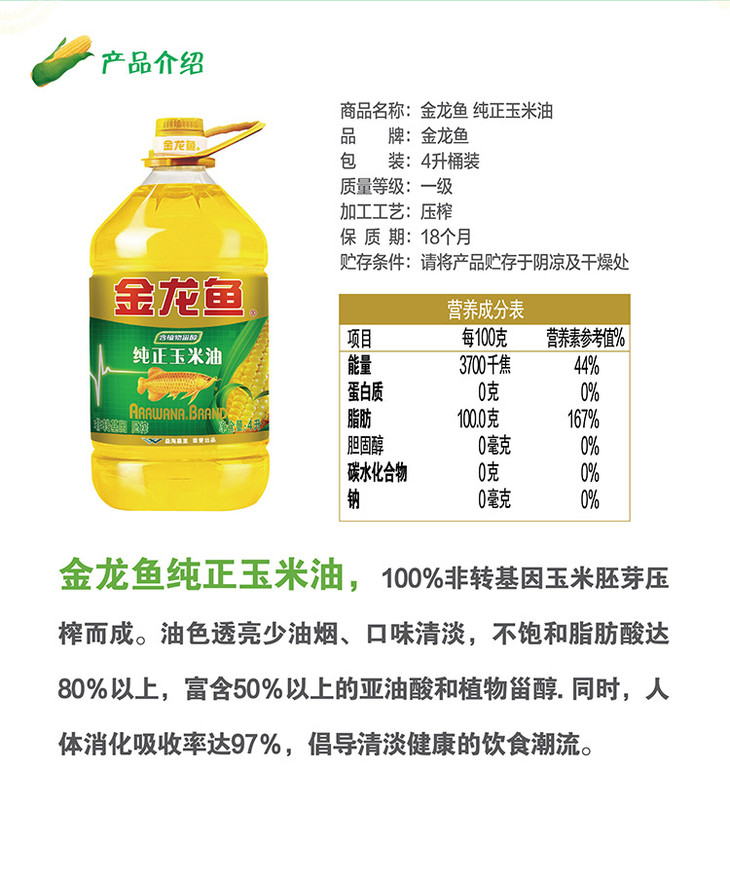 「5升装!纯正玉米油」金龙鱼纯正玉米油4L/桶 非转基因压榨植物油 炒菜粮油米面食用油福利团购