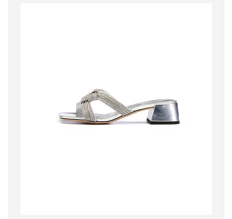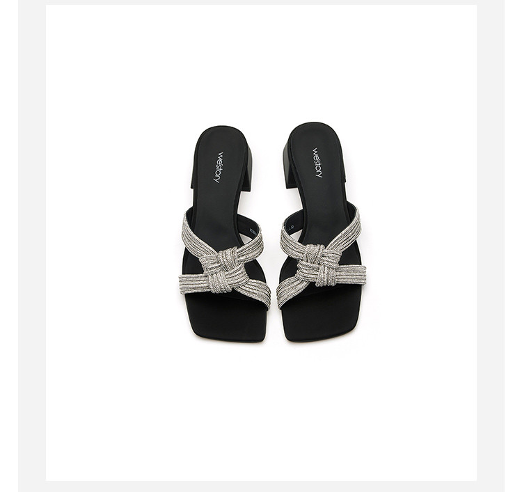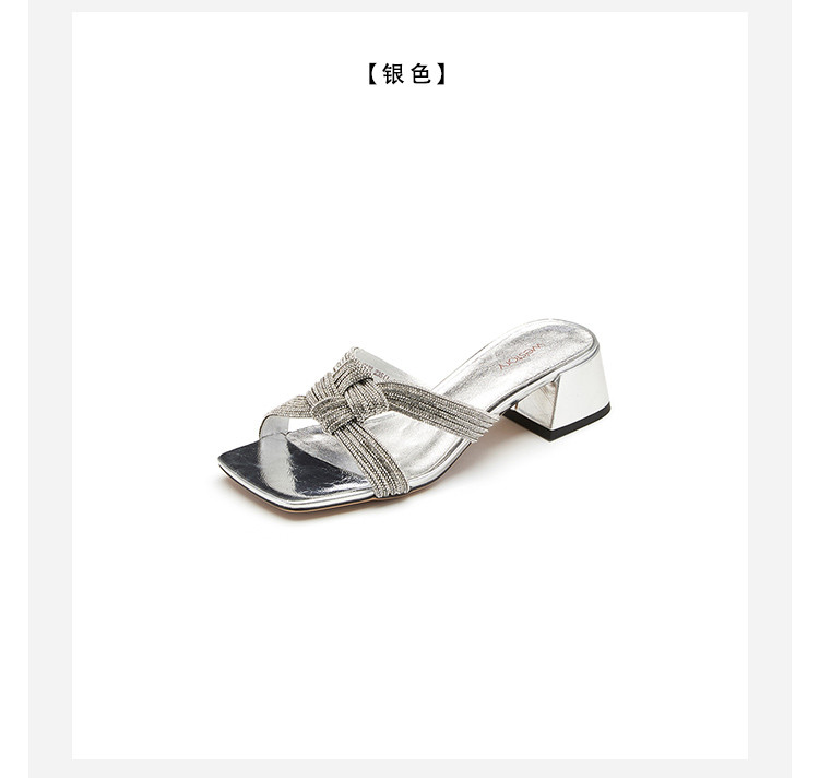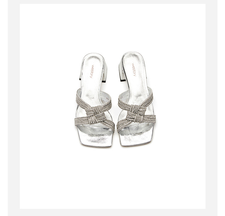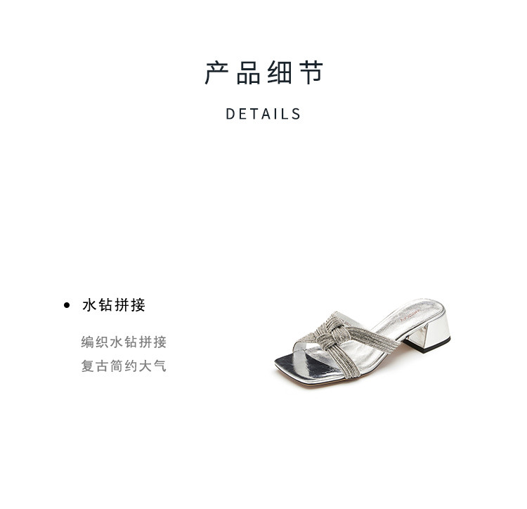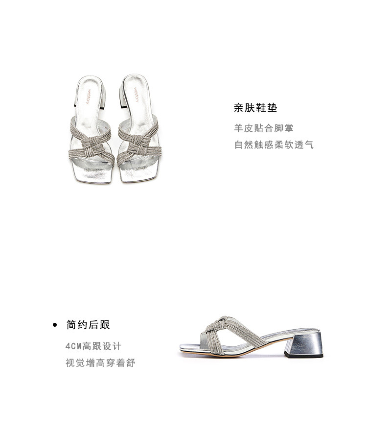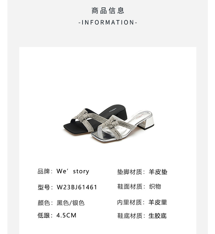 westory女鞋夏季新款方头中跟牛皮面料羊皮内垫凉拖鞋61461