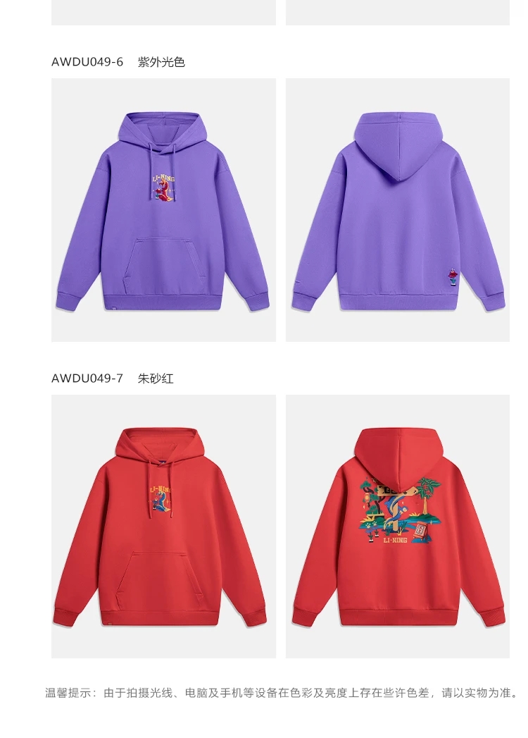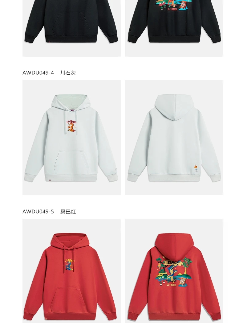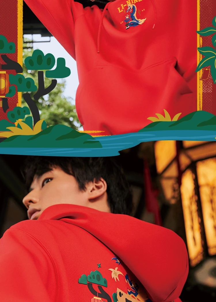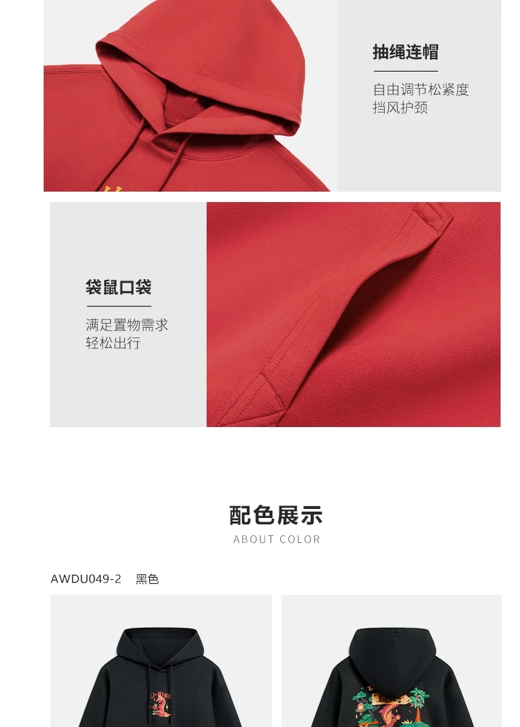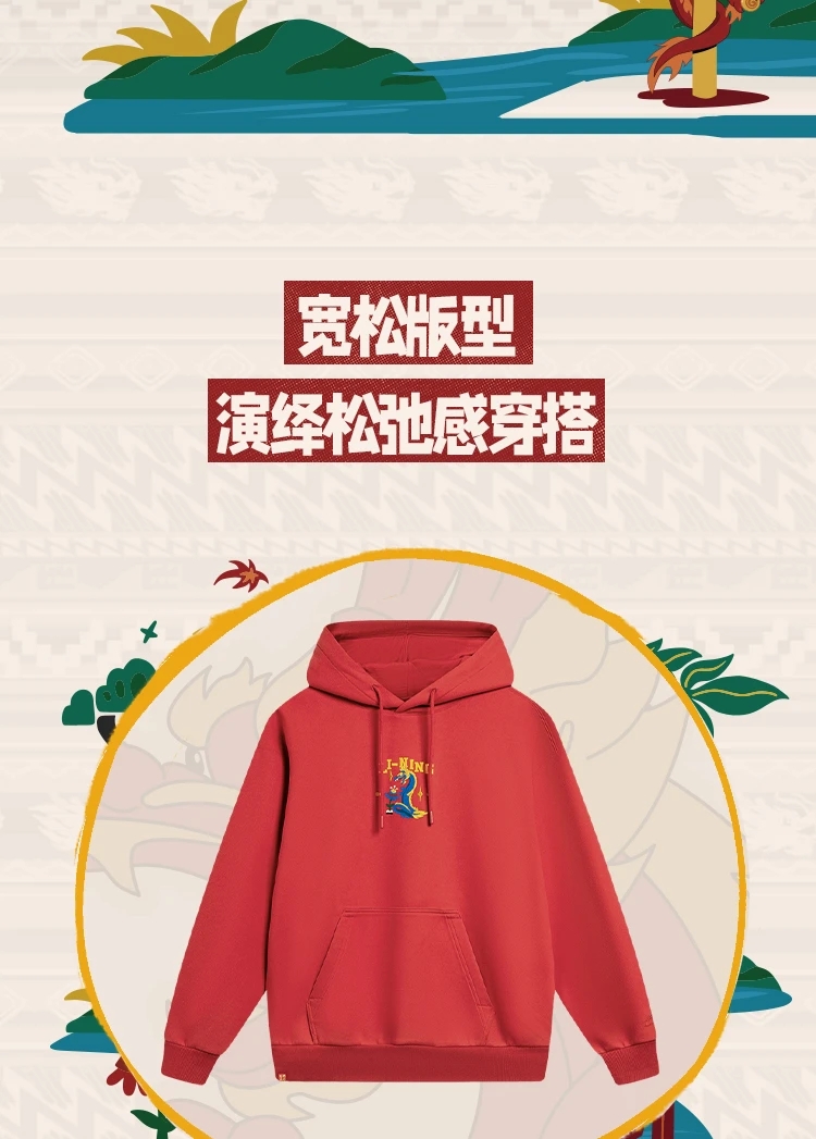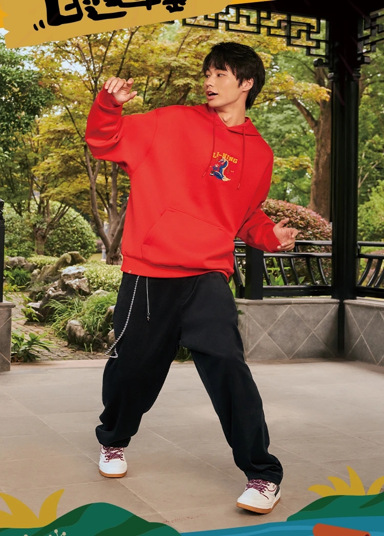 李宁-日进斗金系列男女同款宽松套头连帽卫衣AWDU049
