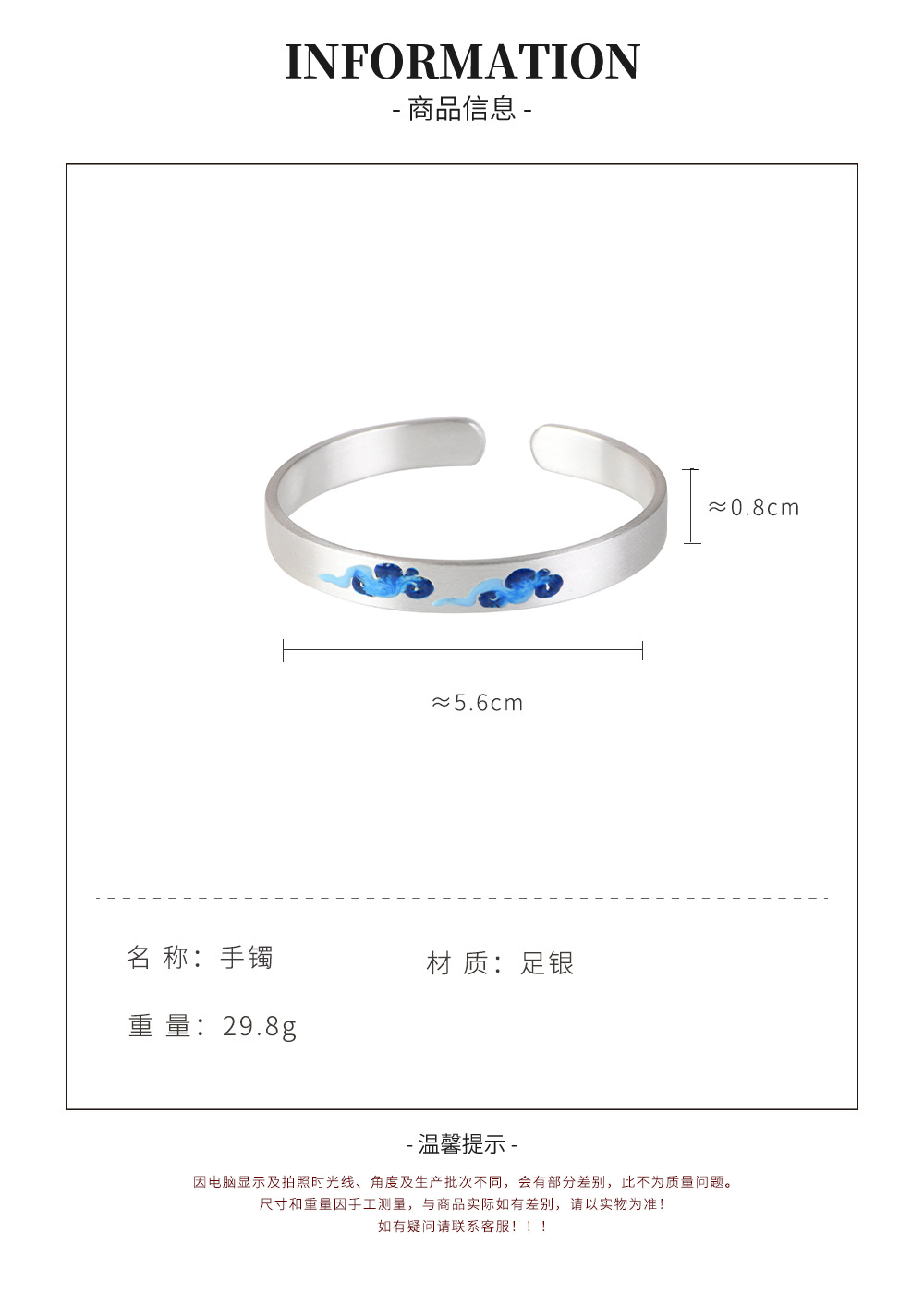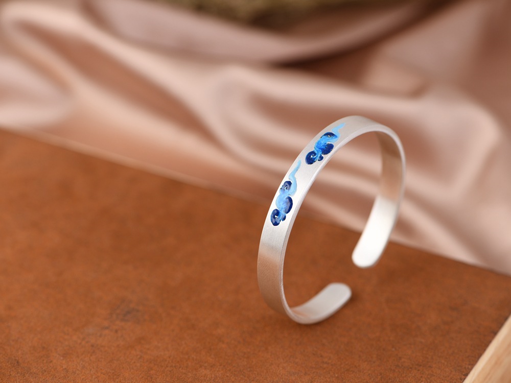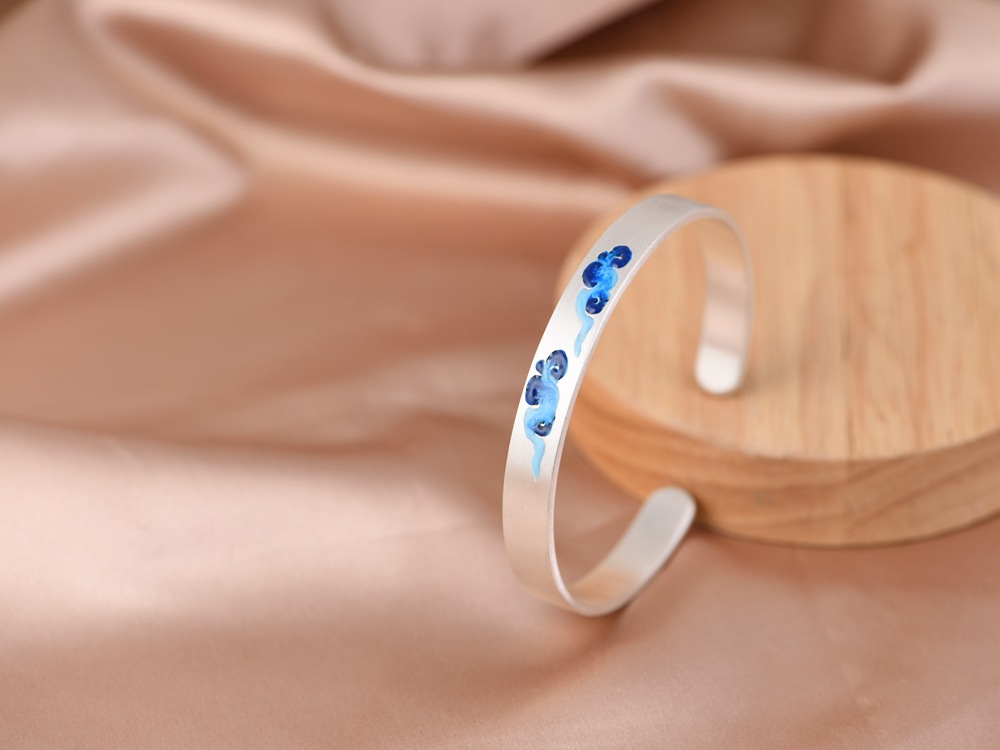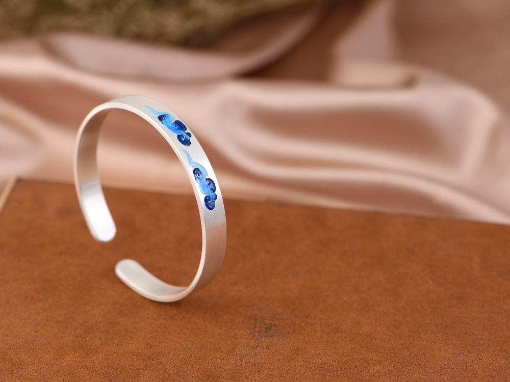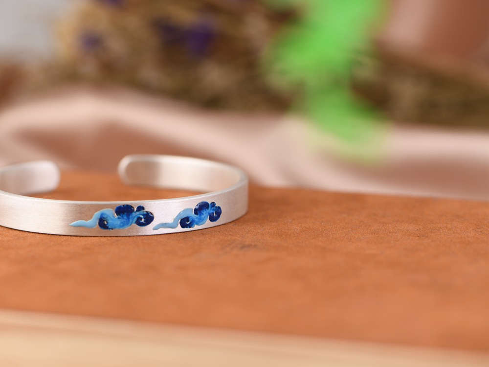【祥云相伴】999足银磨砂面景泰蓝祥云开口手镯 【SCH-SZ0025-1-191】