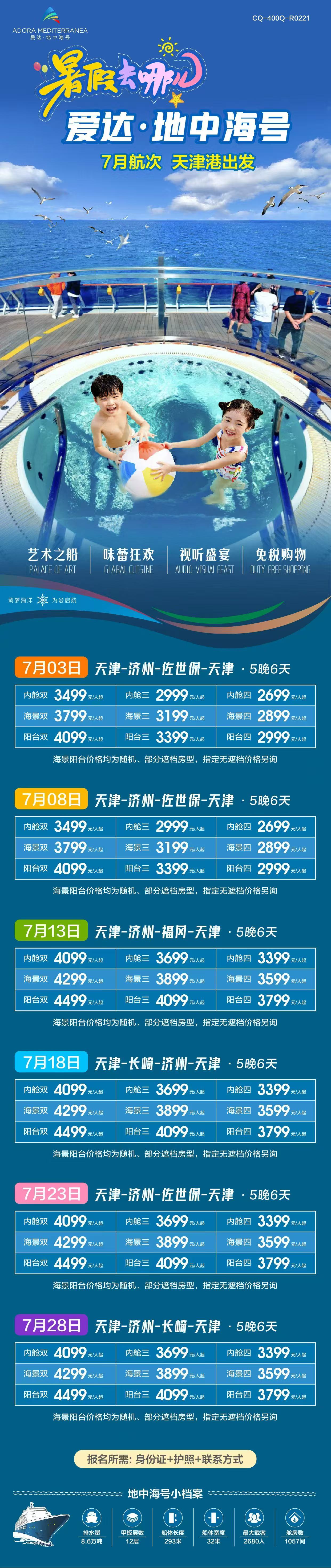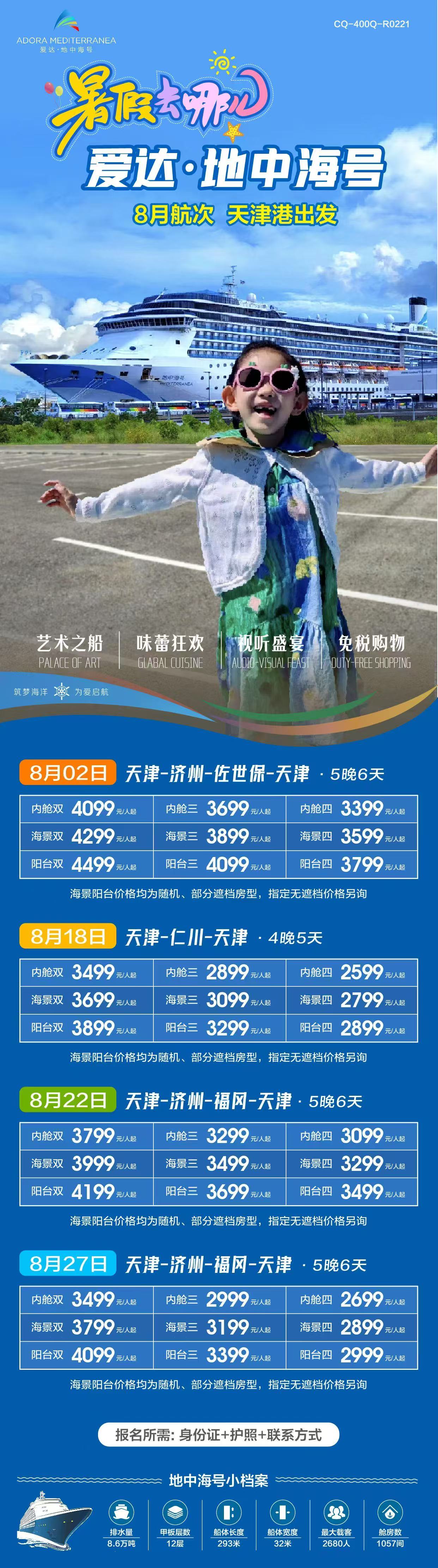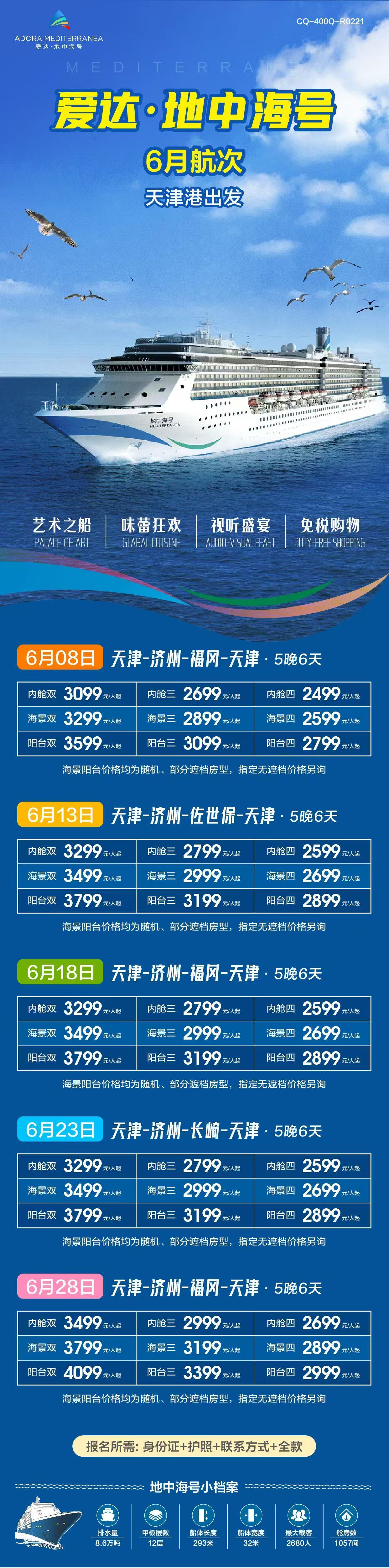 爱达邮轮天津港出发多航次日本韩国下船多种房型可选