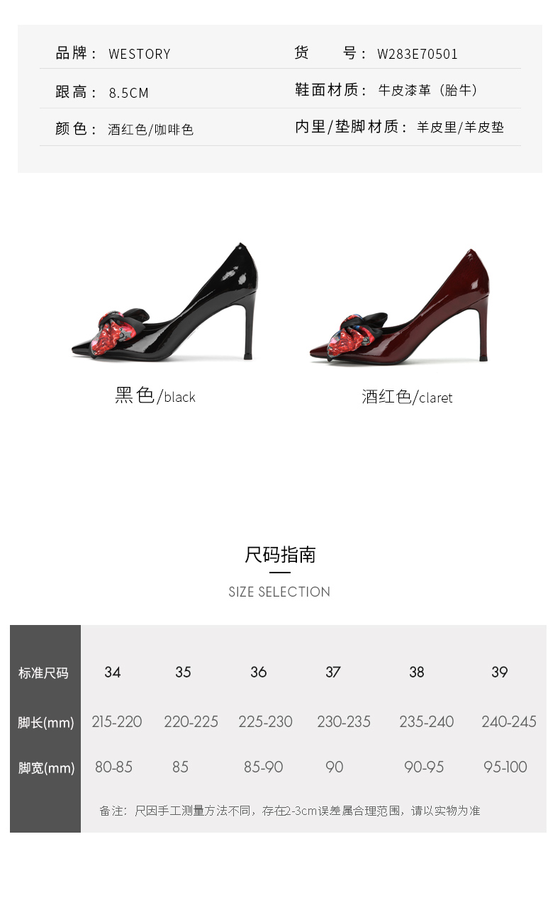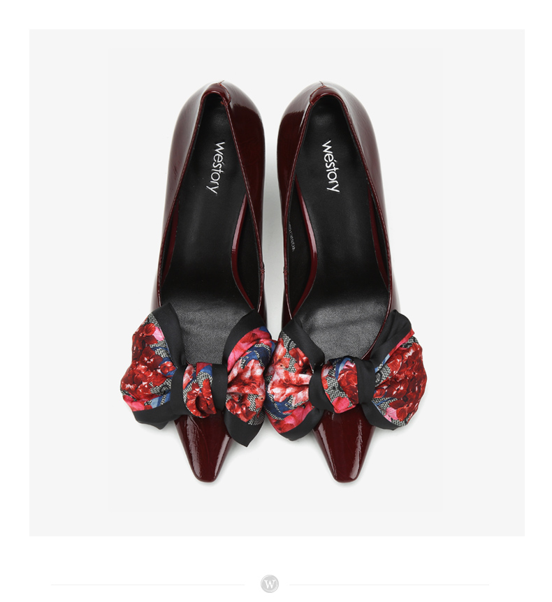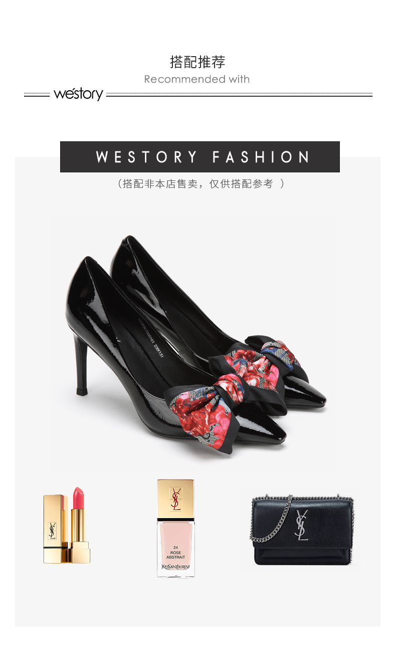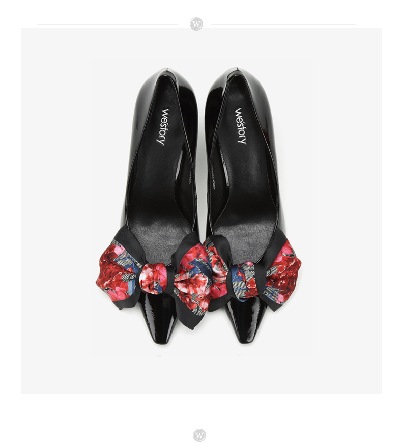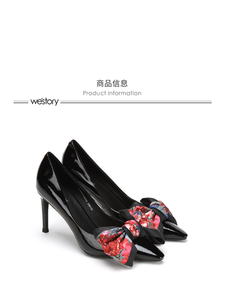 westory新款浅口单鞋蝴蝶结高跟鞋时尚女鞋W283E70501