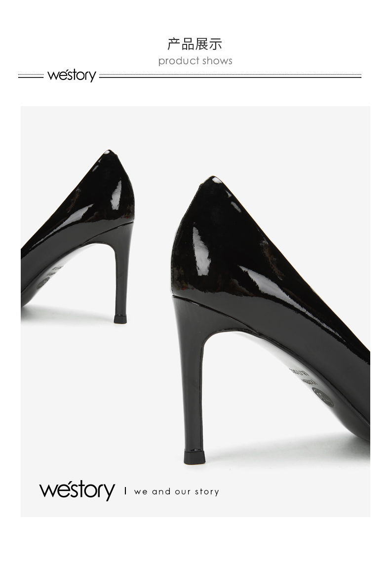 westory女鞋春季新款羊皮尖头高跟鞋细跟浅口婚鞋52641