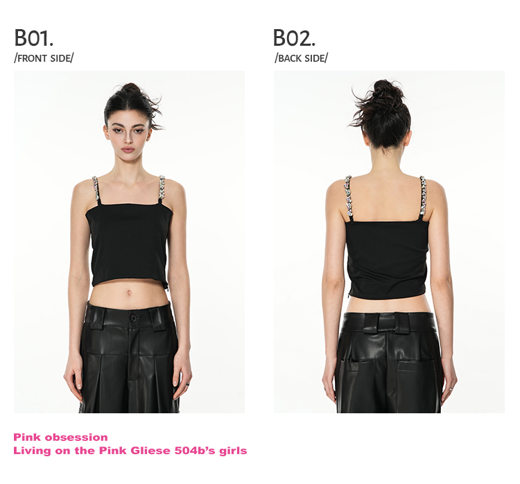 FTT Flythetruth 寻宝夜幕 碎钻肩带背心女春季美背打底吊带上衣
