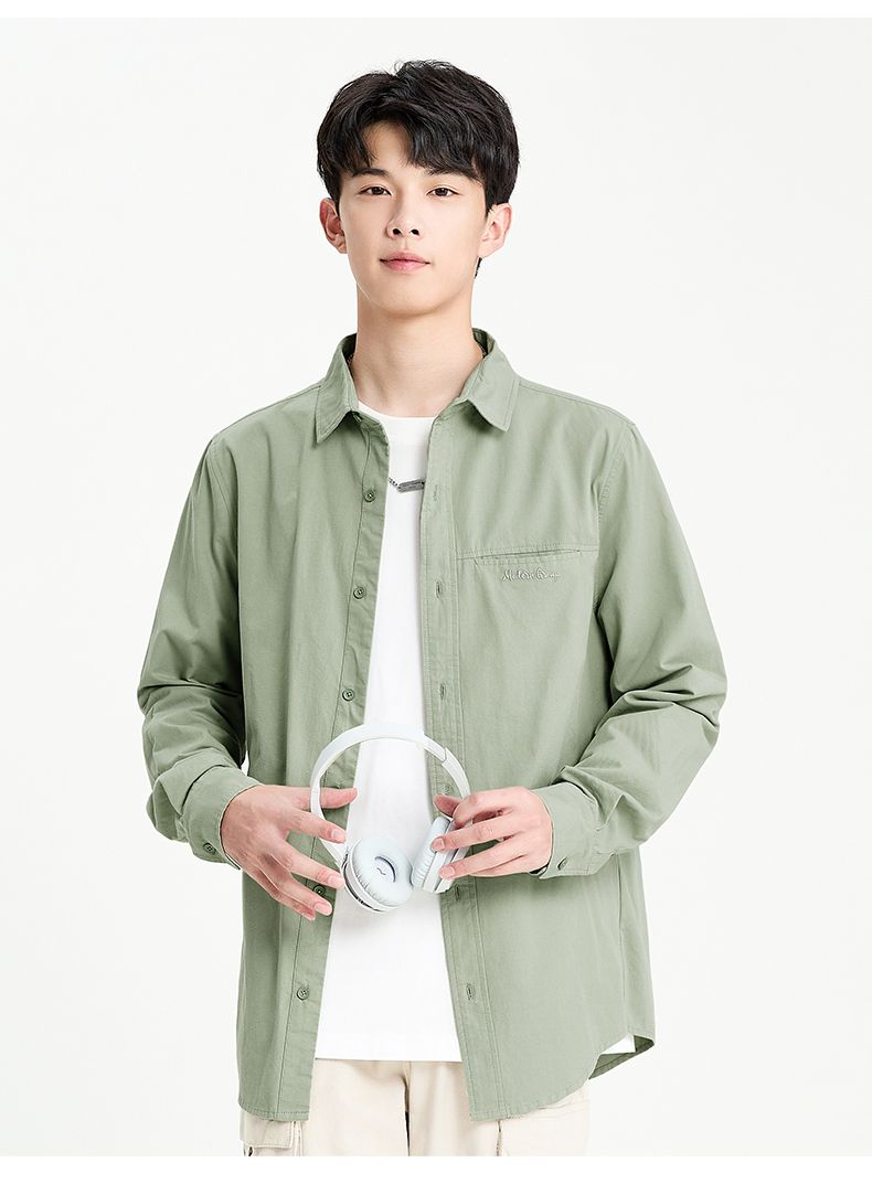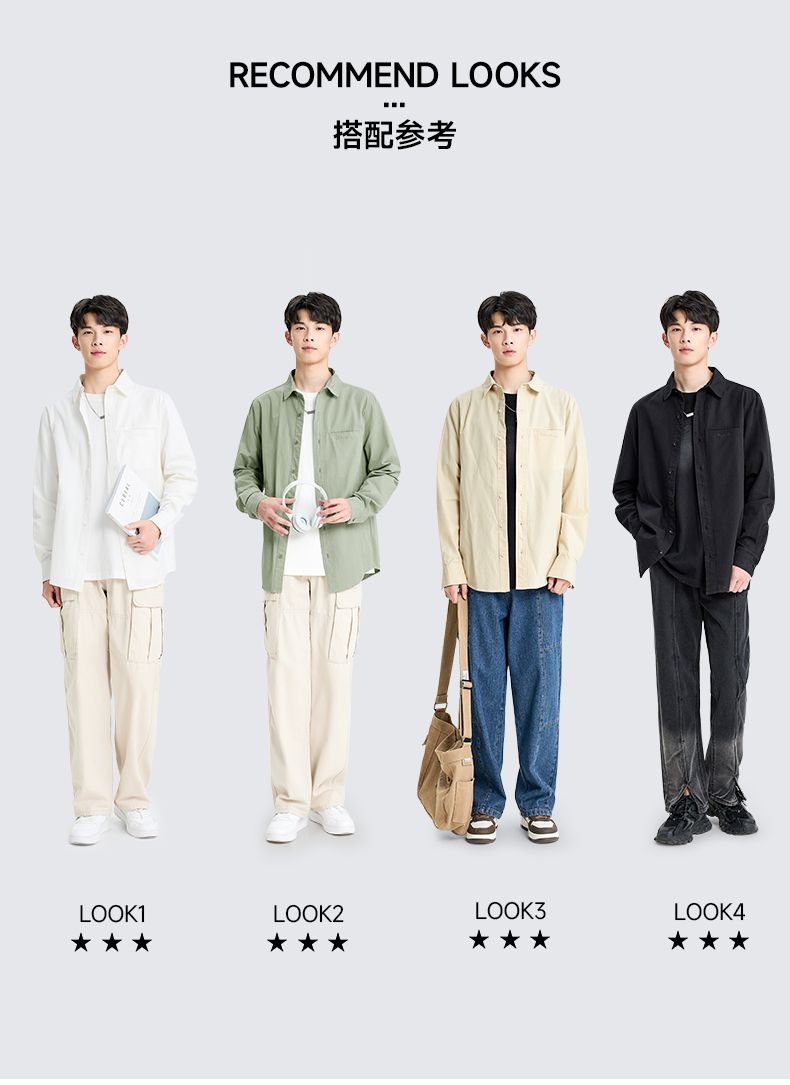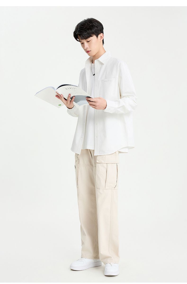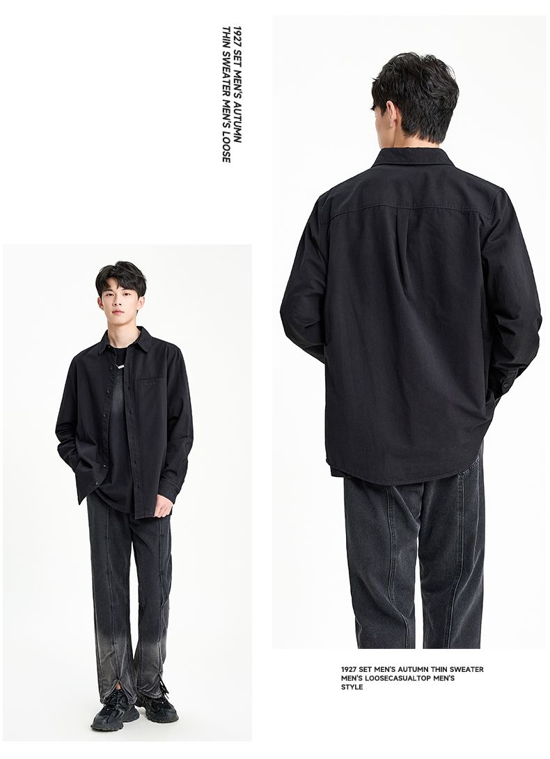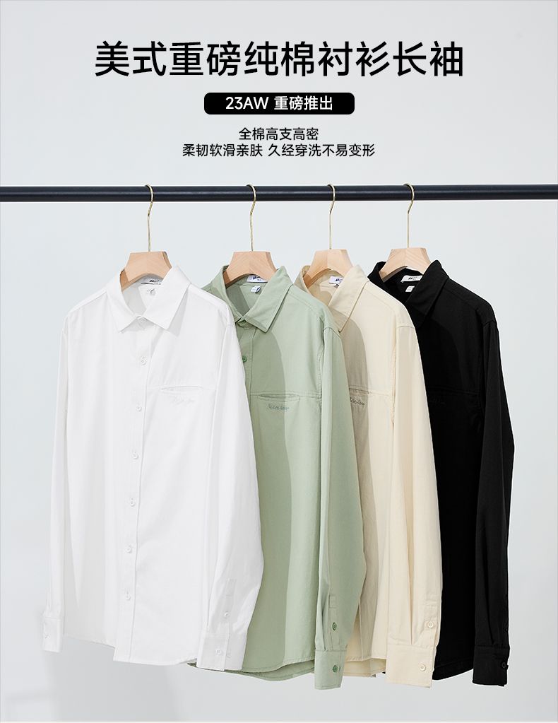 回力长袖衬衫男士2025春秋新款复古重磅休闲衬衣翻领纯棉百搭外套