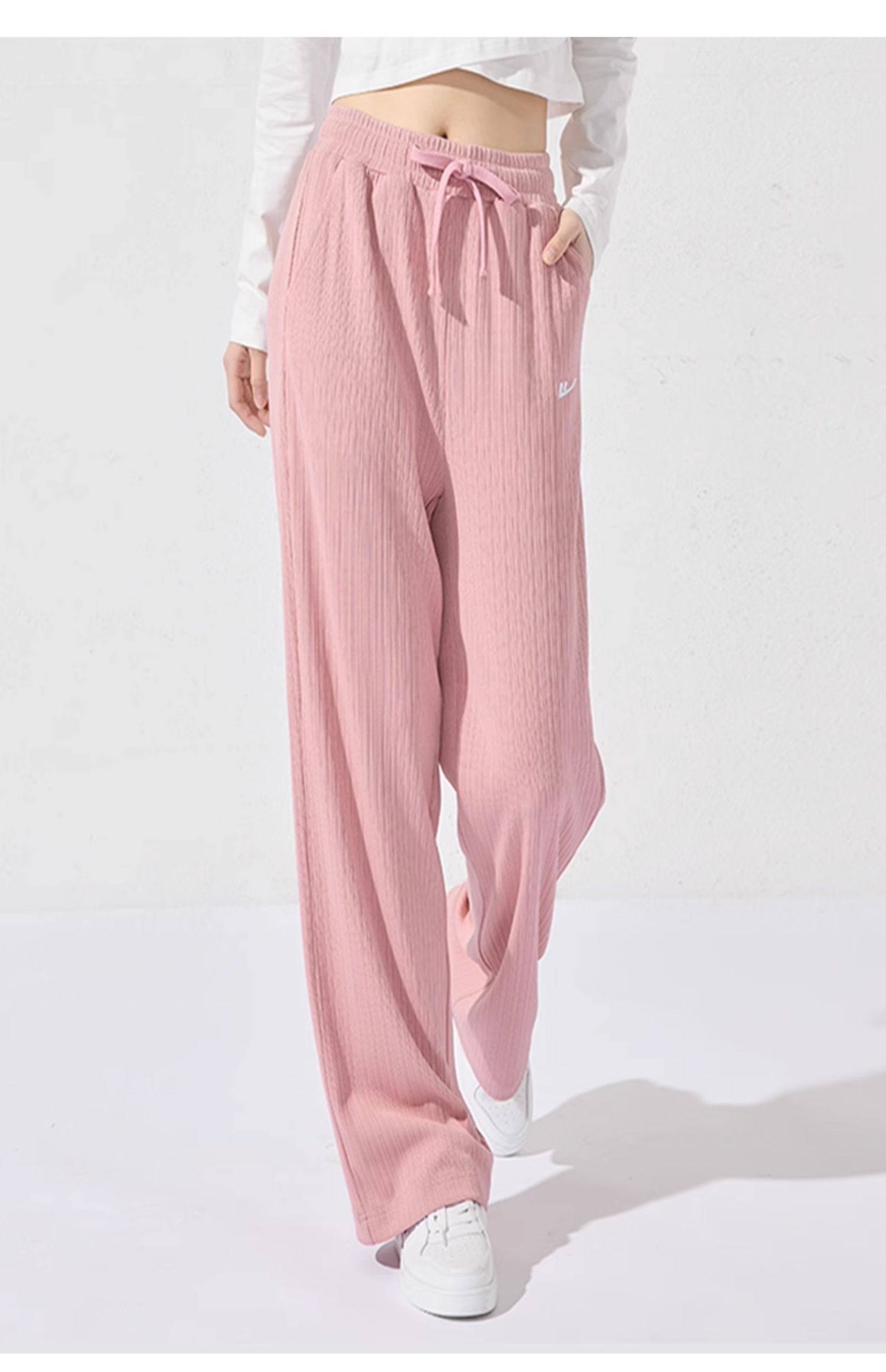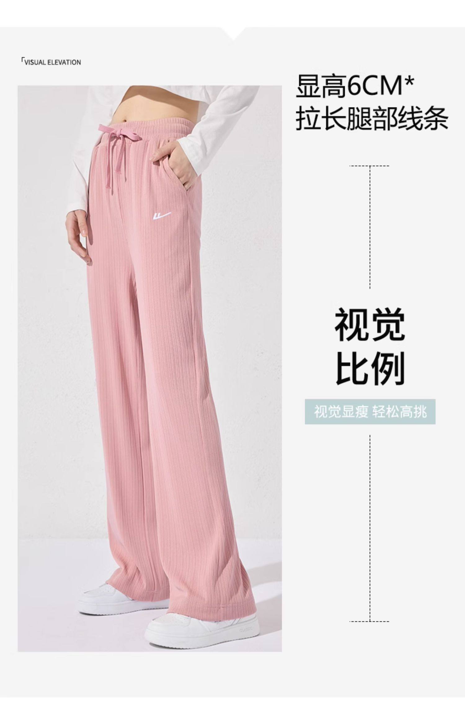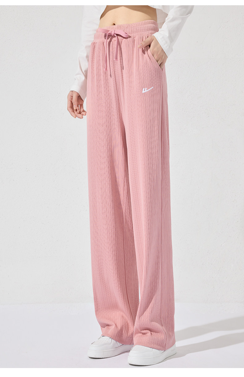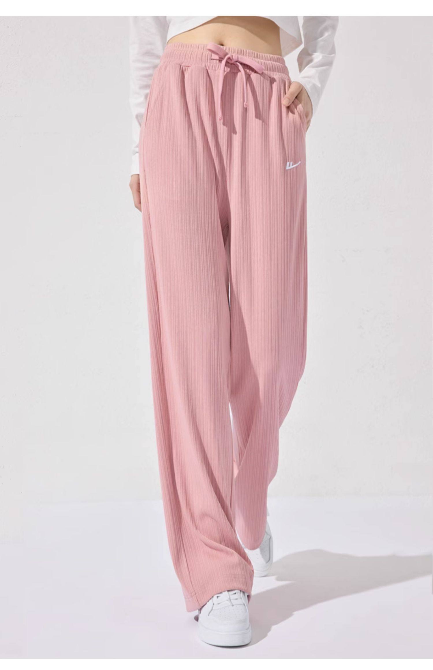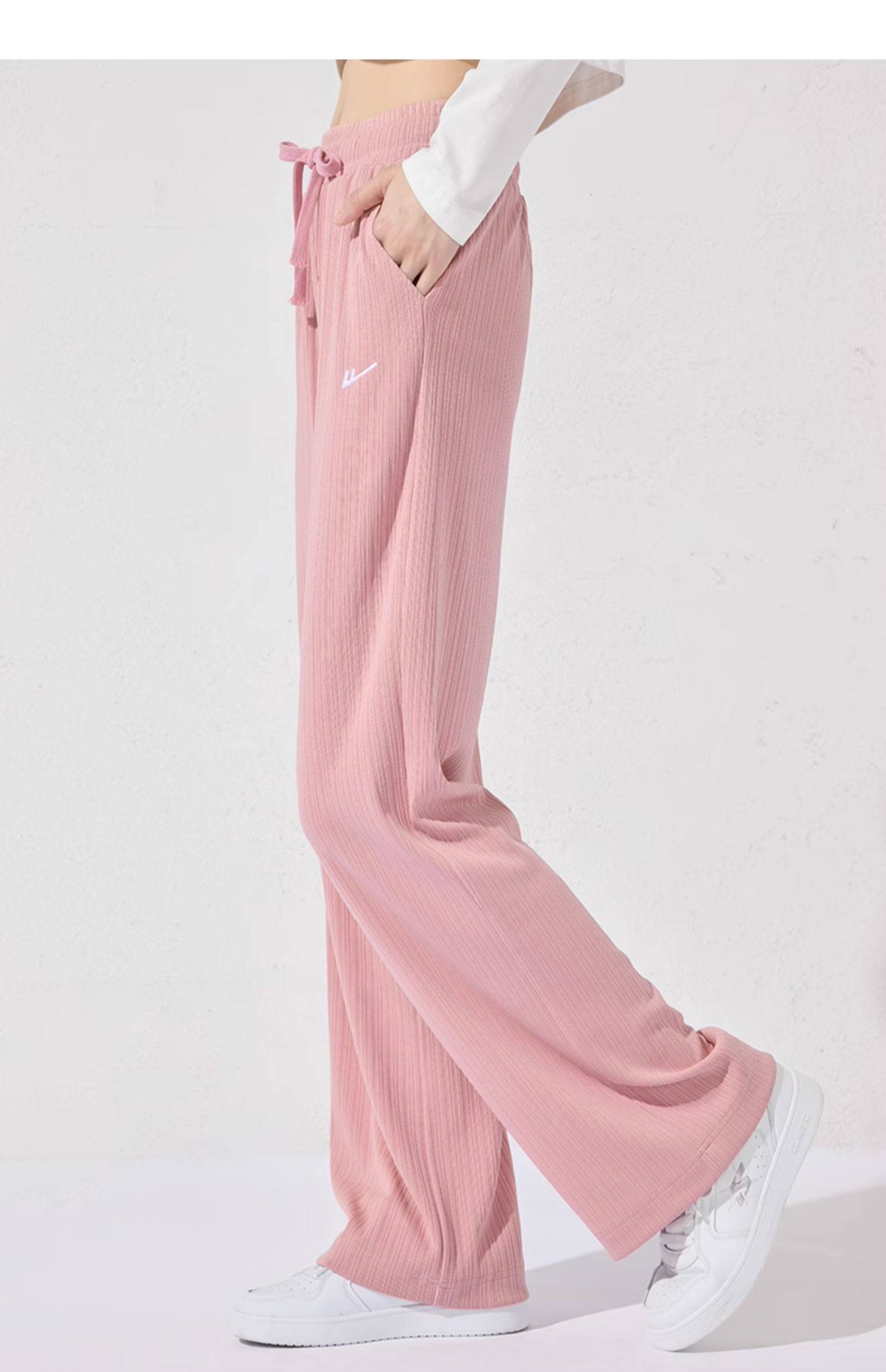 回力冰丝阔腿裤女秋季2025新款高腰休闲粉色裤子女垂感窄版直筒裤