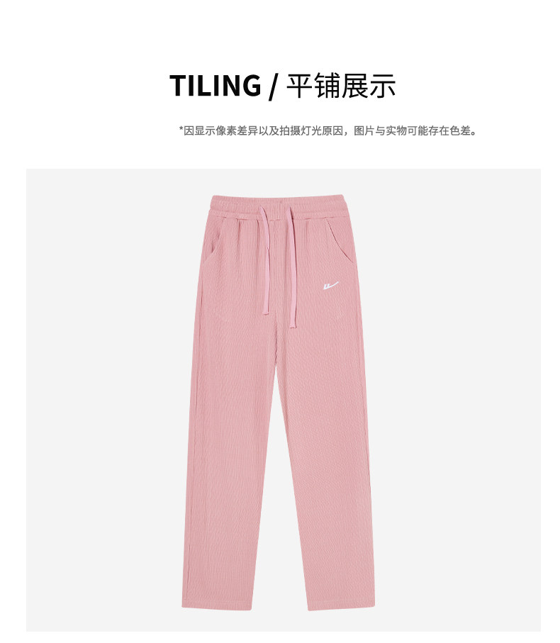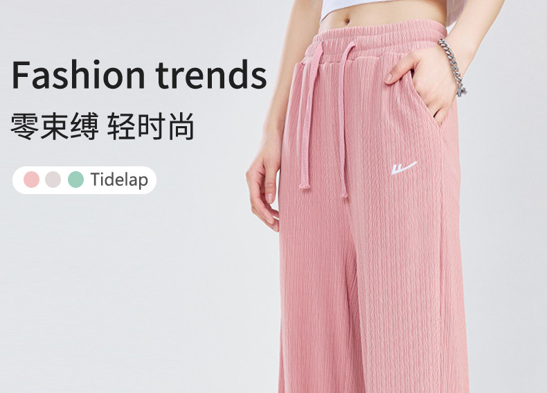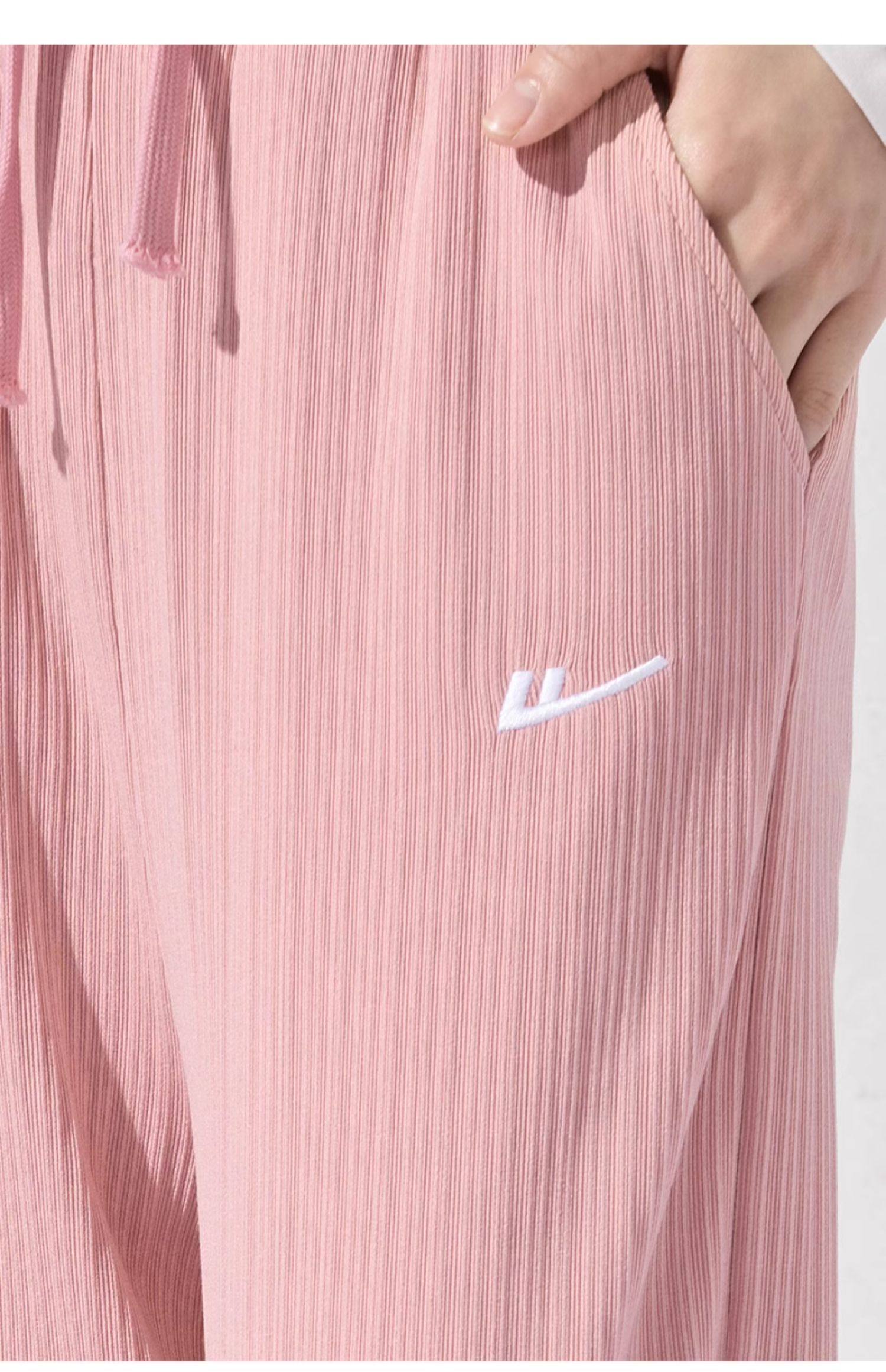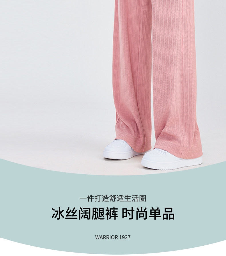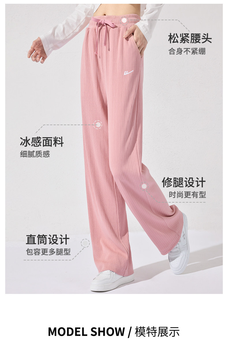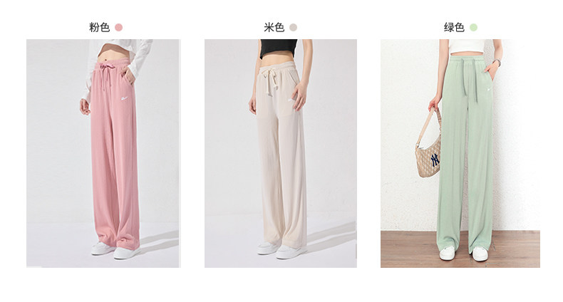 回力冰丝阔腿裤女秋季2025新款高腰休闲粉色裤子女垂感窄版直筒裤