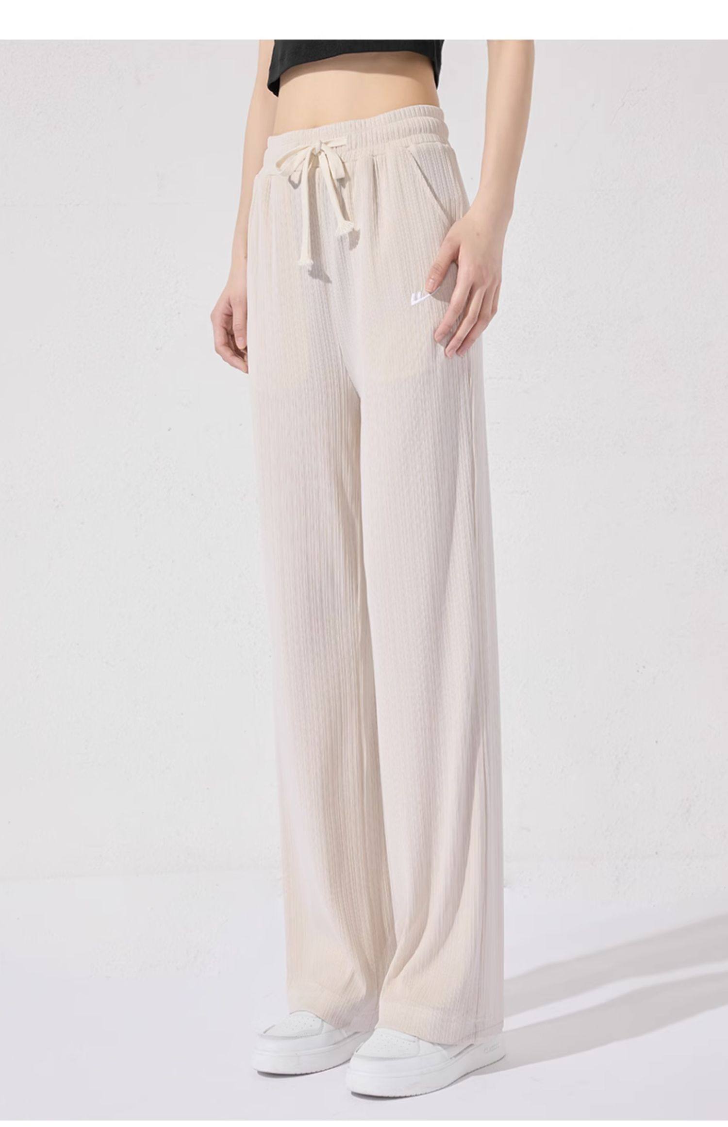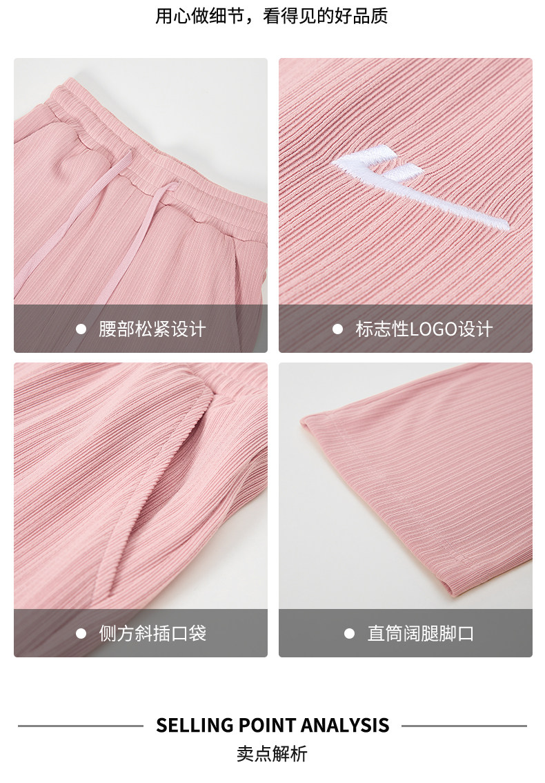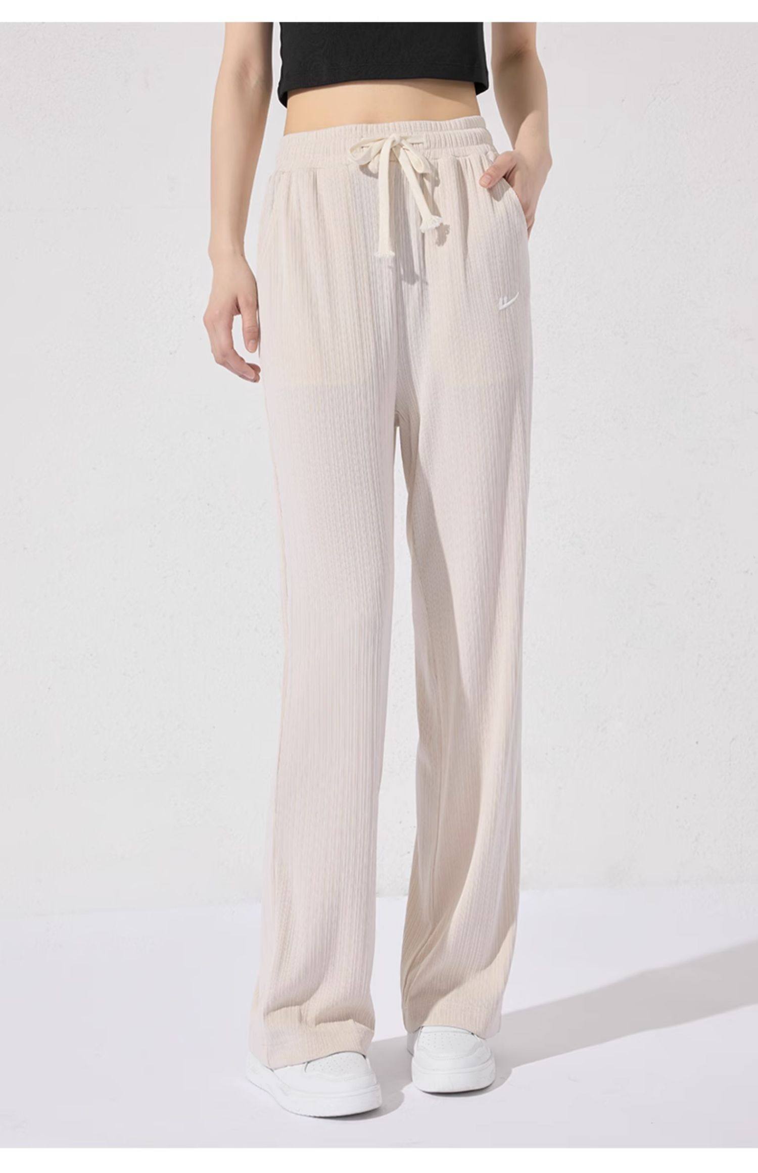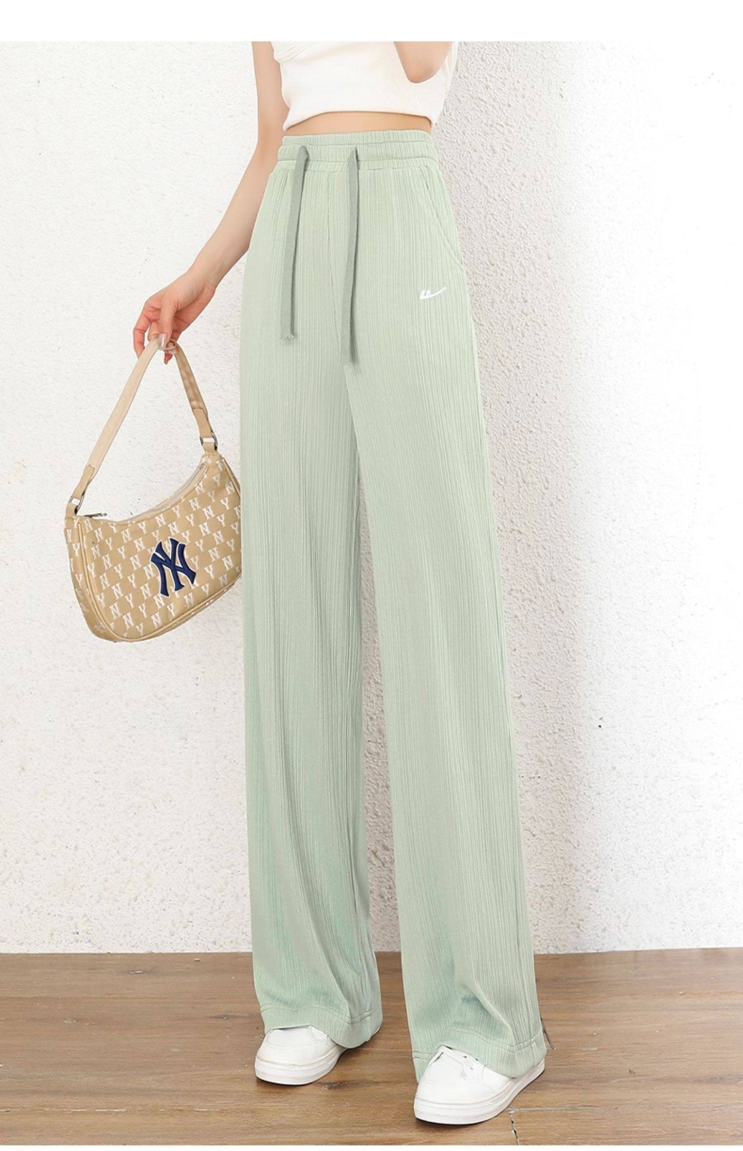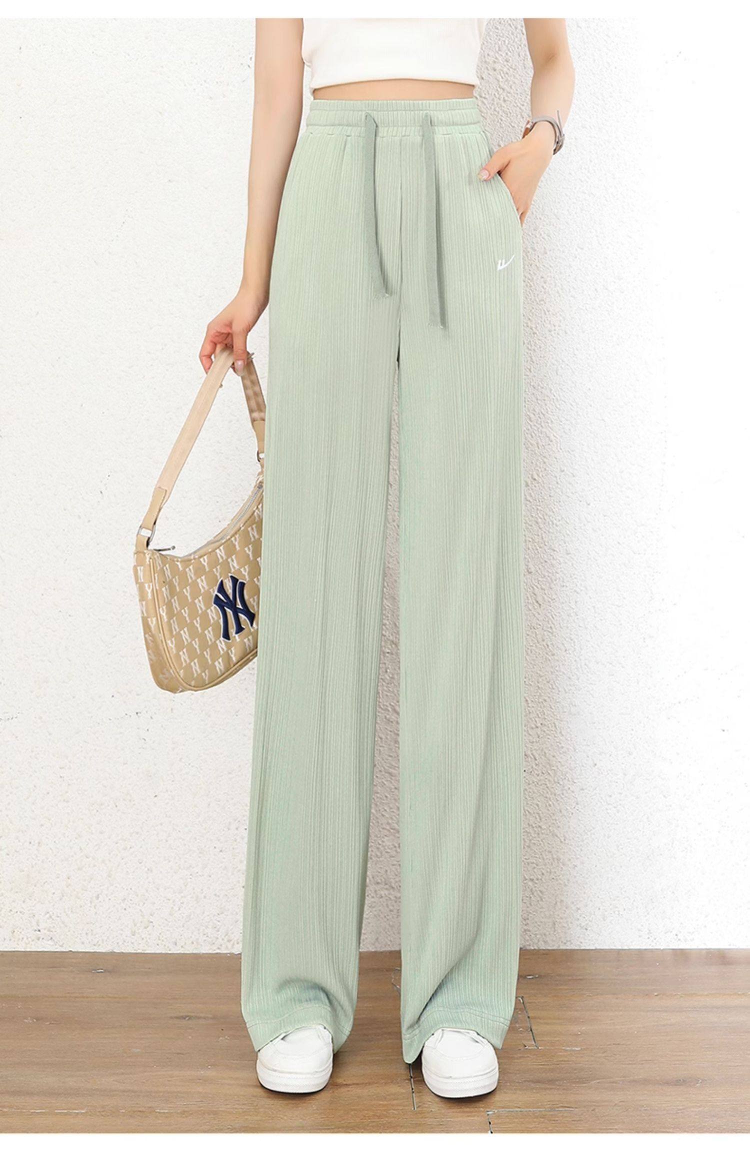 回力冰丝阔腿裤女秋季2025新款高腰休闲粉色裤子女垂感窄版直筒裤