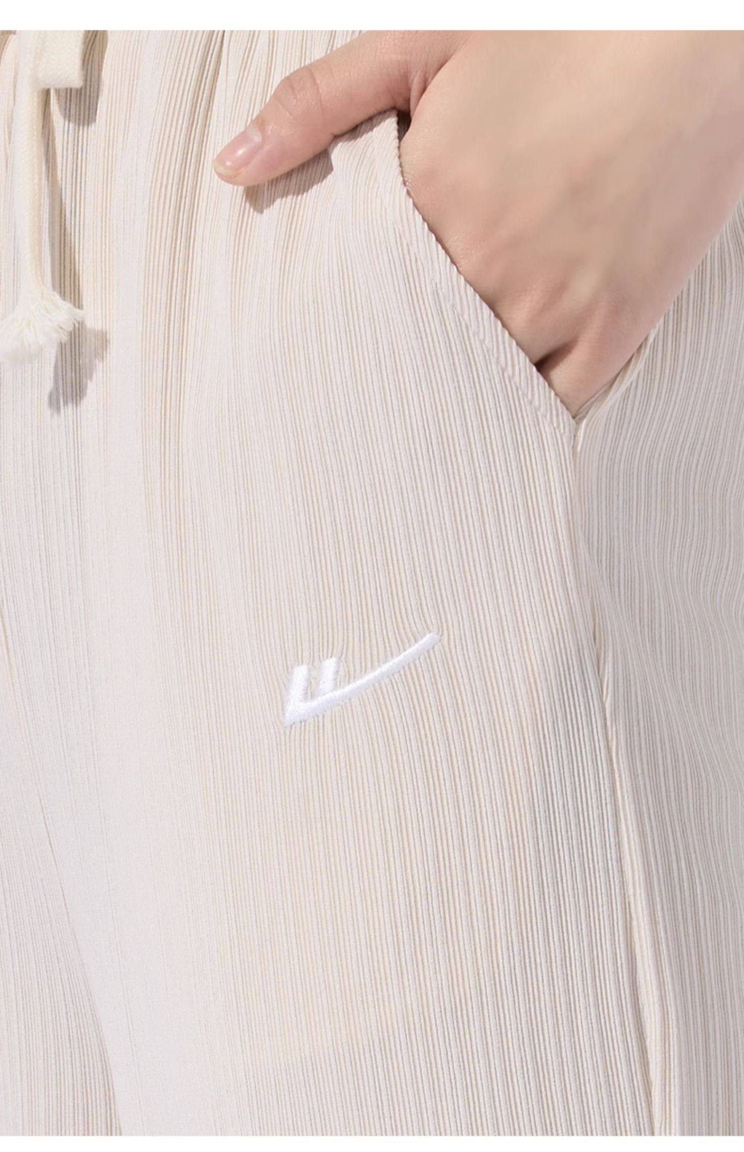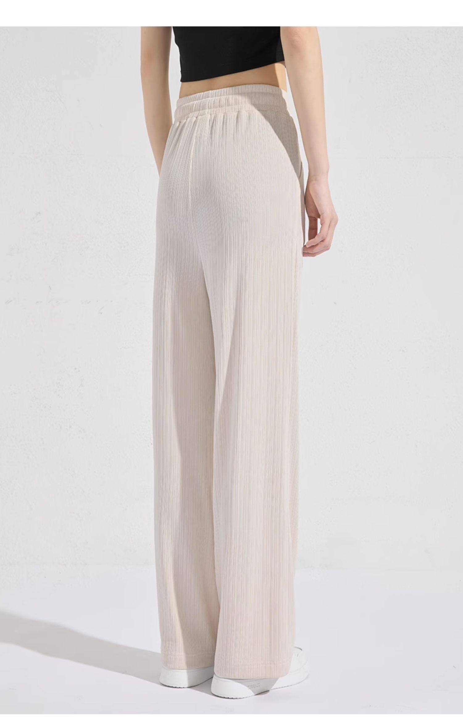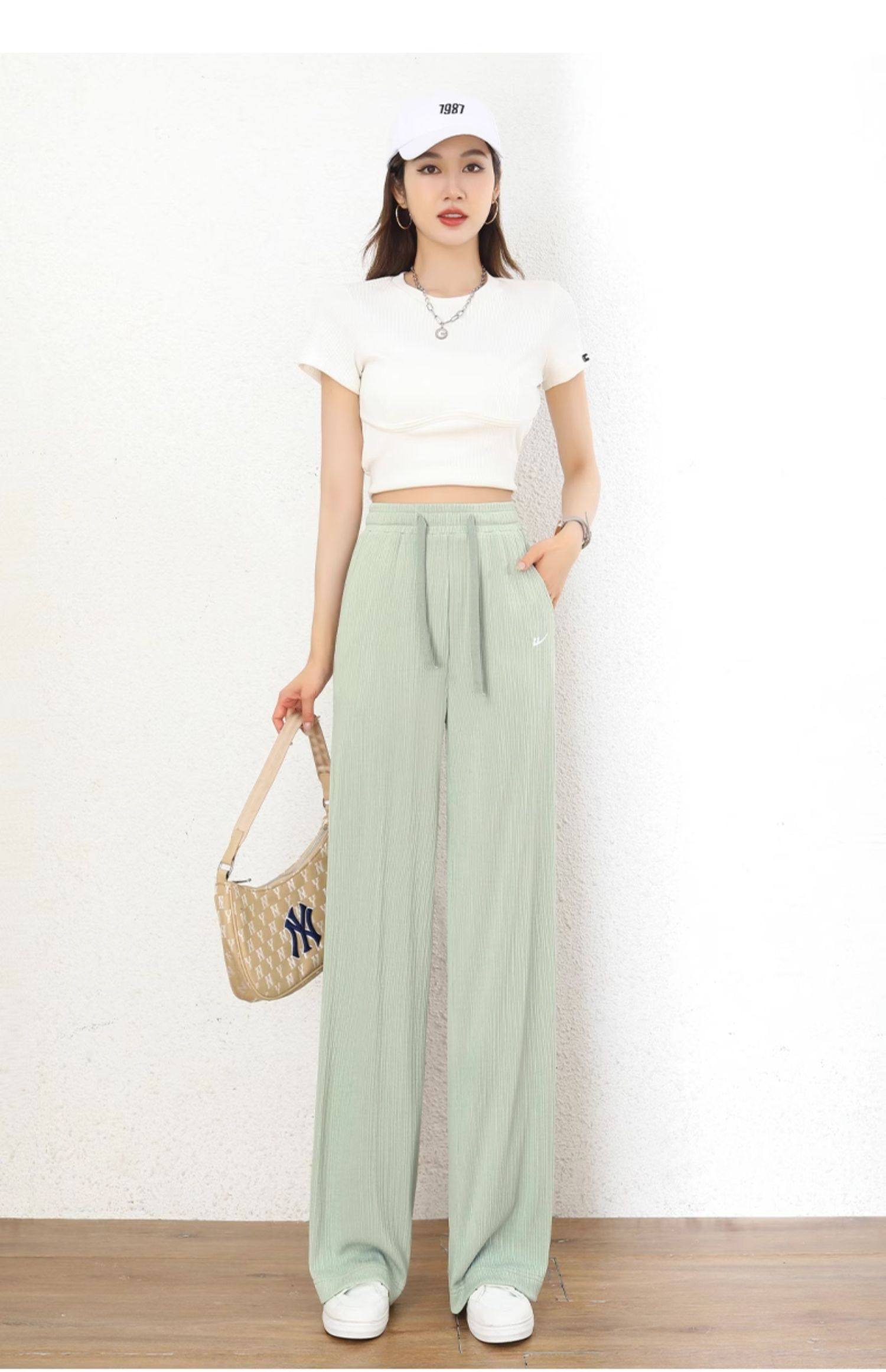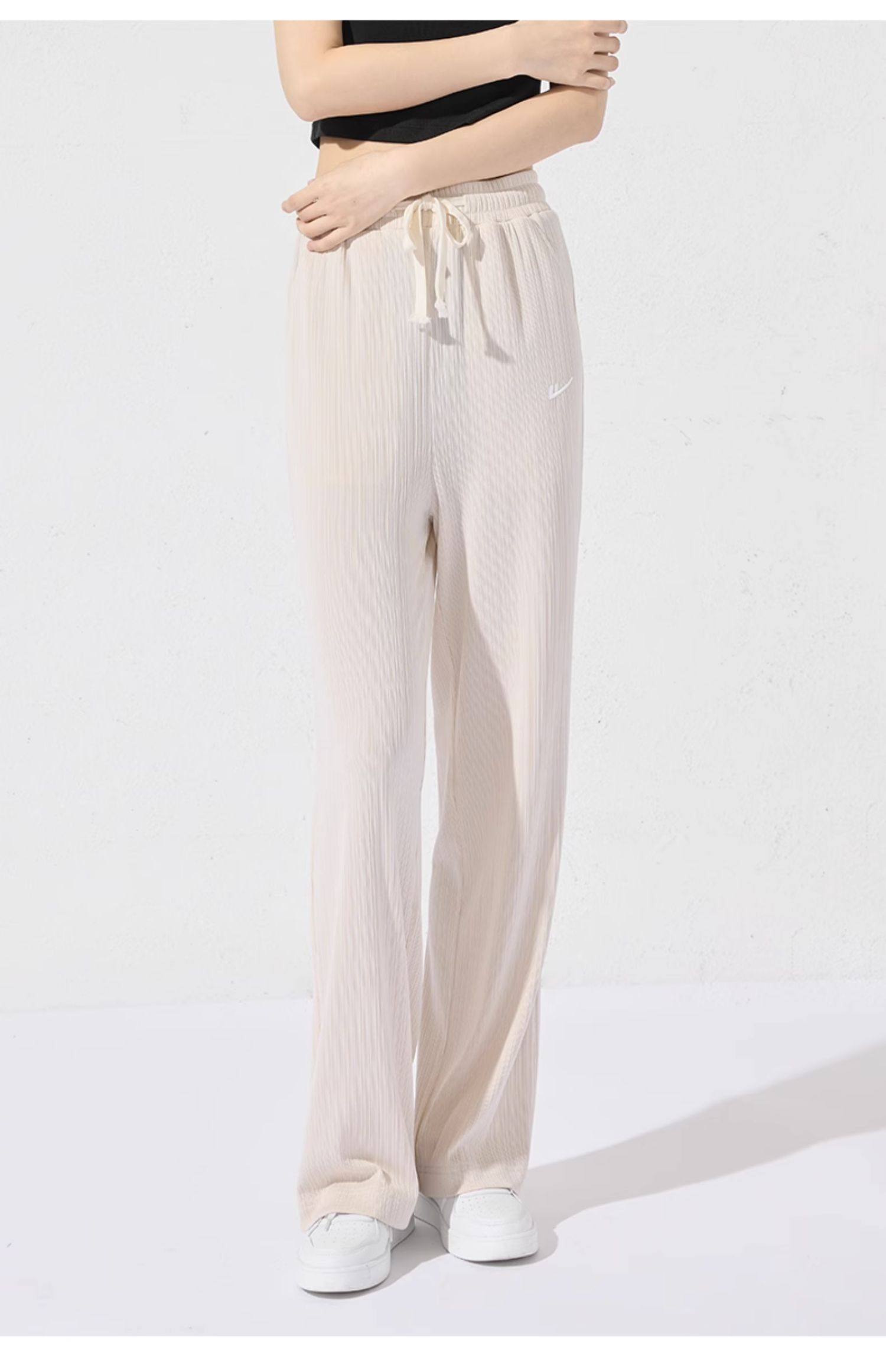回力冰丝阔腿裤女秋季2025新款高腰休闲粉色裤子女垂感窄版直筒裤