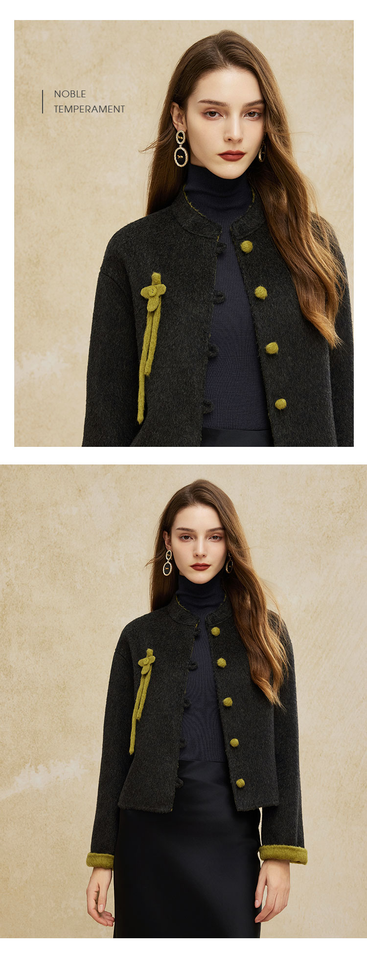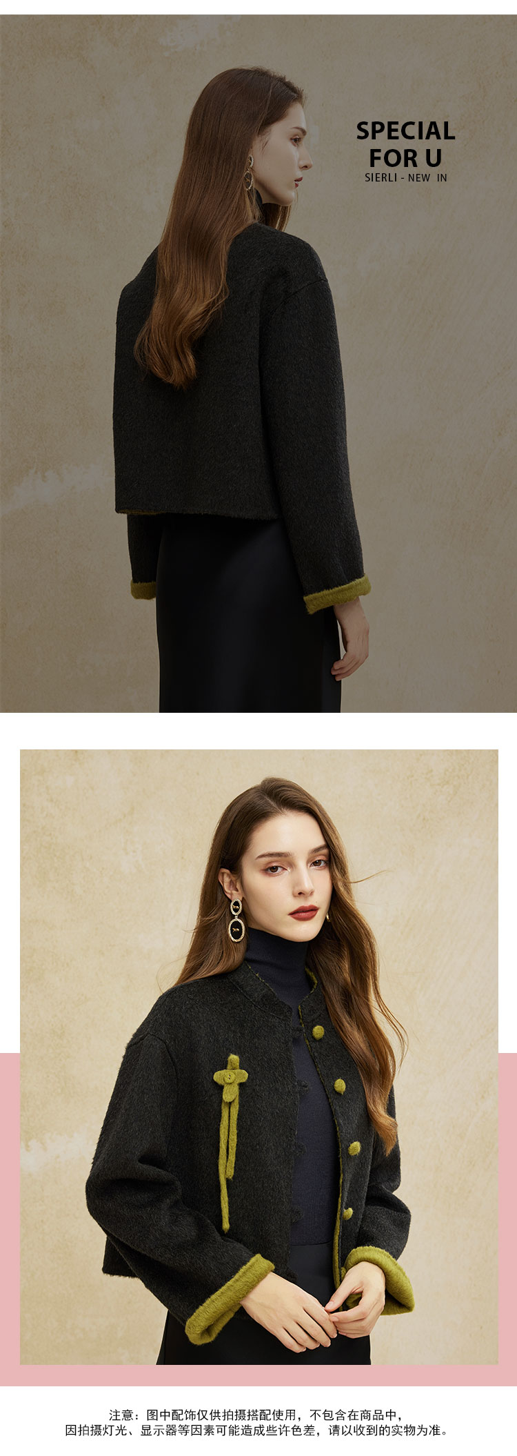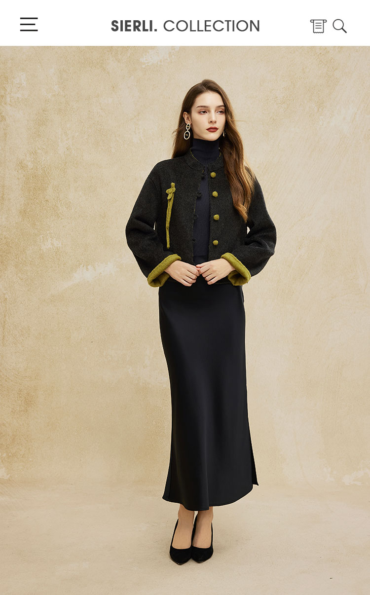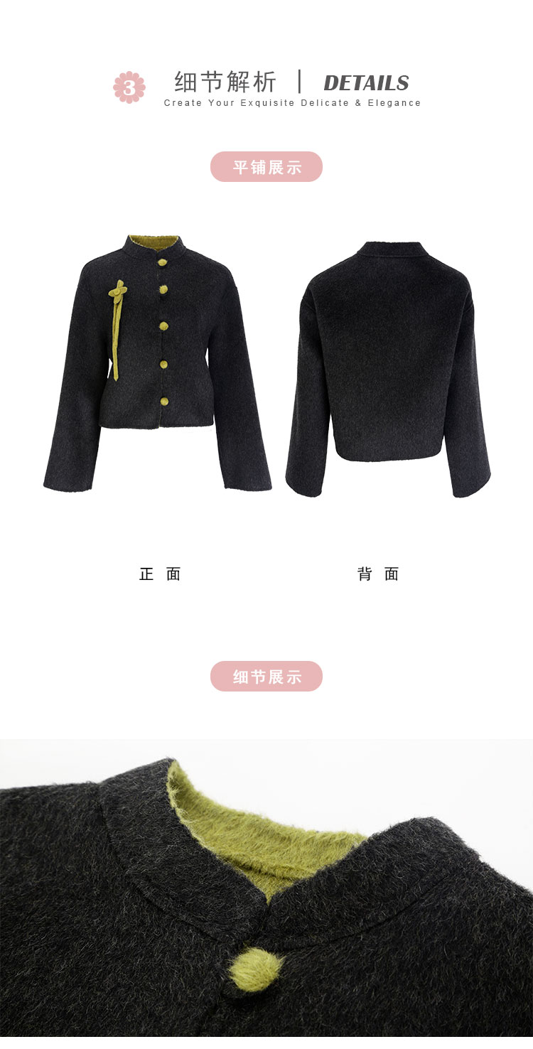 PH966斯尔丽24冬季新款双面撞色轻国风小短款简约通勤大衣外套