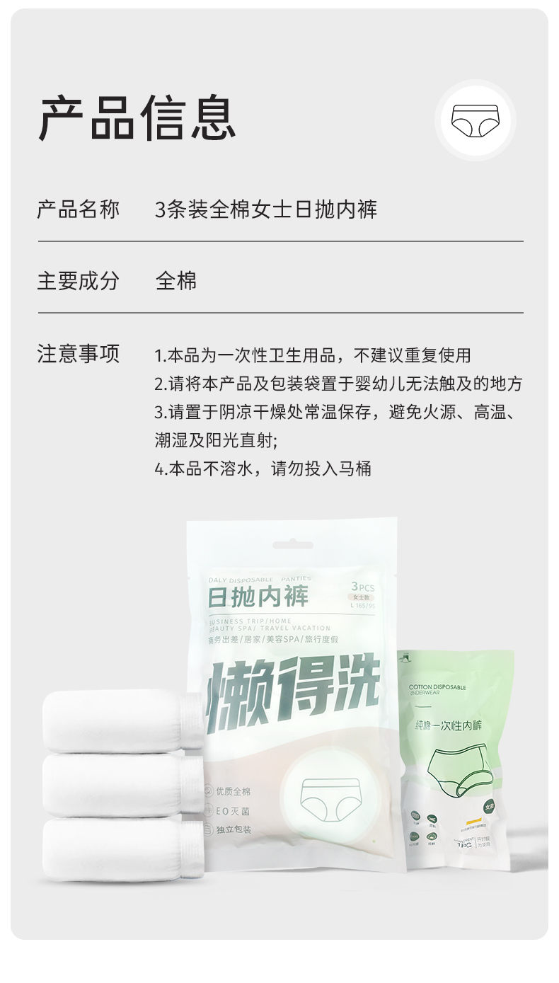 一次性内裤棉质出差旅行日抛内裤洁净独立包装女内裤WS20806