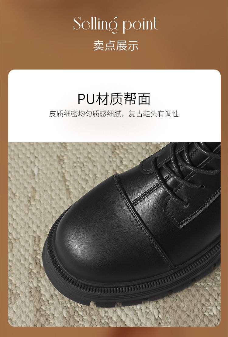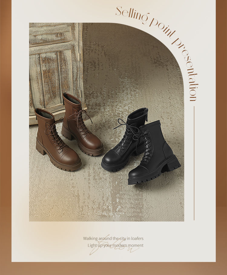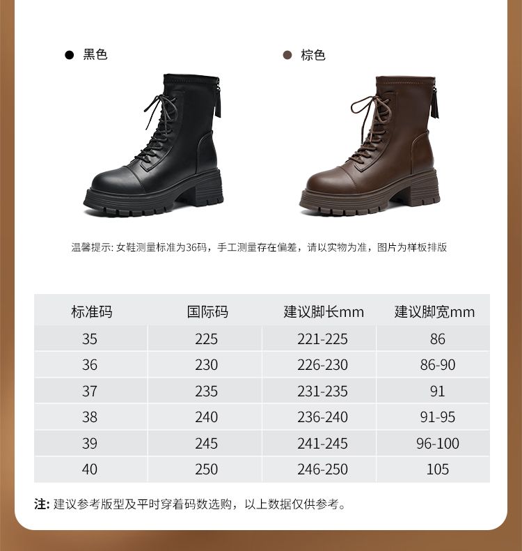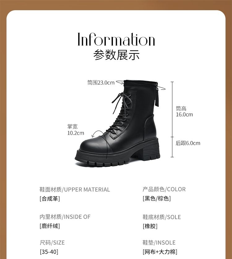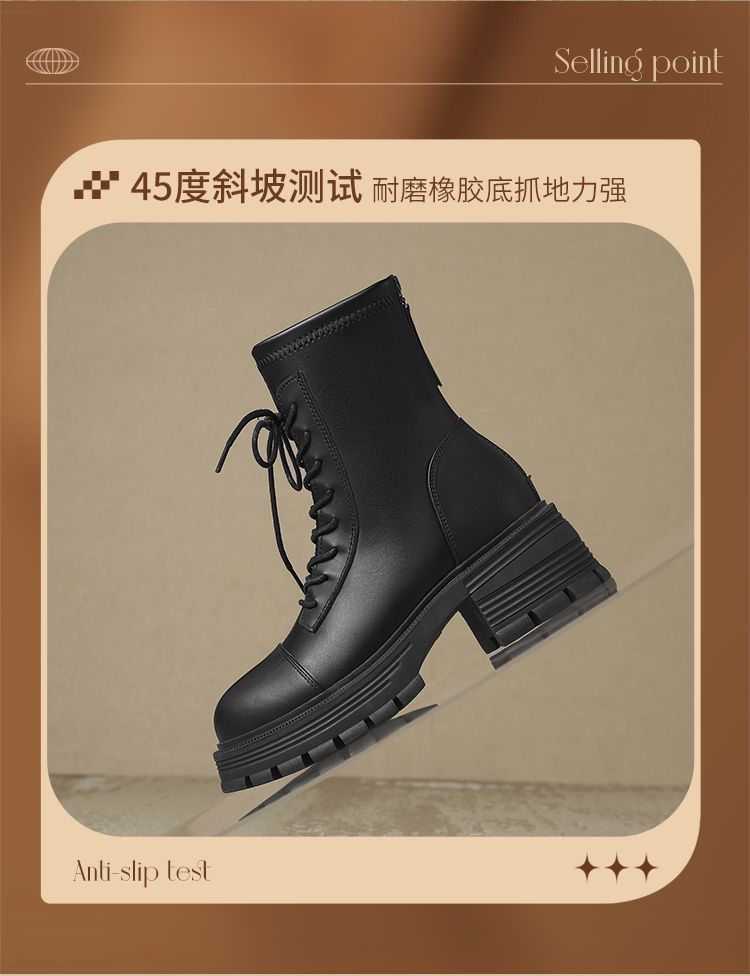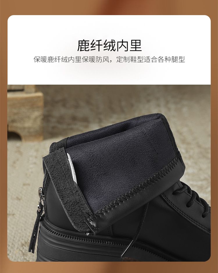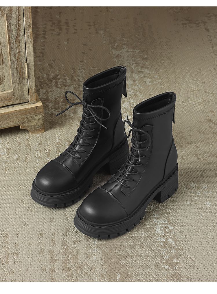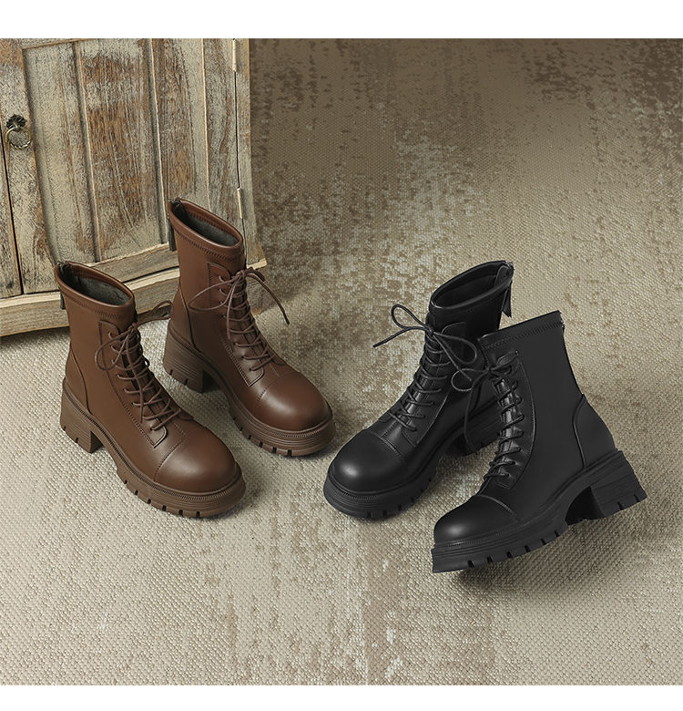 ZHR厚底马丁靴女2024秋冬新款ins系带短靴薄绒保暖女靴法式瘦瘦靴
