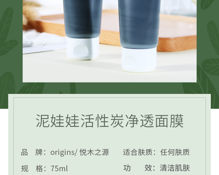 origins悦木之源 泥娃娃活性碳面膜 清洁毛孔控油去黑头75ML