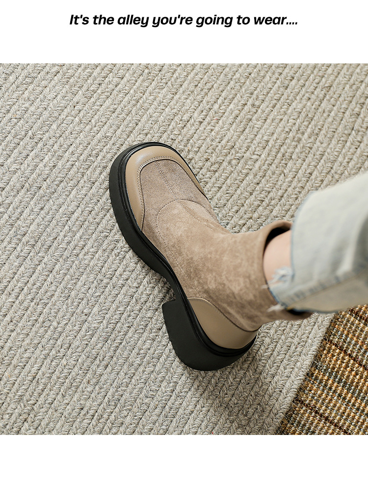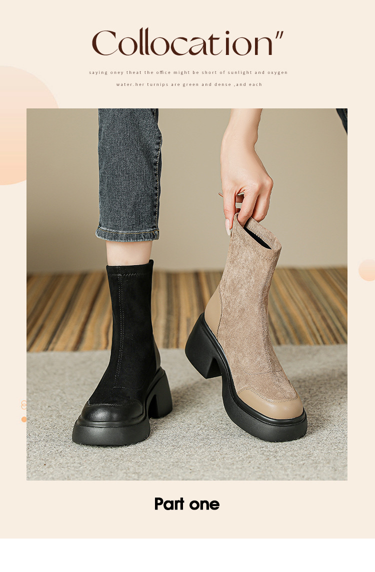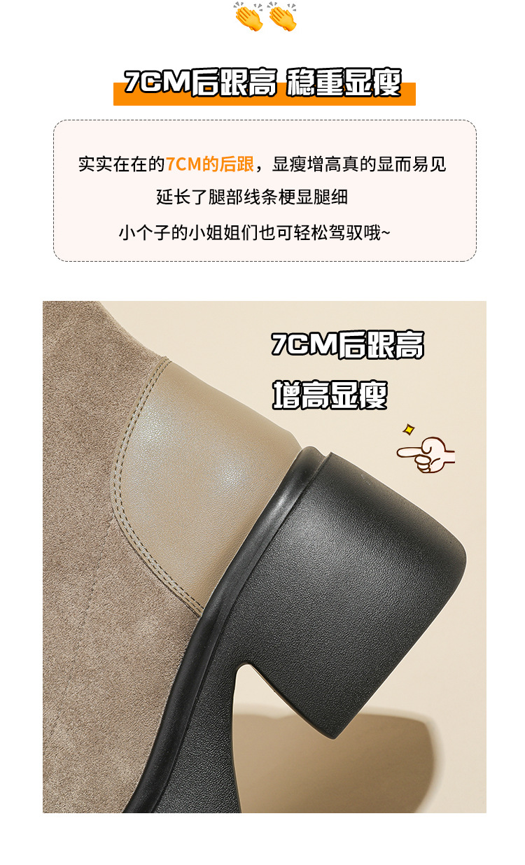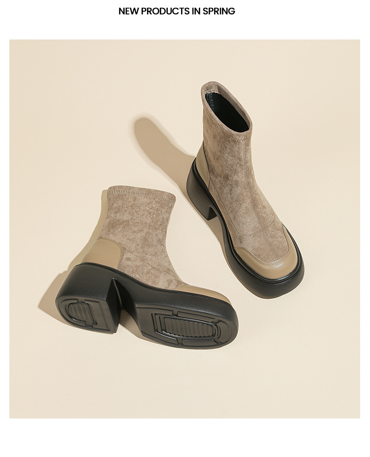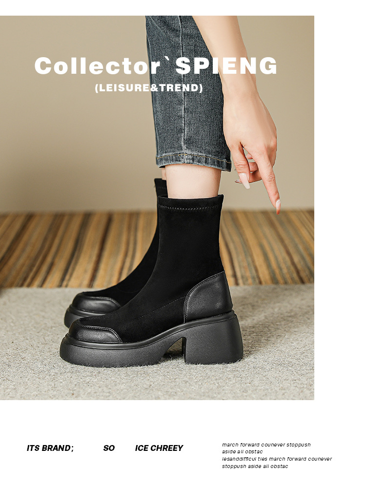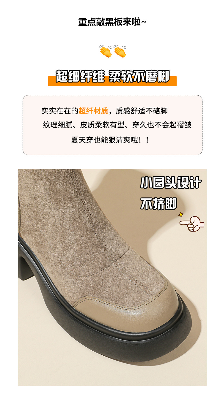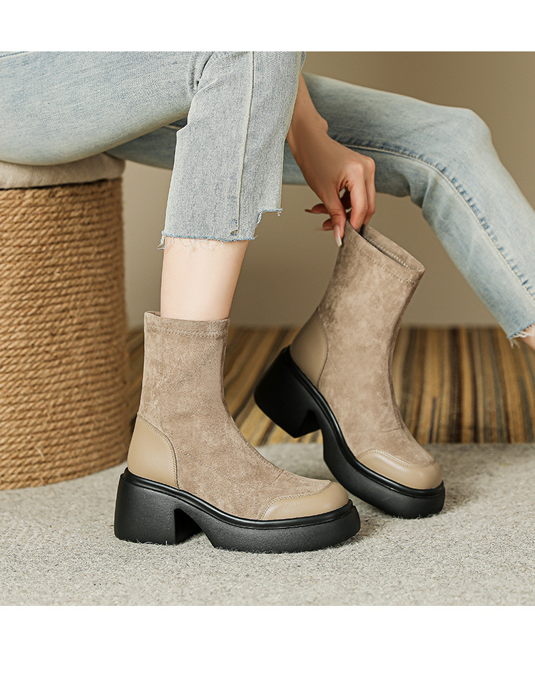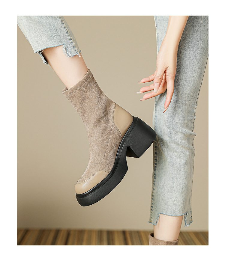 爆款现货绒面短靴女秋冬款7cm高跟厚底防水台短筒瘦瘦靴马丁靴女