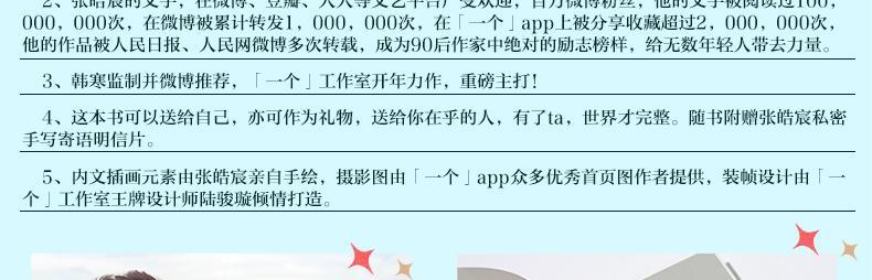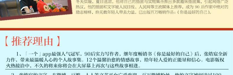 你感情可能正在感冒,你的生活可能一团糟,你的世界可能只差一个优选的人……可不去经历,如何成长?不去受伤,如何坚强?不去相信,如何相遇?12个温馨治愈的情感故事,给年轻人爱的正能量和信心,让你在面对爱时无惧,怀疑爱时坚定。这些故事也许你曾经经历、正在经历并且将会经历,张皓宸以生动的描写将故事中的人物带到你身边,你将与他们共同欢笑,共同哭泣。