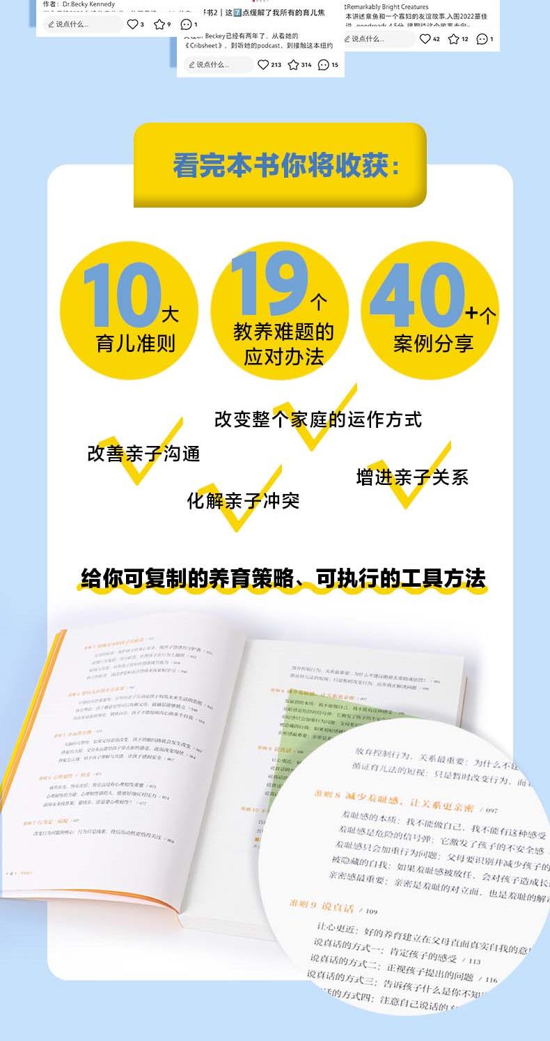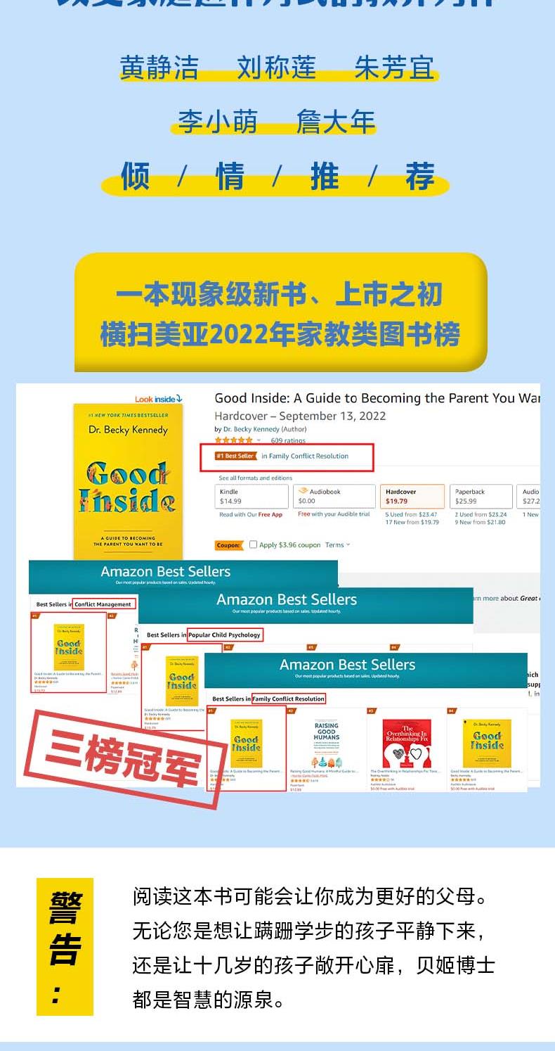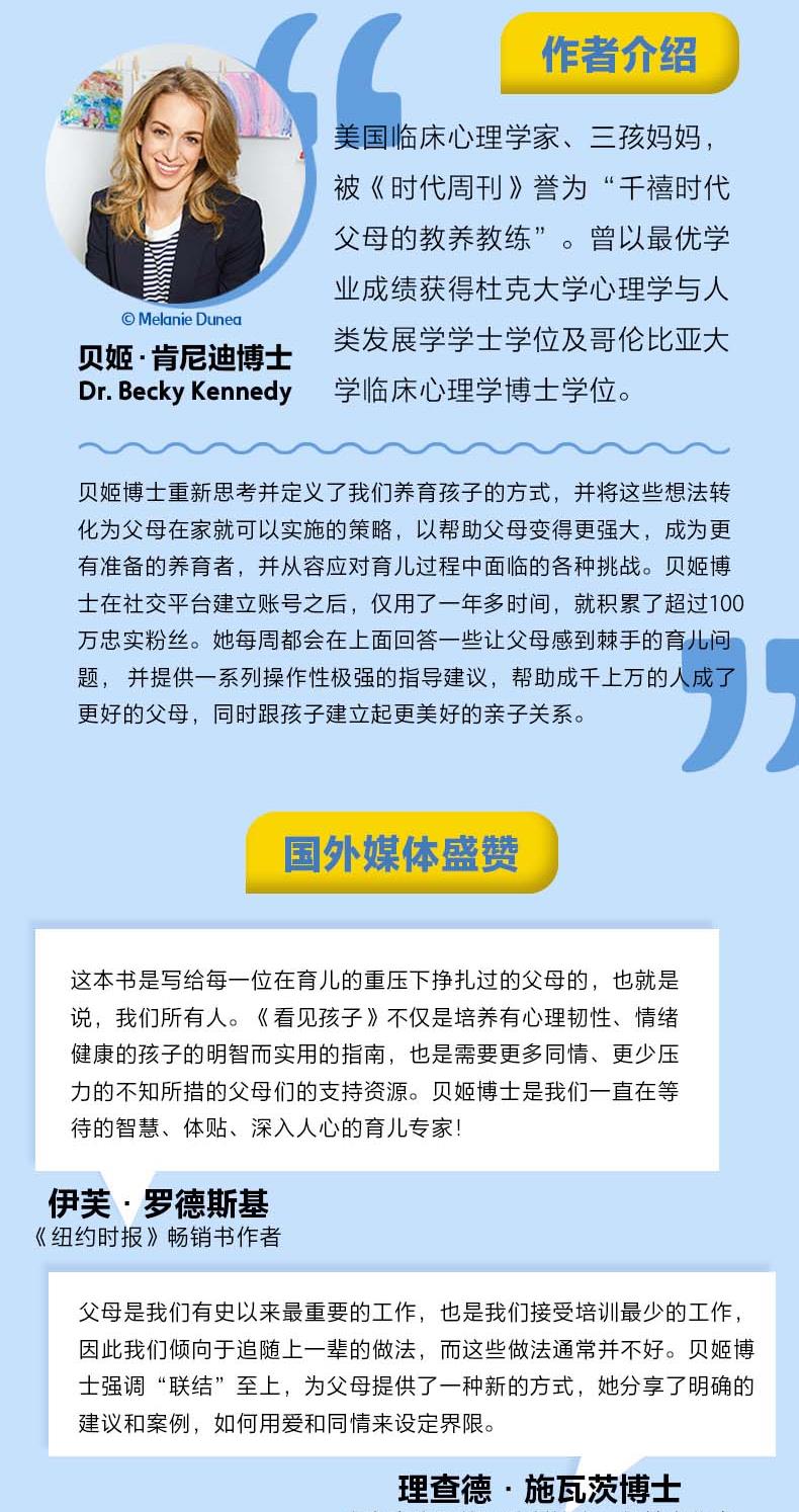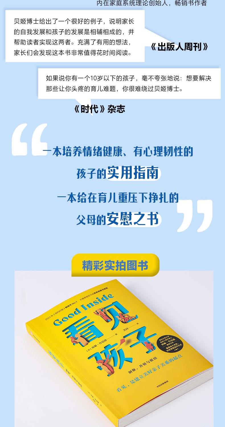 这是一本可以奠定美好亲子关系基础、改变家庭运作方式的全新教养力作。无论你是想让蹒跚学步的孩子平静下来,还是让十几岁的孩子敞开心扉,孩子各个年龄段让你头疼的养育问题书里都有答案。推荐给新手妈妈、二胎妈妈,还有每一位间歇性育儿崩溃的家长。又是被孩子搞砸的一天,如果你正在经受育儿焦虑,在育儿的重压下挣扎,如果你曾经无数次想要停止向孩子发火,重拾养育的信心,成为更有力量的父母,那么你都应该看看这本书。本书的核心理念是看见孩子的内在美好,看见我们自己的好,只要理解了孩子的内心需求,改善的就不仅仅是孩子的行为,还有整个家庭的运转和彼此的感情。书中不仅分享了贝姬博士的10个育儿准则,还通过40多个案例,教会家长应对一系列的教养难题,包括:孩子乱发脾气、二胎矛盾、撒谎、缺乏自信、畏难、害羞等等。