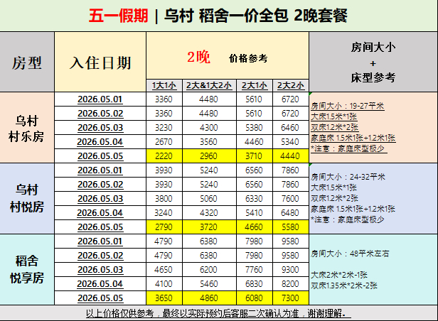 五一/端午 → 选【乌村/稻舍·一价全包】