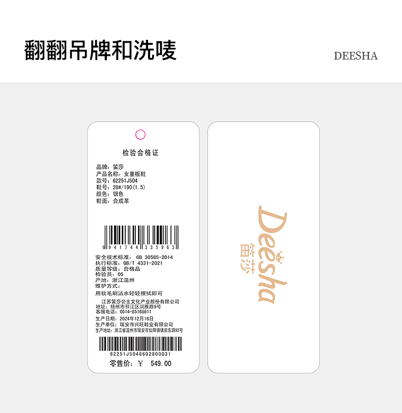 笛莎Deesha 女童童鞋2025春新款时尚洋气舒适低帮板鞋