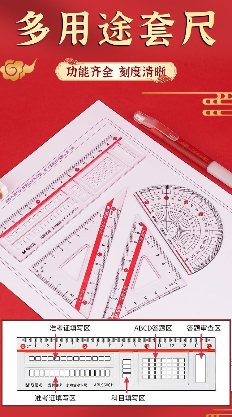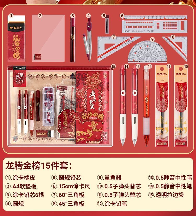 晨光考试套装龙腾金榜【15件套】中高考学生考试专用答题卡2b涂卡笔金榜题名【现货现发】