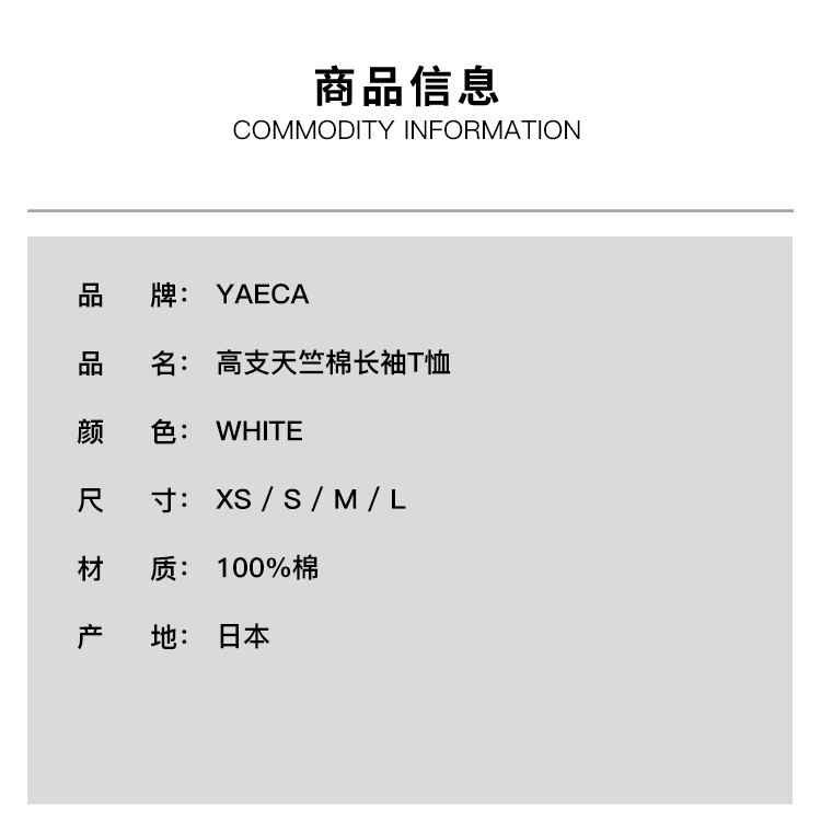 YAECA long sleave T-shirts unisex高支天竺棉男女中性款长袖T恤