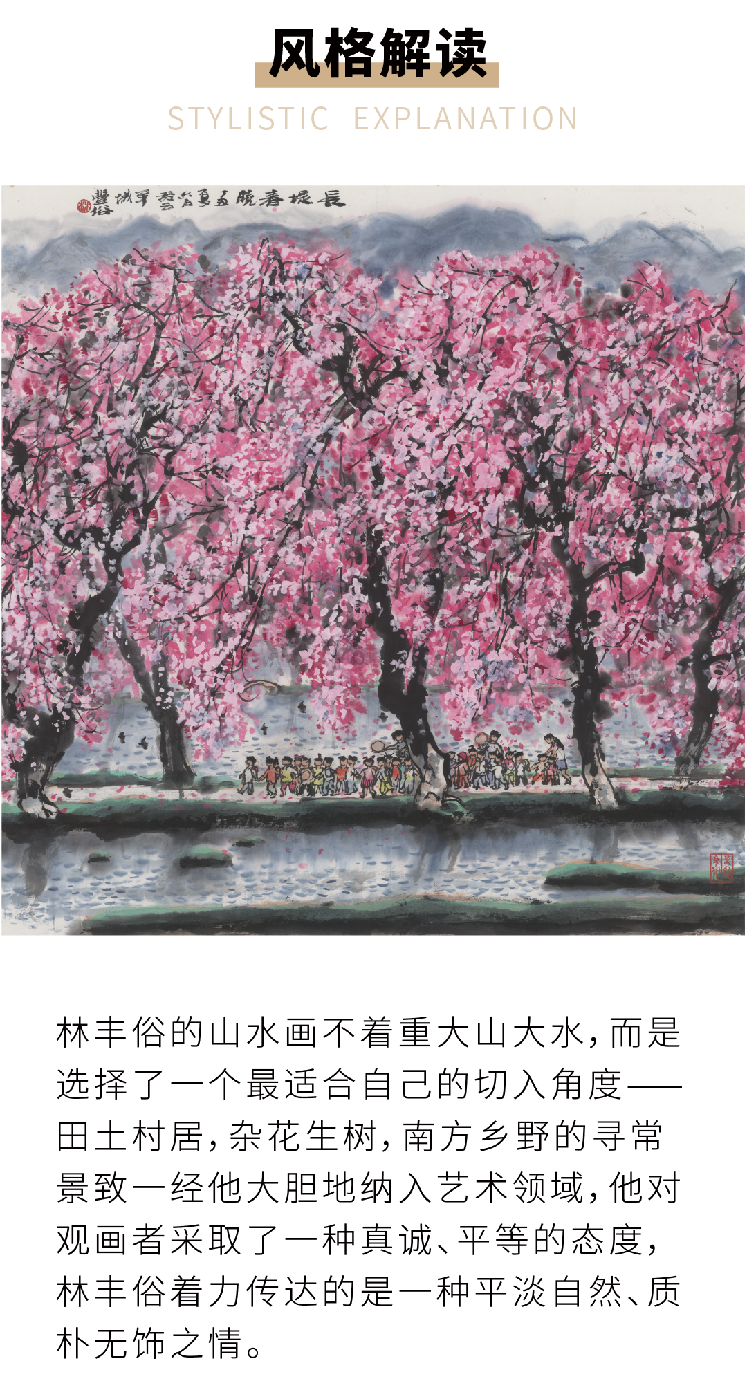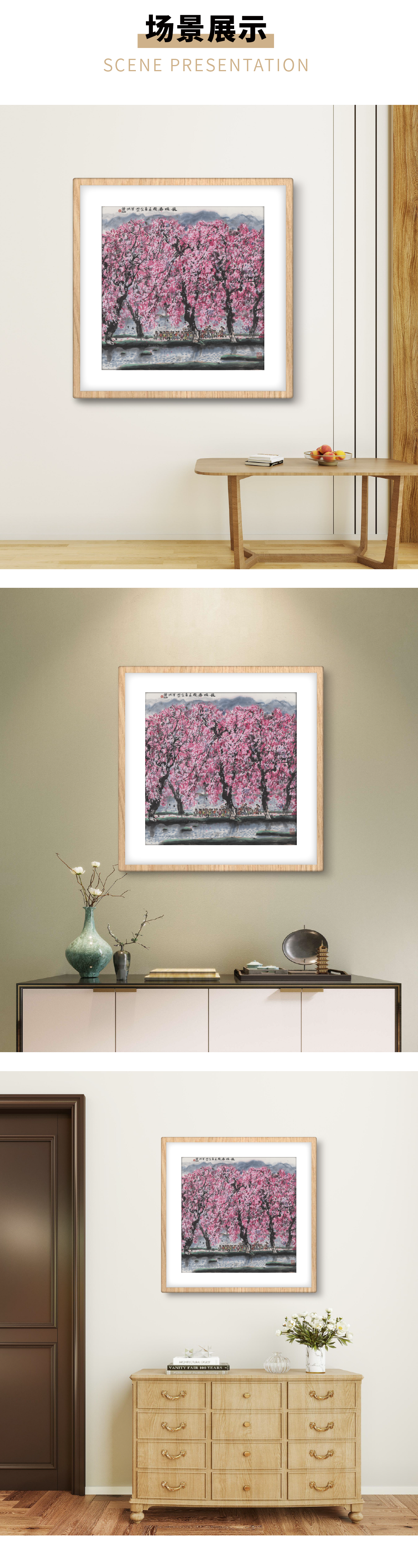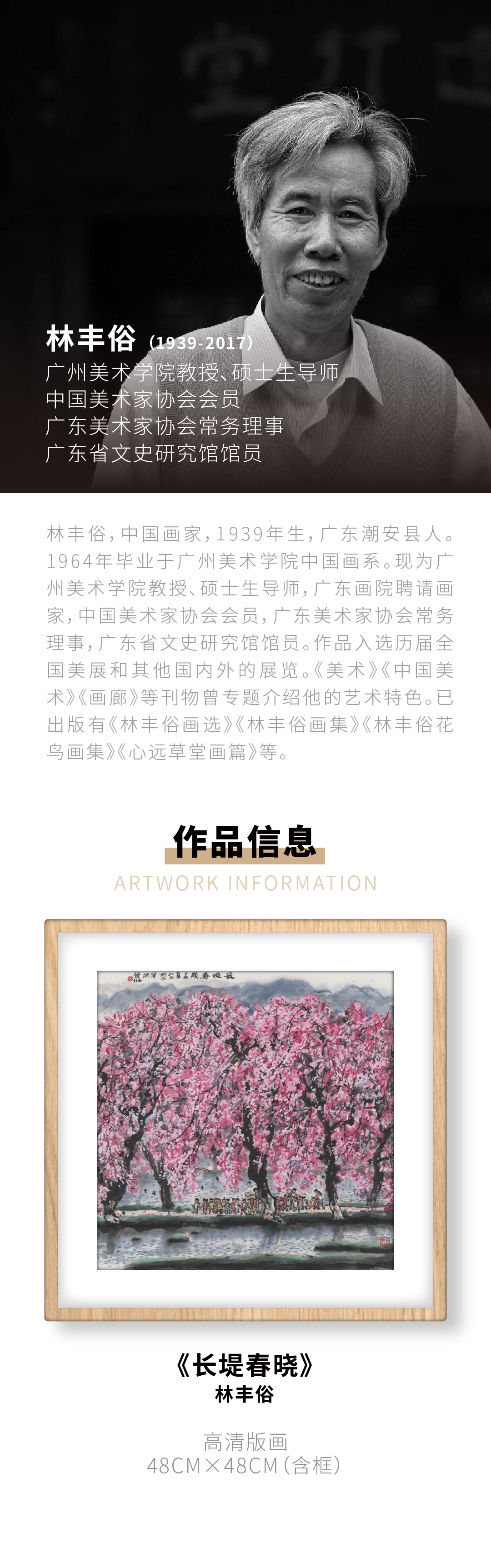 高清复制画 林丰俗《长堤春晓》48cm*48cm 含框 复制装饰画 新中式风格轻盈高清雅致好搭配茶室客厅书房办公室已装框
