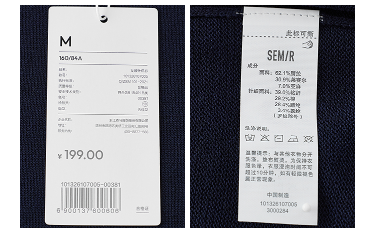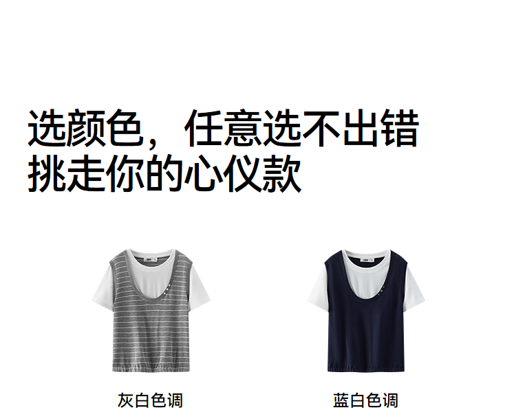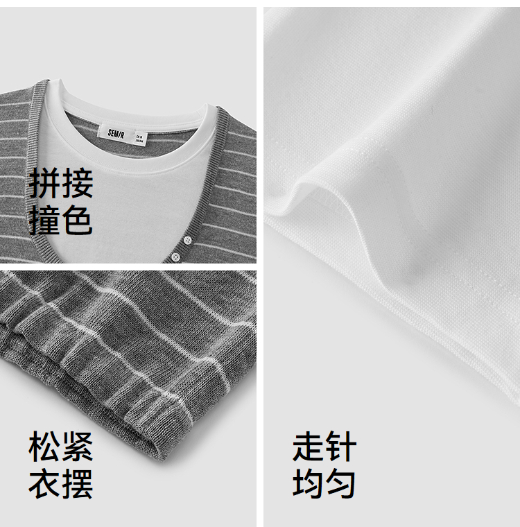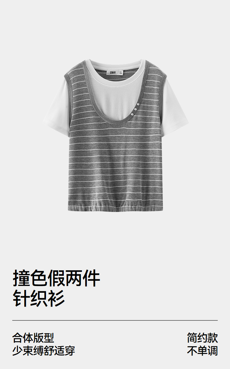 商场同款|森马针织衫女夏季假两件撞色2026新款简约小个子套头衫