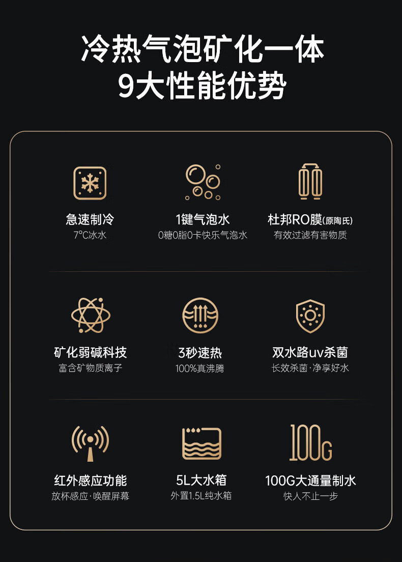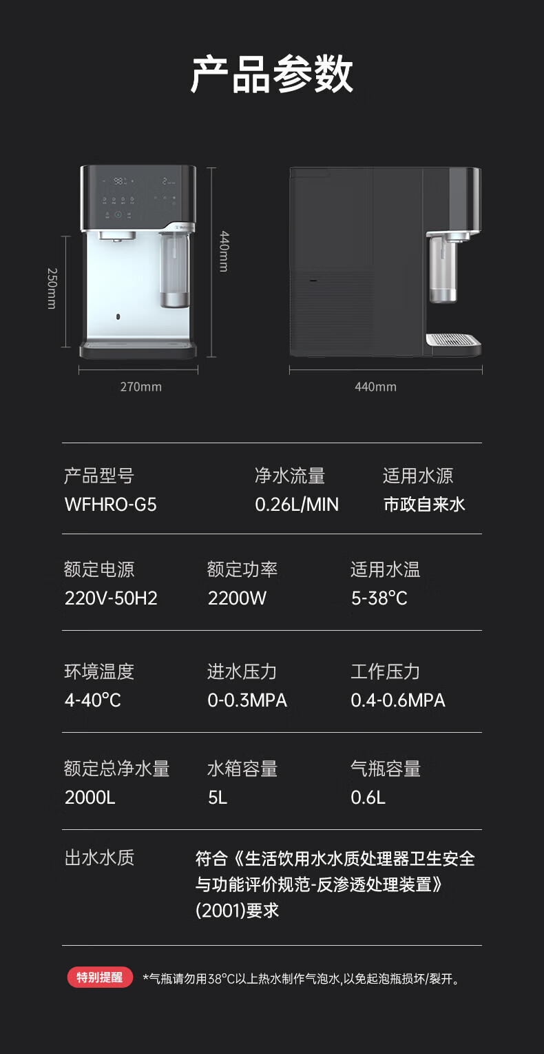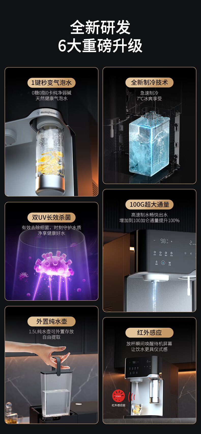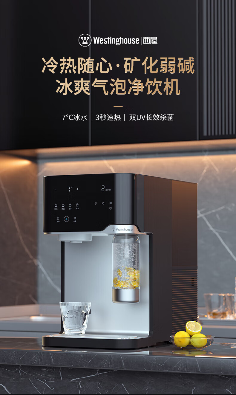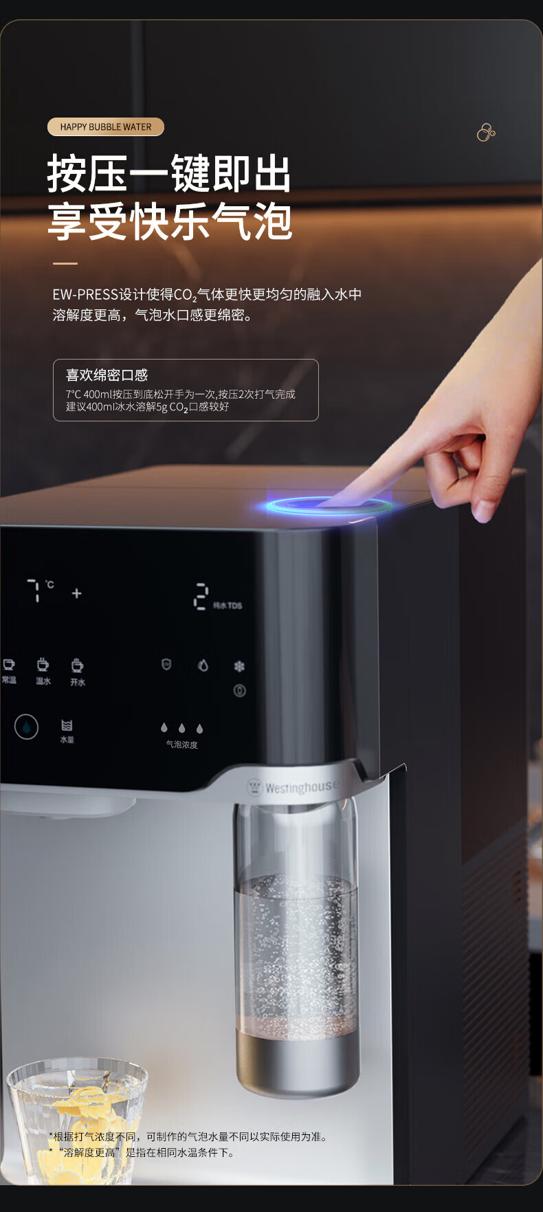 西屋(Westinghouse)气泡水台式净饮机RO反渗透净水器 冷热饮水机 直饮一体机 家用净饮机 即热式净饮一体机 WFHRO-G5