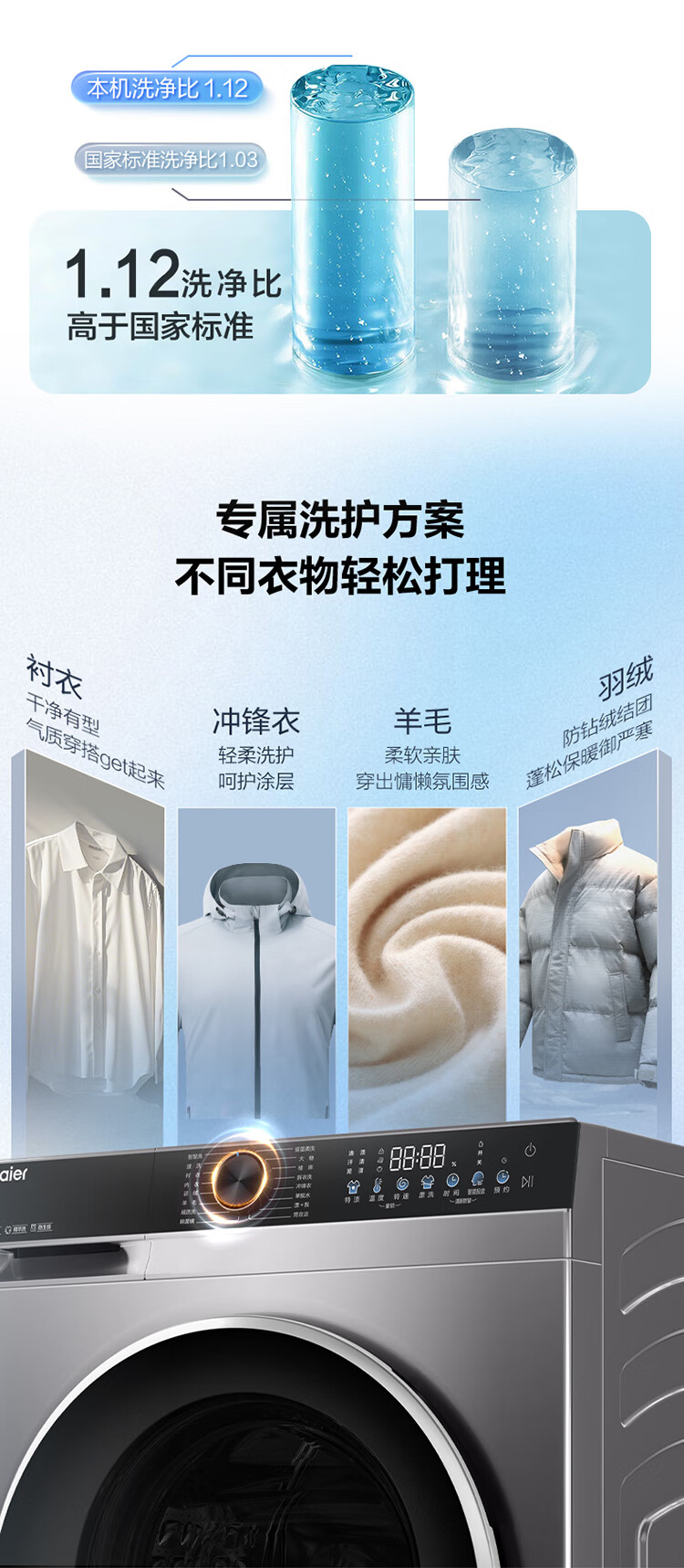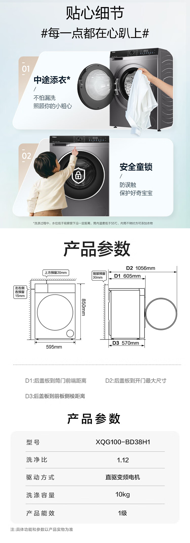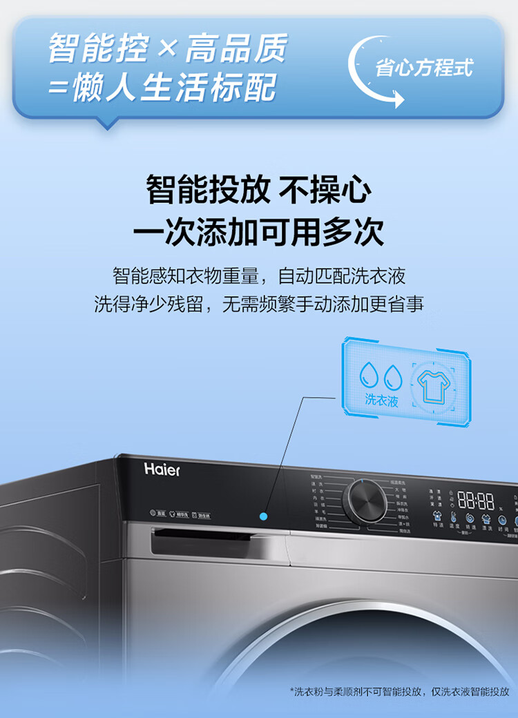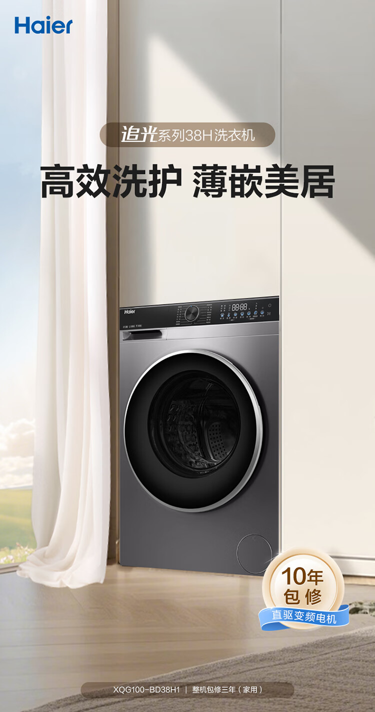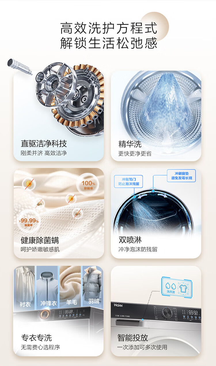 海尔(Haier)滚筒洗衣机全自动10公斤大容量直驱变频精华洗一级能效静音蓝盾除菌智能投放38H1 直驱变频+精华洗+智能投放+顽渍洗