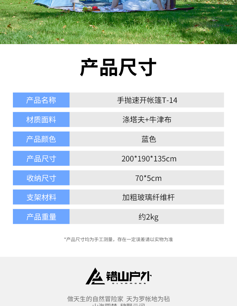 错山涂银手抛速开帐T-14帐篷【分仓直发,72小时内发货,周末及节假日不发货】