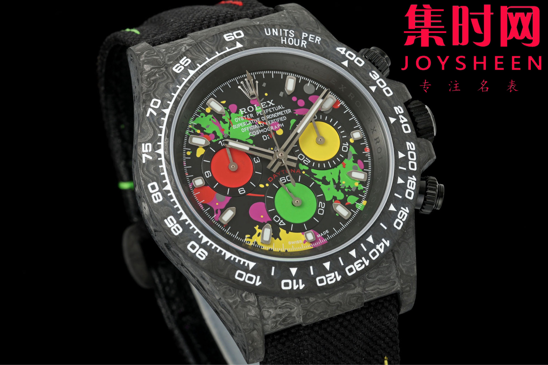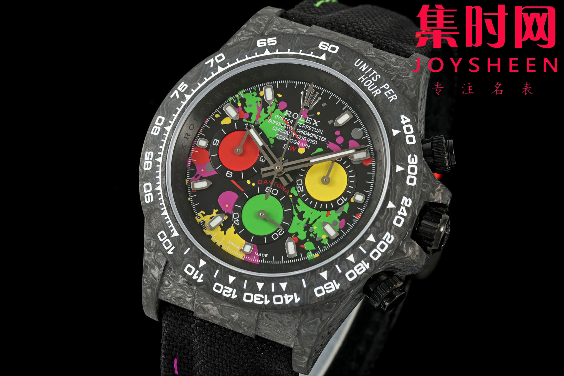 劳力士 DIW迪通拿碳纤维系列 改装迪通拿 新款颜色!重制版!丹东4801机 男士腕表 表径41mm 碳纤维外壳,超强高硬度,这一次升级不仅仅是成长,它是在进化,代表一个精致的视野,一个更大的时间艺术画布。