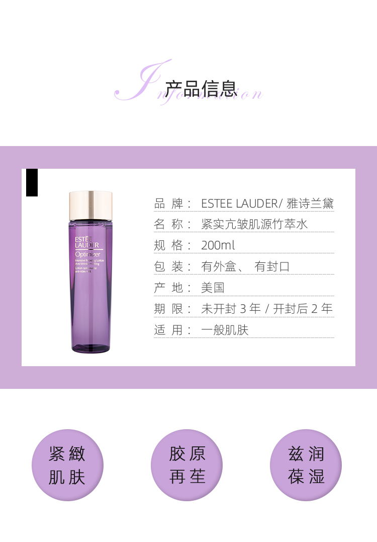 【中欧班列精选】BFT雅诗兰黛 肌源精粹水 紧致抗皱竹粹水 紫竹水 补水保湿【200ml】Y LPY
